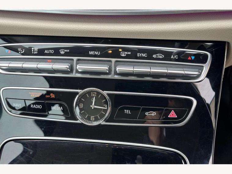 Active park assist with parktronic system, Analogue clock, Attention assist, Bluetooth interface for hands free telephone, Boot release from drivers seat, Brake wear warning light, DYNAMIC SELECT with a choice of driving modes (ECO, Comfort, Sport, Sport+ and Individual), Multi function trip computer, Park assist pilot with front and rear park assist, Service indicator (ASSYST), Speed sensitive power steering, Diesel particulate filter, DAB Digital radio, Media interface, USB/aux input socket, Adaptive brake lights, Aerial integrated in rear window, Body colour bumpers, Body colour door handles, Electrically adjustable and heated door mirrors, Heated windscreen wash system, LED Headlights, Polished aluminium upper window surround, Polished aluminium waistline, Radiator grille with integral star and 2 louvres in matt iridium silver with chrome trim, Rain sensor windscreen wipers, 3 spoke nappa leather steering wheel, Ambient lighting, Auto Mercedes-Benz child seat recognition sensor, Electric seat adjustment, Electric seat back adjustment, Front and rear door pockets, Front centre armrest with storage compartment, Front door sills with Mercedes Benz lettering, Heated front seats, Height/reach adjust steering wheel, Illuminated glovebox, Interior rear light/integral reading lights, Isofix rear child seat fastenings, Leather upholstery, Multi function steering wheel, Sports pedals with stainless steel surfaces and rubber studs, Storage compartment with 12V socket in centre console, Sunvisors with illuminated vanity mirrors, Interior lighting pack - E Class, Mirror pack - E Class, 3x3 point rear seatbelts, Active bonnet, Active brake assist, Childproof rear door locks, Driver and passenger side/thorax airbags, Driver/front passenger airbag, Drivers knee airbag, Electronic parking brake, Hill hold assist, Hill start assist, Pre-Safe anticipatory safety system, Seat occupancy sensor, Seatbelt warning, Tyre pressure monitoring system, Warning triangle and first aid kit, Window airbags, Alarm system/interior protection/immobiliser, Chrome surround electric key, Keyless Start, High gloss black centre console,