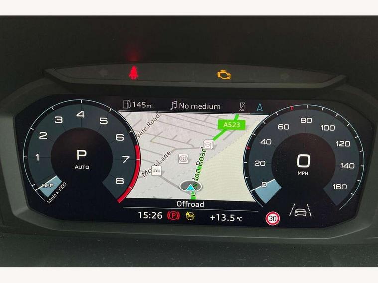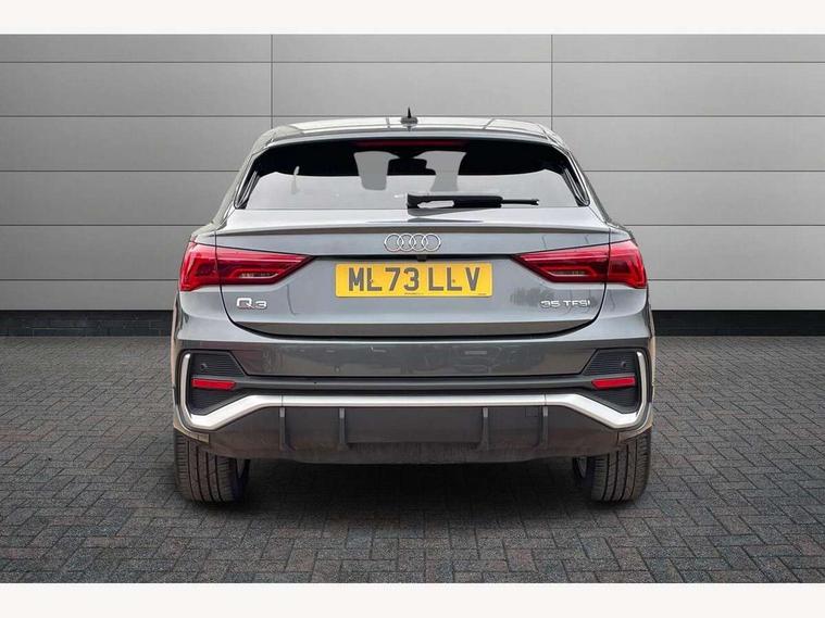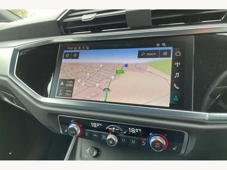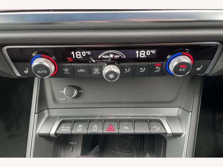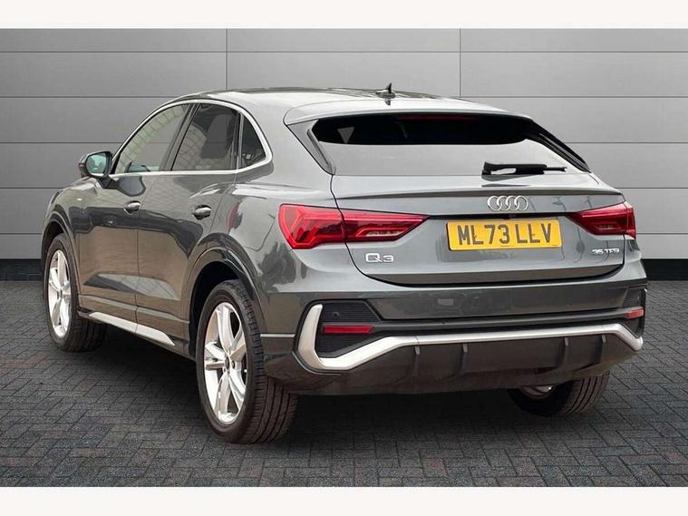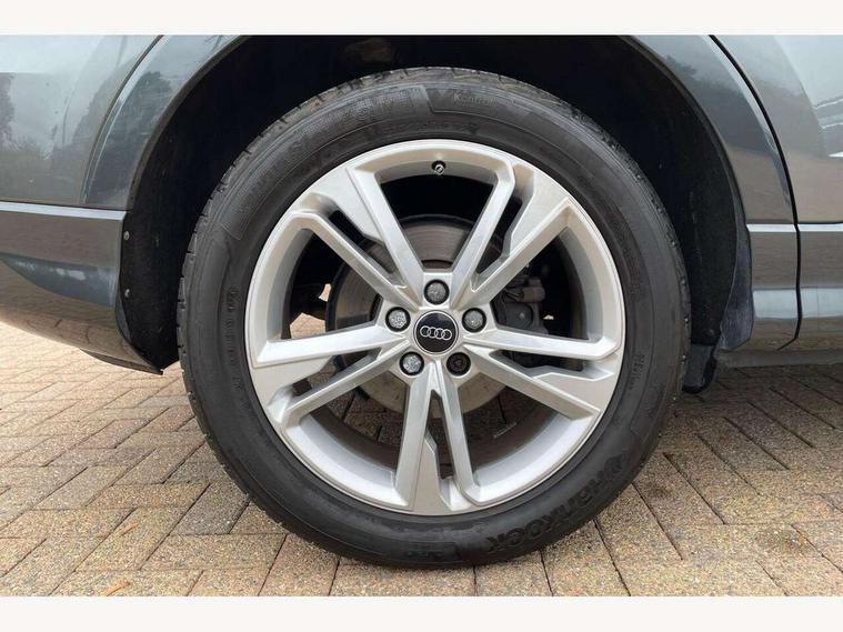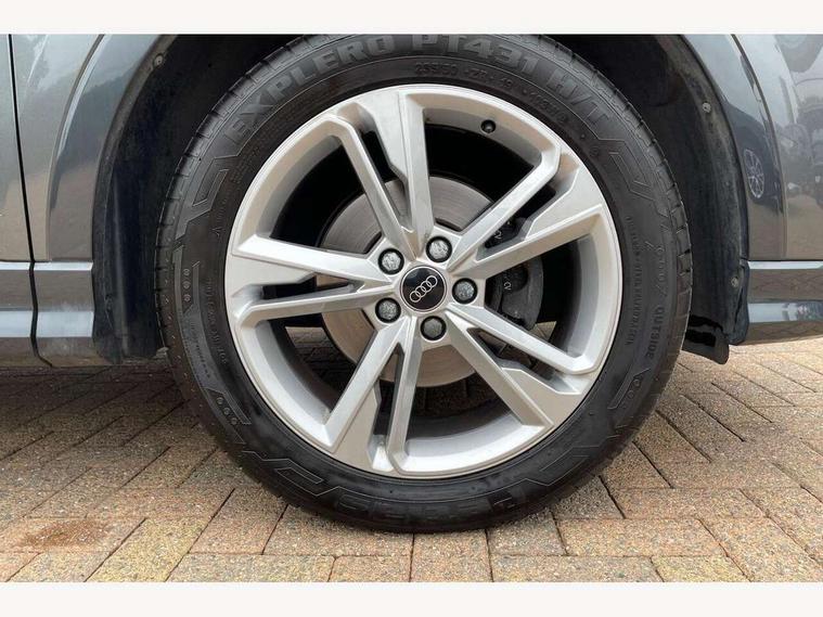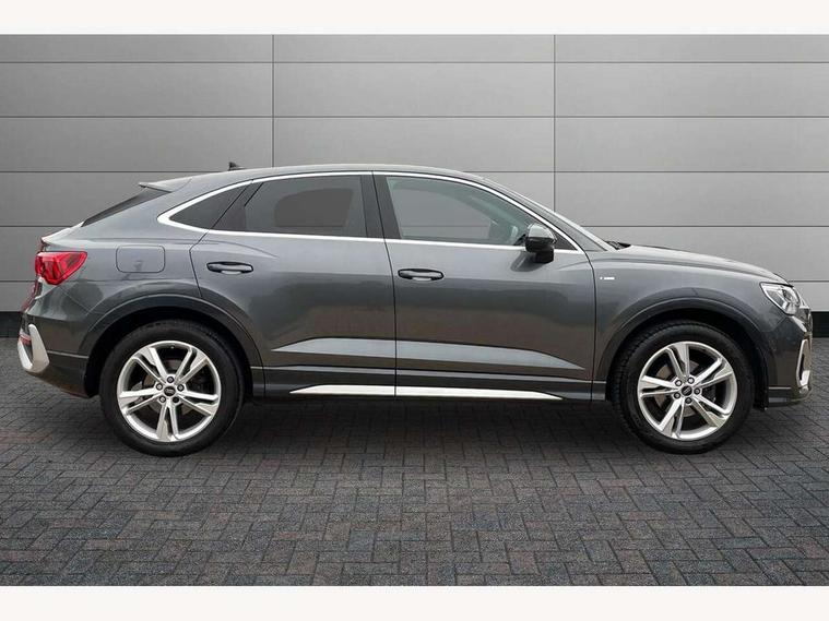 Audi drive select, Audi lane departure warning, Audi Virtual Cockpit - 10.25" display, Bluetooth interface, Camera based traffic sign recognition, Legal emergency call, MMI Navigation Plus with high resolution 10.1 inch touchscreen colour display, Power operated tailgate, Progressive steering, Service interval indicator, Smartphone interface includes wireless Apple carplay/Android Auto, Start stop system with recuperation, Voice control system with natural language interaction, Sports suspension, 2 USB-C ports with charge and data functions, 6 passive loudspeakers, DAB digital radio module, Acoustic windscreen, Aluminium window trim, Auto dimming frameless rear view mirror, Diffuser grille in grained matt black, Diffuser trim in selenite silver, Electrically folding, adjustable and heated door mirrors with integrated LED side indicators and kerb view function for passenger side, Front and rear electric windows, Front fog lights, Front side air inlets in selenite silver, Front underbody protection in manhattan grey paint finish, Grille surround in aluminium silver matt, High gloss black finish B and C pillars, LED Dynamic rear indicators, LED headlights with LED daytime running lights, LED rear lights, LED third brake light, Privacy glass dark tinted rear and rear-side windows (from B-pillar backwards), Radiator grille in anthracite black with inlay in matt aluminium silver, Rain and light sensors, Rear side wing doors, Rear underbody protection in matt black, Rear wiper, S line badges on front wings, S line front and rear bumpers and side skirts in contrasting Manhattan grey paint finish, Side skirt insert in matt Platinium grey, Variable front intermittent wipers, 12V socket in rear centre console, 3 seat bench in 2nd row, 3 spoke leather multifunction steering wheel features S badging and grips in perforated leather with contrast stitching, 40:20:40 folding with manual adjustment for 60:40 forwards/backwards position and backrest angle, Adjustable rear seat bench/backrest with centre armrest and cupholder, Black cloth headlining, Dual zone electronic climate control, Front and rear black floor mats with contrast stitching, Front and rear headrests, Front and rear roof module including reading lights, Front centre armrest, Glove compartment lighting, Height and reach adjustable steering wheel, Illuminated door sill trims with S logo, ISOFIX child seat mounting for front passenger with airbag deactivation and outer rear seat including top tether attachment point for outer rear seats, Luggage compartment light right in white, Luggage compartment sill protection in stainless steel, Manual front seats with height adjustment, Perforated leather gearknob, Single front passenger seat, Stainless steel pedals, Ambient lighting pack - Q3, Non smoking pack - Q3, 3x3 point rear seatbelts, 6 airbags - Driver, front passenger, curtain and side windows, Audi pre-sense front with pedestrain and cyclist recognition, Electrically operated child locks on rear doors, Electromechanical parking brake, Electronic stabilisation control including ABS, ASR and EDL, Front seatbelt reminder, Hill descent control, Hill hold assist, Pre sense basic, Seatbelt monitoring, Tyre pressure warning, Warning triangle and first aid kit, Anti theft alarm, Anti theft wheel bolts, Immobiliser, Remote central locking, Aluminium look interior elements, Black dashboard, Dark matt brushed aluminium inlay, Detail dashboard around MMI touch colour display in glass look, black with surround in aluminium look, Leatherette door armrest,