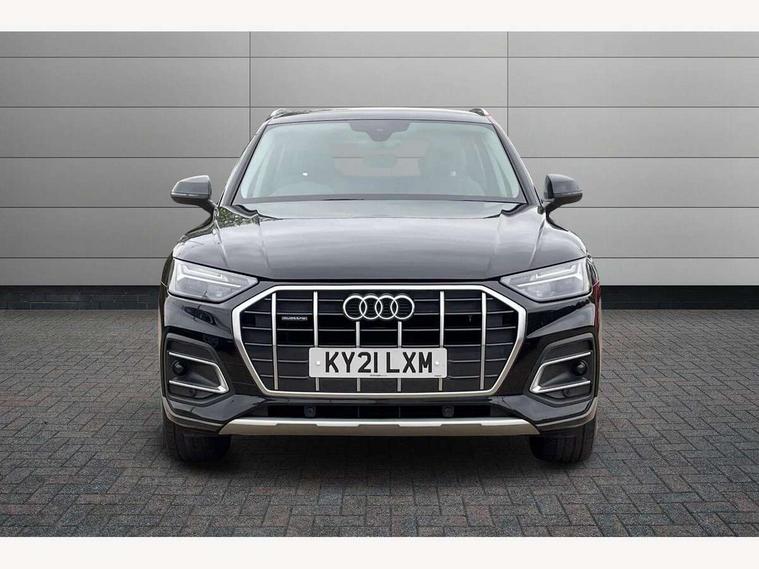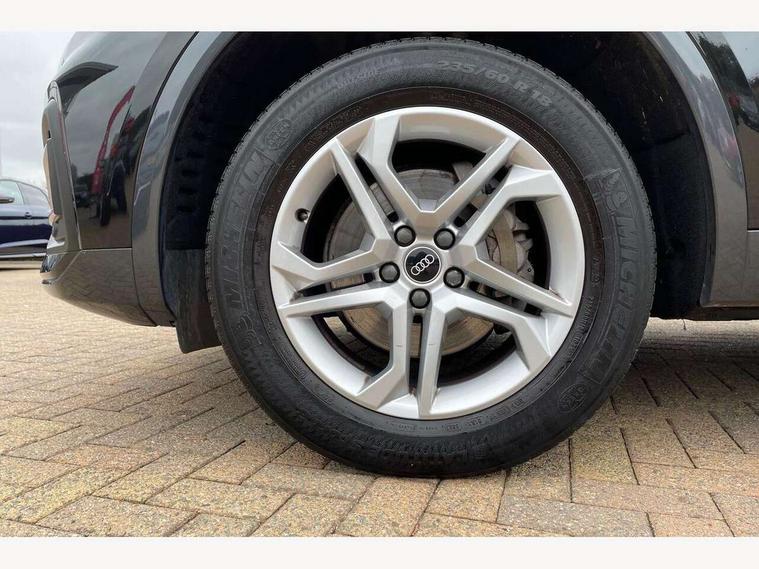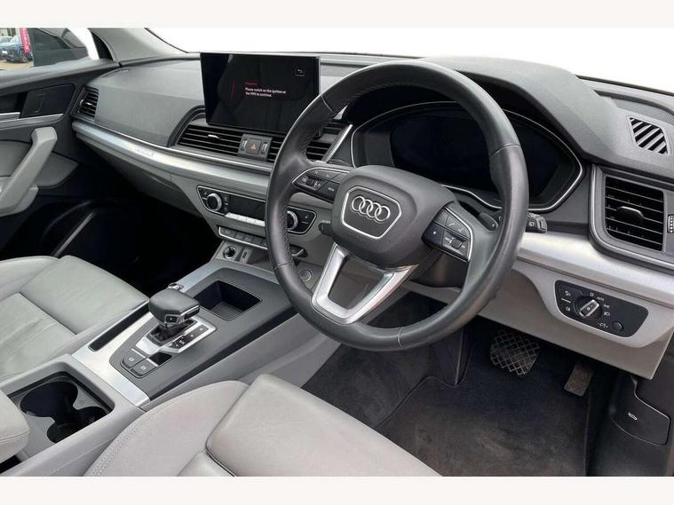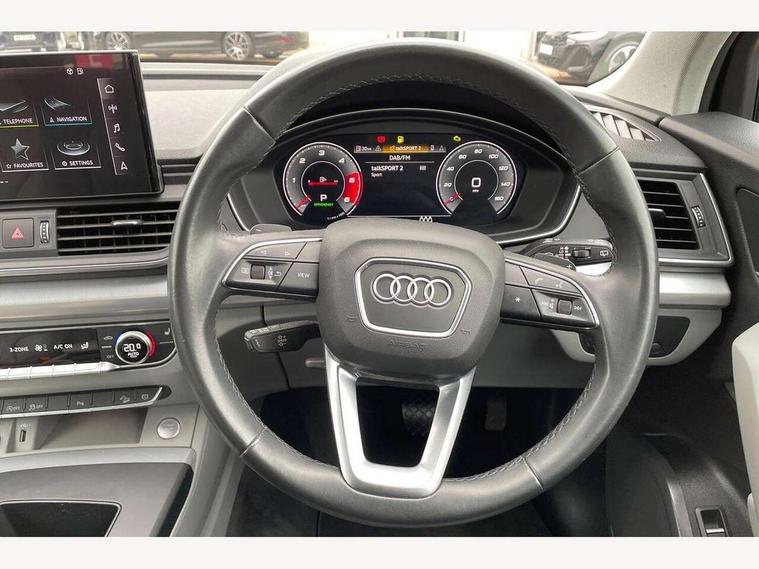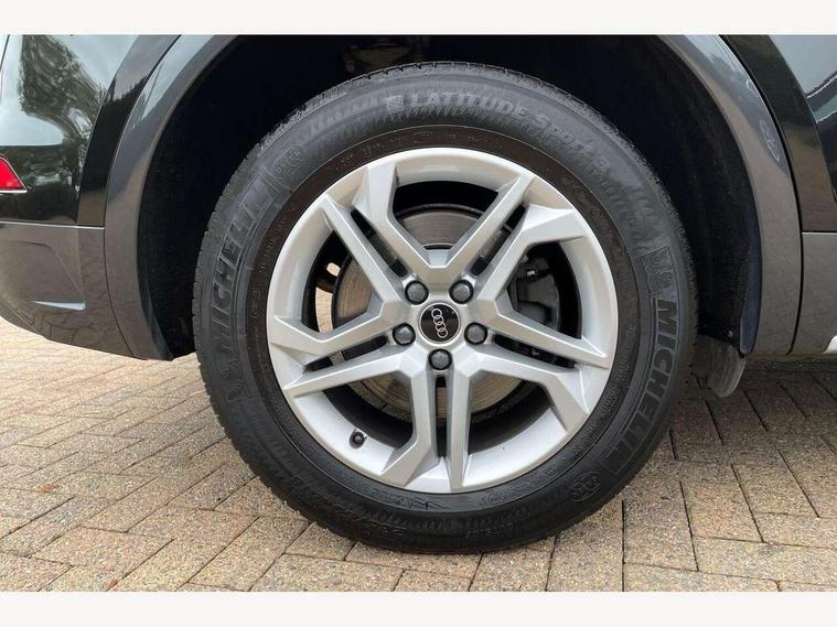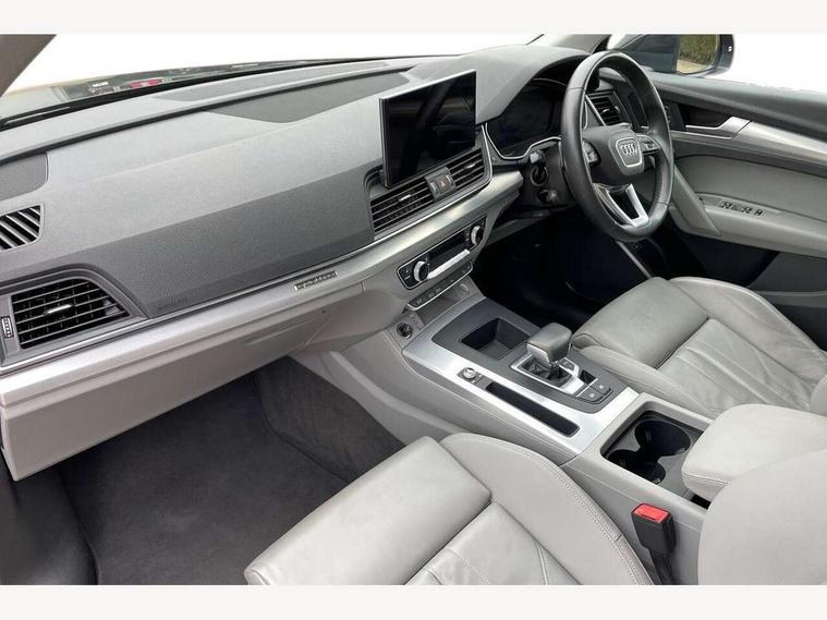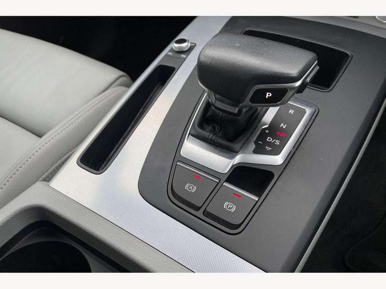 Acoustic front and rear parking sensor, Amazon alexa Integration, Audi connect safety and service (e-call), Audi drive select, Audi virtual cockpit plus with 12.3" screen and three different layout designs, Audi wireless smartphone interface, Automatic start-stop system with coasting functionality and efficiency programme, Cruise control + speed limiter, Electro - mechanical power assisted steering, MMI navigation plus with 10.1" touch screen, Mobile telephone preparation - bluetooth interface, Power tailgate, Reversing camera, Service interval indicator, Voice control system with Audi hotword activation "Hey Audi", Diesel particulate filter, Dynamic suspension, Quattro on demand, 2 USB charging ports, DAB Digital radio, Acoustic windscreen, Air inlets in matt titanium black with blades in matt aluminium silver, Aluminium roof rails, Auto dimming rear view mirror, Automatic headlight adjustment, Automatic headlights and windscreen wipers, Body colour bumpers, Body colour door mirrors, Chrome plated exhaust trims, Door sills in Selenite silver, Electric adjustable/heated/folding door mirrors, Front and rear electric windows, LED headlights and LED tail lights, Lower bumpers painted in contrast Manhattan grey, Matt selenite silver underbody protection, Matt twilight grey radiator grille with chrome vertical struts, Rear chrome trim strip below lights, Rear diffuser strip in selenite silver, Rear spoiler, Rear wiper, Roof bars, 3 rear headrests, 3 spoke multifunction leather steering wheel with shift paddles, 40:20:40 split folding rear seat with rear centre armrest, Deluxe 3 zone electronic climate control, Door sills trims with aluminium inlays, Front centre armrest, Front/rear floor mats, Heated front seats, Height adjustable front head restraints, Height/reach adjustable steering column, ISOFIX child seat mounting and top tether, Manual seat adjustment with 4-way electric lumbar support, Removable luggage compartment floor, Silver cloth headlining, Sunvisors with vanity mirrors, Tool kit, Trunk roller cover, Twin leather upholstery + front sports seats, High gloss pack - Q5, LED interior light pack - Q5, 3 point seatbelts on all seats, 6 airbags - Driver, front passenger, curtain and side airbags, Electrically operated child locks on rear doors, Electromechanical parking brake, Electronic stabilisation control including ABS, ASR and EDL, Front passenger airbag deactivation, Hill descent control, Hill hold assist, Multi collision brake assist, Pop-up bonnet for pedestrian protection, Pre sense city, Seat belt force limiter, Seatbelt monitoring, Tyre pressure warning, Warning triangle and first aid kit, Anti theft alarm, Anti-theft wheel bolts, Keyless Go access/ignition system, Aluminium rhombus inlay,