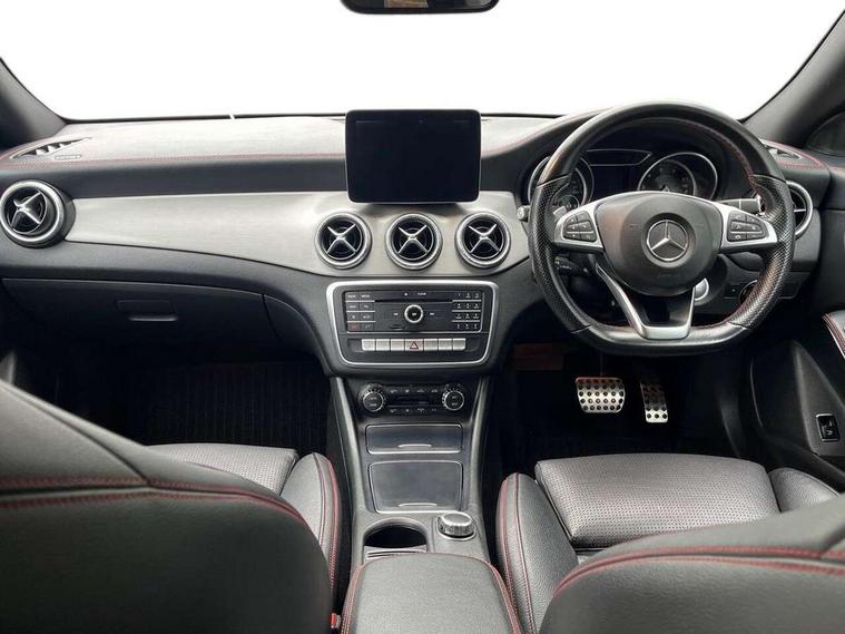 Active park assist with parktronic system, Attention assist, Bluetooth system, Collision prevention assist plus, Direct steering, DYNAMIC SELECT with a choice of driving modes (ECO, Comfort, Sport, Sport+ and Individual), Low fluid warning light, Outside temperature gauge, Service indicator (ASSYST), Smartphone integration with Apple CarPlay and Android auto, Trip computer, Lowered comfort suspension, Media interface, Mercedes Audio 20 radio/single CD, USB connection, Adaptive brake lights, AMG body styling, Automatic headlights, Automatic rain sensing wipers, Black high gloss beltline, Body colour bumpers, Body colour door handles, Body colour side skirt, Diamond grille with pins in chrome and single louvre in high-gloss black with chrome inserts, Dual stainless steel exhaust tailpipes, Electric adjustable heated door mirrors, Front and rear electric windows, Heated rear window with timer, High gloss black door mirror housing, LED headlights with LED daytime running lights, LED tail lights, Privacy glass, 1/3 to 2/3 split folding rear seats, 3 spoke flat bottomed leather steering wheel, Auto Mercedes-Benz child seat recognition sensor, Black roof lining, Door sill illumination, Dual zone climate control, Front centre armrest with storage box, Front footwell lights, Front head restraints, Front sports seats, Gearshift paddles, Height/reach adjustable steering column, Illuminated glovebox, Illuminated storage compartment, Isofix rear child seat fastenings, Load securing rings in luggage compartment, Multifunction steering wheel, Reading lights, Rear footwell lights, Rear head restraints, Sports pedals with rubber studs, Sunvisors with illuminated vanity mirrors, Twin console mounted cup holders, 3x3 point rear seatbelts, ABS with Brake Assist, Adaptive brake system, Black brake calipers, Child proof door locks, Crash responsive emergency lighting, Drivers knee airbag, Dual stage driver/passenger airbags, Electronic parking brake, ESP with ASR, Front and rear seatbelt reminder, Front passenger airbag deactivation, Front side airbags, Hill start assist, Tyre pressure monitoring system, Warning triangle and first aid kit, Window airbags, Anti theft alarm system, Immobiliser, Remote central locking, Chrome air vent surrounds, Tirefit,