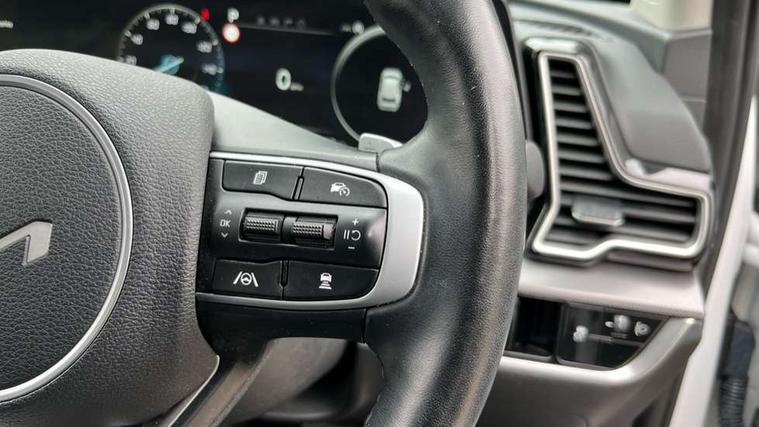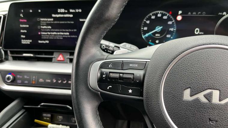 12.3" Display with navigation, 12.3" supervision colour cluster display, Apple car play/Android Auto with voice control, Drive mode selector, E-call, Forward collision avoidance assist (FCA) - city/pedestrian/cyclist/junction covering, Front and rear parking sensors, Highway Driving Assist (HDA), Intelligent speed limit assist, Kia Connect (UVO), Lane Following Assist (LFA), Lane keep assist, Low washer fluid warning, Rear view monitor, Reversing camera system integrated into centre fascia screen, Smart cruise control with stop and go functionality, Speed sensitive power steering, Trip computer, Windscreen washer level indicator, Intelligent Stop and Go, 6 speaker audio system, Bluetooth audio streaming, DAB Radio with MP3, Rear USB port, Steering wheel mounted audio controls, USB C type charging ports on centre console, USB C type charging ports on side of front seats, USB port for connection of a media device, All round electric windows with drivers and front passenger auto up/down function, Automatic headlight control system, Automatic window defogger, Backlite glass heated with timer, Black bumpers, Black side sill and wheel arch body mouldings, Body colour door mirrors, Body colour exterior door handles, Electrically adjustable/heated/folding door mirrors with LED indicators, High beam assist, Interior electrochromic mirror, LED daytime running lights, LED front fog lamps, LED headlamps (low and high beam - MFR type), LED High mounted stop light, Rain sensing wipers with aero blades, Rear fog lamp, Rear privacy glass, Rear side wing doors, Rear skid plate - silver, Rear spoiler, Rear wiper, Satin finished beltline, Silver coloured inserts to bumpers, Silver radiator upper garnish and door garnish, Silver roof rack, Tinted rear glass, Trailer stability assist, 12V power socket in front centre fascia and luggage compartment, 2nd row personal lamps, 3 seat bench in 2nd row, 3 x passenger assist grips, 40/20/40 split folding rear seat, All-round height adjustable headrests, Centre console storage box, Cloth/faux leather upholstery, Cupholders in rear armrest, Door courtesy lamps, Drink holder at centre armrest, Driver and front passenger side sunvisors with illuminated vanity mirrors, Drivers seat power lumbar support, Dual zone climate control, Electric height adjustable front seats, Front and rear door storage, Front seat and rear pockets, Front/rear centre armrests, Gear shift indicator, Glovebox illumination, Heated front and outer rear seats, Heated steering wheel, Interior door lock/unlock function, ISOFIX Child seat top tethers and anchor fixings outer rear seats, Leather steering wheel, Luggage area light, Luggage area load cover, Luggage net with hooks, Metal paint interior door handles, Overhead console lamp, Paddle shift controls, Rear cabin light, Rear coat hooks, Single front passenger seat, Tilt/telescopic adjustable steering wheel, Ventilation ducts to rear compartment, Active front headrests, All round 3-point seatbelts, Anti-lock braking system (ABS), Dual front side airbags, Dual horn, Electronic parking brake, Electronic stability control with downhill brake control, Front passenger airbag cut-off switch, Front seatbelt pretensioners + load limiters, Height adjustable front seatbelts, Hill start assist control (HAC), Impact sensing auto door unlocking, Multi collision brake assist, Rear door child safety locks, Rear seat alert system, Traction control, Twin curtain airbags, Twin front airbags, Tyre pressure monitoring system, Advanced anti-theft system including immobiliser and alarm, Door deadlocks, Engine Start/Stop Button with Smart Entry System, Locking wheel nuts, Speed sensitive auto door locking, Visible vehicle identification number, Aluminium pattern finish centre fascia and door garnish, 18" Alloy wheels, Tyre mobility kit,