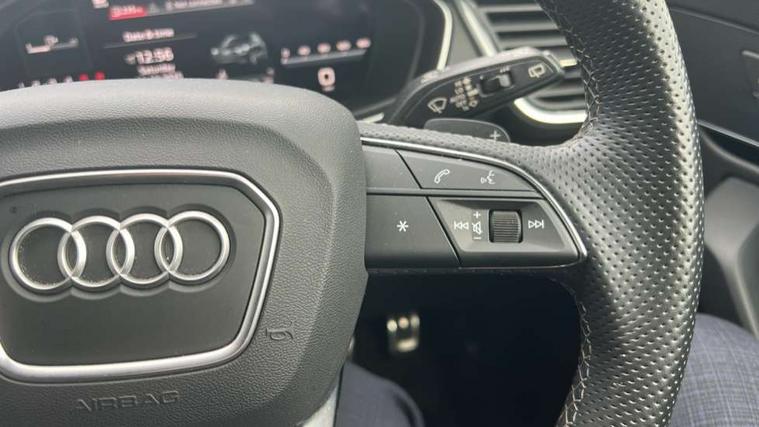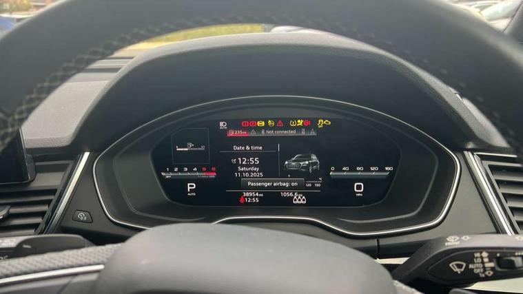 Audi connect safety and service (e-call), Audi connect with Amazon Alexa Integration, Audi drive select, Audi virtual cockpit plus with 12.3" screen and three different layout designs, Audi wireless smartphone interface, Automatic start-stop system with coasting functionality and efficiency programme, Bluetooth interface, Electro - mechanical power assisted steering, MMI navigation plus with 10.1" touch screen, Power tailgate, Reversing camera, Service interval indicator, Voice control system with Audi hotword activation "Hey Audi", Diesel particulate filter, Quattro on demand, S line sports suspension, 2 x USB charging port with aux input socket, DAB Digital radio, Acoustic windscreen, Audi beam with Audi rings logo, Audi matrix LED headlights with dynamic front and rear indicators, Audi rings at front and rear in black, Audi rings decal on rear doors, Auto dimming door mirrors, Auto dimming rear view mirror, Automatic headlights and windscreen wipers, Black door mirrors, Black roof rails, Body colour underbody protection, Chrome plated exhaust trims, Daytime running lights, Door sills in Selenite silver, Electric adjustable/heated/folding door mirrors, Front air inlet surrounds in aluminium, Front and rear electric windows, Headlight washers, High gloss black B pillar trims and triangular rear door trim, High level LED brake light, Rear chrome trim strip below lights, Rear privacy glass and rear side windows, Rear side wing doors, Rear spoiler, Rear wiper, Roof bars, Without model and engine badging at rear, 3 rear headrests, 4 way electric lumbar support for driver and front passenger, 40:20:40 split folding 3 rear bench seat in 2nd row with rear centre armrest, Black cloth headlining, Comfort front centre armrest, Contrast stitching on seats, steering wheel and gear lever gaiter, Deluxe 3 zone electronic climate control, Electrically adjustable front seats, Fine Nappa leather upholstery with diamond pattern contrast stitching + front sport seats with S embossed logo, Front head restraints, Front/rear floor mats, Gear lever in black leather, Heated front seats, Height/reach adjustable steering column, Illuminated door sill trims with S logo, ISOFIX child seat mounting and top tether, Rear seat bench plus, Removable luggage compartment floor, Single front passenger seat, Stainless steel pedals, Sunvisors with vanity mirrors, Trunk roller cover, Artificial leather pack - Q5, Black styling package - Q5 Edition 1, Extended LED Interior multi coloured Lighting Pack - Q5, 3 point seatbelts on all seats, 6 airbags - Driver, front passenger, curtain and side airbags, Electrically operated child locks on rear doors, Electromechanical parking brake, Electronic stabilisation control including ABS, ASR and EDL, Front and rear brake calipers painted in red, Front passenger airbag deactivation, Hill descent control, Hill hold assist, Multi collision brake assist, Pop-up bonnet for pedestrian protection, Pre sense city, Seat belt force limiter, Seatbelt monitoring, Tyre pressure warning, Warning triangle and first aid kit, Anti theft alarm, Anti-theft wheel bolts, Keyless Go access/ignition system, Remote central locking, Piano black finish inlay,