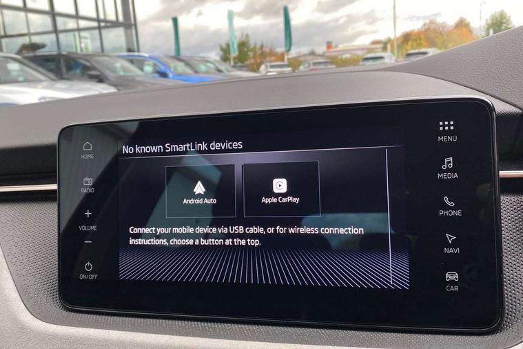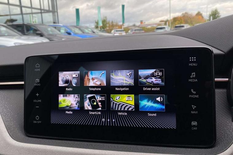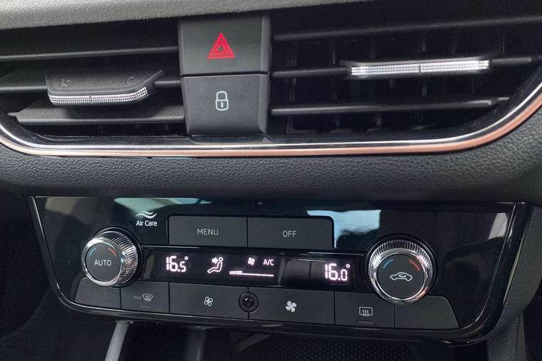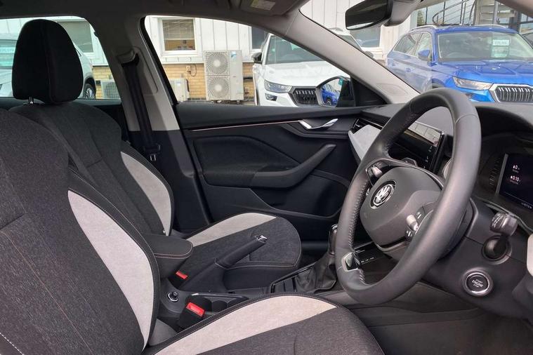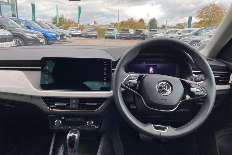 Advanced driver attention and drowsiness monitor, Bluetooth, e-Call (emergency call), Front assist system, PAS, Rear parking sensors, Speed limiter, Tailgate, Traffic sign recognition, Virtual Cockpit - 10.25" digital display, Voice control system, Wireless smartlink, 4 USB C ports, 8 Speakers, 9.2" Skoda navigation display, DAB radio, Auto dimming rear view mirror, Automatic headlamp activation with Coming home and Leaving home feature, Automatic high/low beam, Automatic intermittent wipers, Body colour bumpers, Body colour door mirrors and handles, Chrome moulding around grille, Chrome window frames, Front and rear electric windows, Heated rear window, LED 3rd brake light, LED brake lights, LED daytime running lights, LED front turning lights, LED high beam, LED low beam, Light sensors, Privacy glass, Rear LED fog light, Rear side wing doors, Rear wiper, Tinted windows, 12V socket in luggage compartment, 3 seat bench in 2nd row, Ambient lighting in white/red, Black / Copper armrest stitching, Cargo elements, Chrome inner door handles, Copper hotstamping, Door inserts in accent black, Driver and passenger sun visors with vanity mirror, Dual zone climate control, Front and rear roof lights, Front centre armrest, Front head restraints, Glasses storage in roof liner, Height adjustable driver seat, Height adjustable passenger seat, Ice scraper, Illuminated glove compartment, Inner circulation control with pollen filter, ISOFIX for front passenger seat, Isofix preparation for back seats, Leather gearknob and handbrake lever, Lodge cloth upholstery, Luggage net under rear parcel shelf, Manual lumbar support for front seats, Net package and top tether hooks in boot space, Pearl grey ceiling, Pocket on the back of both front seats, incl. mobile phone pockets, Rear centre armrest, Single front passenger seat, Textile floor mats, Third rear headrest, Ticket holder, Top tether for front passenger seat, Umbrella in driver's door, 3x3 point rear seatbelts, ABS, Child locks, Curtain airbags and front side airbags, Disc brakes, Driver and front passenger airbags, ESP, Hill hold control, Manual leather parking brake, One tone horn, Passenger airbag switch off function, Seatbelt reminder for driver and front passenger, Tyre pressure monitoring system, Anti theft alarm system with interior monitoring, backup horn and towing protection, Anti-theft wheel bolts, Remote central locking with 2 remote folding keys, SAFE function for remote central locking, Decorative inserts,