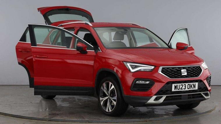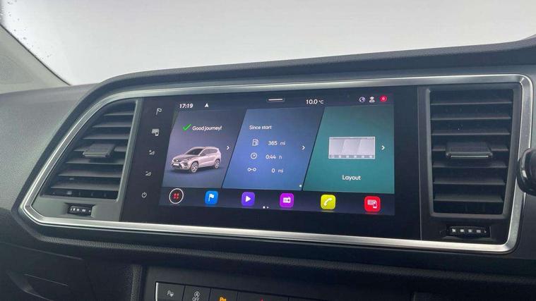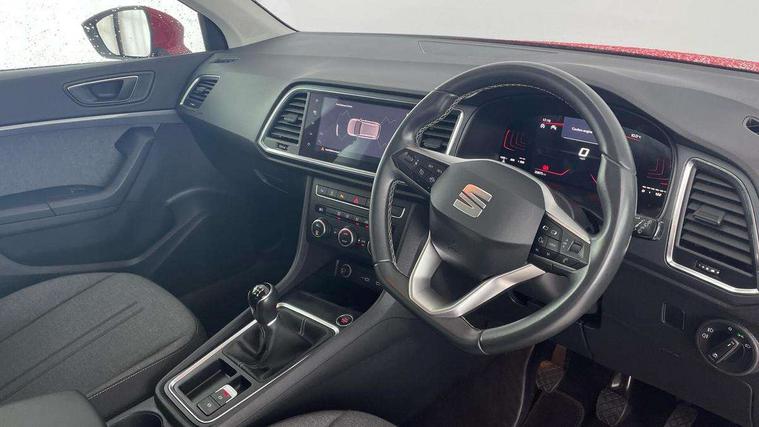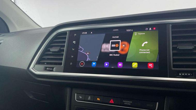 8" Digital cockpit, Colour multi-function on board computer display, Cruise control system with speed limiter, E-call, Outside temperature gauge, PAS, SEAT drive profile with driving experience button - Normal, Sport, Eco and Individual mode, steering and throttle response, Self parking functionality (includes front and rear parking sensors), Start/stop system, Tailgate, Trip computer, Wireless full link smartphone integration, Wireless phone charger, Steering wheel mounted audio/phone controls, Black wheel arch surrounds, Body colour bumpers, Chrome front grille frame, Chrome roof rails, Chrome side window trim, Daytime running lights, Door mirrors with welcome light silhouette, Dynamic headlight range control with self adjusting whilst driving, Electric adjustable/heated/folding door mirrors, Front and rear electric windows, Full LED headlamps with lens and LED front fog lamps with cornering function, LED rear tail lights with dynamic indicators, Rear fog lights, Rear side wing doors, Rear wash/wipe, Simulated exhaust pipes, Variable front intermittent wipers, 12v socket in front, 3 seat bench in 2nd row, 60/40 split folding rear seat, Cloth upholstery with front comfort seats, Drawer under right front seat, Dual zone climate control, Front and rear head restraints, Front centre armrest, Front seat back storage pockets, Height adjustable driver and passenger seat with lumbar adjustment, ISOFIX points in outer rear seats with top tether anchorage points, Leather steering wheel and gear knob, Rear armrest and easy back seat release mechanism from boot, Single front passenger seat, Interior lighting pack - Ateca, Navigation system pack with DAB - Ateca, 3x3 point rear seatbelts, ABS, Traction control system (TCS), Electronic stability control (ESC) and Electronic differential lock system (XDS), Airbags - Driver and front passenger airbag with deactivation, front side, two curtain and driver's knee airbags, Electric parking brake with auto hold function, Front and rear seatbelt reminder, Front assist with autonomous emergency braking, Hill hold control, Manual rear child locks, Single tone horn, Tiredness recognition system, Traction control, Tyre pressure monitoring system, Alarm, Keyless entry, Locking wheel bolts, Remote central locking, Chrome interior detailing, 18" Performance machined alloy wheels 36/2 in nuclear grey,