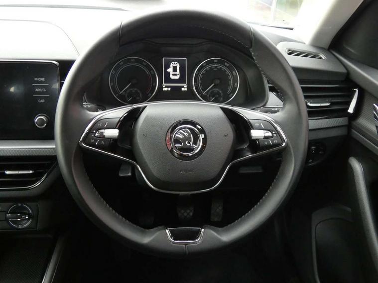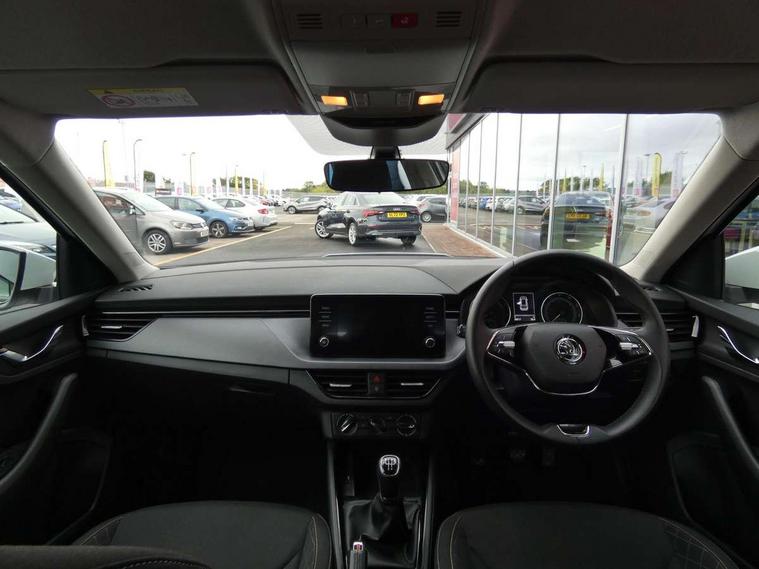 Bluetooth system, E-call, Front assist system, PAS, Service indicator, Speed limiter, Wireless Smartlink for Apple CarPlay (wired for Android Auto), 8 Speakers, Auxiliary input socket, DAB Digital radio, Body colour bumpers, Body colour door mirrors and handles, Chrome grille surround, Dimming rear view mirror with black surround, Electrically adjustable and heated door mirrors, Front and rear electric windows, Headlight range control, Heated rear window, LED rear lights - low functionality, LED third brake light, Light sensors, Rain sensor, Rear fog lights, Rear side wing doors, Rear wiper, 12V Accessory socket in centre console, 3 seat bench in 2nd row, Chrome inner door handles, Cloth upholstery, Front head restraints, Glove compartment with illumination, Ice scraper, Isofix child seat fittings on outer rear seats, ISOFIX on front passenger seat, Manual lumbar support for front seats, Rake/reach adjustable steering wheel, Reading lights, Single front passenger seat, Sun visors with illumination on front passenger, Textile floor mats, Third rear headrest, Top tether for front passenger seat, Umbrella in driver's door, 3x3 point rear seatbelts, Airbags - driver and front passenger, ESP, Front passenger airbag deactivation switch, Front side airbags with curtain airbags, Hill hold control, Manual parking brake, Manual rear child locks, One tone horn, Rear disc brakes, Seatbelt reminder for driver an co-driver, Traction control, Tyre pressure monitor, Anti-theft alarm system with interior monitoring, backup horn, towing protection and remote central locking with SAFE system, Anti-theft wheel bolts, Electronic engine immobilizer,
