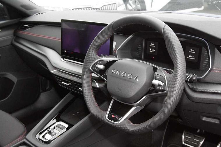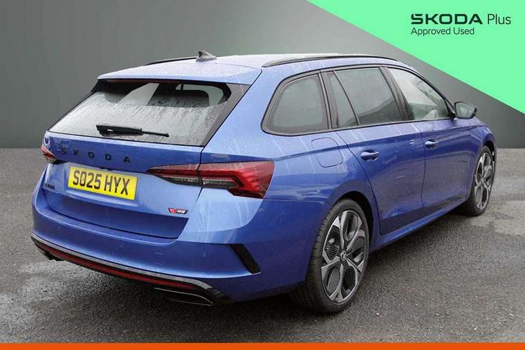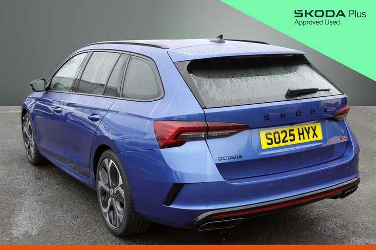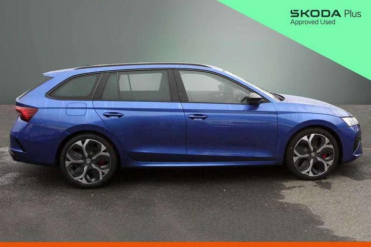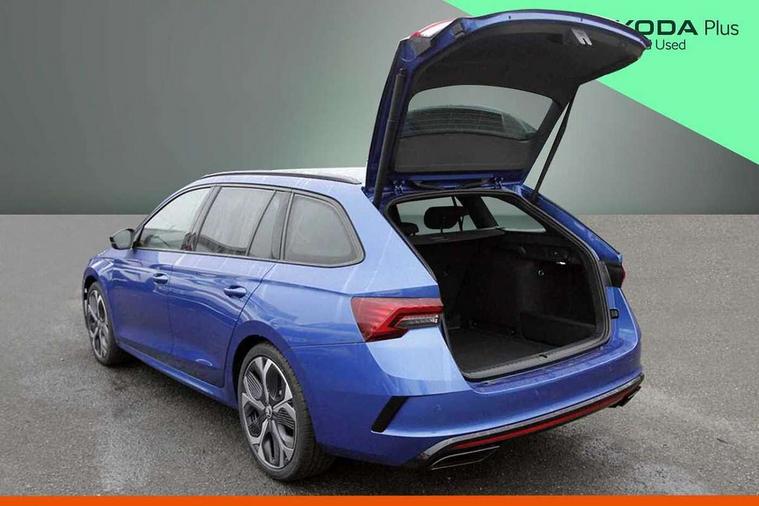 1x USB Typc C port in rear view mirror, 4x USB Type C ports - 2x in front centre console and 2x in rear (45W), Drive mode selection, Driver fatigue sensor, eCall emergency system, Electronic engine sound, Front assist system, Progressive dynamic steering, Traffic sign recognition, Turn Assist, Virtual Cockpit - 10.25" digital display, Voice control system, Wireless charging (15W) with cooling function, Wireless SmartLink for Apple CarPlay and Android Auto, Electronically controlled limited slip differential, vRS suspension, 13" touchscreen display with navigation, DAB Digital radio, Aero front windscreen wipers with intermittent function, Auto dimming rear view mirror, Black sport exhaust pipes, Body colour bumpers, Body colour door handles, Bumpers with rear red reflector strip, Electric front and rear windows, Exterior gloss black sports styling including front grille, window surrounds, door mirrors and badging, Gloss black diffuser, Gloss black roof rails, Gloss black spoiler, Heated rear windscreen, High beam control, High level third brake light, Ice scraper in fuel cap, LED daytime running lights, Logo projection in front doors, Rain and light sensors, Rear fog light on one side and reversing lights on both sides, Rear privacy glass, Rear side wing doors, Rear window wiper, Unique vRS bumpers and exterior styling, 12 volt socket in boot, 2x umbrella in door, 3 rear headrests, 3 seat bench in 2nd row, 4 foldable roof handles, Aluminium pedals, Front head restraints, Front sport seats, Heated front seats, Illuminated glovebox, Interior door handles in dark chrome, Jumbo Box storage, Luggage compartment lighting x2 lights, Mechanical rear seat release from boot, Single front passenger seat, Steering wheel in black leather with black stitching, Storage compartments in left and right of boot, Sun visors with mirrors, Sunglasses storage, Three spoke leather sports multifunction steering wheel with paddles, Ticket holder, Unsplit rear bench seat, split folding backrest with centre armrest with cupholder, Waste bin in door panel, Comfort package - Octavia Estate, Family package - Octavia, Light and view package plus - Octavia, vRS Design Selection pack - Octavia, 3x3 point rear seat belts, Alarm with interior monitoring, tilt sensor and back up horn, Curtain airbags and front side airbags, Driver and front passenger airbags, Drivers knee airbag, Electronic parking brake, ESC including ABS, EBV, MSR, ASR, EDS, HBA, DSR, Front central airbag, Hill hold assist, ISOFIX on front passenger seat and outer rear seats, Passenger airbag deactivate switch, Red brake calipers, Three point seat belts in front and rear, Two tone horn, Tyre pressure monitor, Visual and acoustic seat belt reminder, Warning reflectors in front door, Anti-theft wheel bolts, Keyless entry and start/stop, Remote central locking, Gloss black air vent surrounds, 19" Elias anthracite alloy wheels,