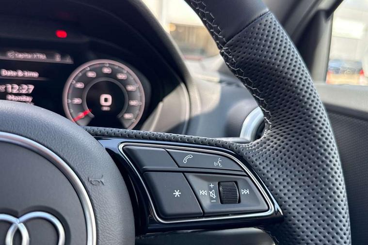 3D map display, Audi connect navigation and infotainment includes innovative services, Audi connect remote and control connects your vehicle to your smartphone, Audi drive select: power steering assistance + engine (modes: comfort, auto, dynamic, individual), Audi smartphone interface - Apple carplay/Android Auto, USB connect, 2xSDXC card readers, voice control for navi, telephone, music and 3rd party apps, Audi virtual cockpit, Automatic start/stop system with recuperation, Bluetooth interface includes bluetooth audio streaming, Camera based traffic sign recognition, Cruise control, Distraction and Fatigue warning, E-call, Jukebox hard drive memory for music (10GB), Lane departure warning, MMI navigation plus with 8.8" touchscreen, Natural voice recognition, Power operated tailgate, Progressive steering, Rear parking sensors, Sport suspension, 6 passive loudspeakers, DAB Digital radio, USB type C port, Auto dimming rear view mirror, Black window trims, Body colour door mirrors, Electrically adjustable, folding, auto dimming and heated door mirrors with integrated LED side indicators, Front windscreen with grey tinted sunband, LED daytime running lights, LED headlights with dipped beam, high beam, position lights, indicators, LED rear lights, LED third brake light, Privacy glass - dark tinted rear and rear side windows from B-pillar backwards, Rear side wing doors, Rear wiper, S Line badges on the front wings, S Line body styling - front and rear bumpers, side skirts, radiator grille, rear diffuser insert and front air intakes, Variable front intermittent wipers, Wheel arch trims in manhattan grey, 12v socket in front, 3 seat bench in 2nd row, 3 spoke multi-function leather steering wheel with S badging, 4-way electric lumbar support for front seats including manual seat height adjustment for both front seats, 60/40 split folding rear seat bench, Black carpets, Black cloth headlining, Front and rear head restraints, Front centre armrest, Front sport seats, Front/rear floor mats, Height/reach adjust steering wheel, Illuminated door sill trims with S logo, ISOFIX child seat mounting in front passenger and rear outer seats, Manual air conditioning, Single front passenger seat, Stainless steel pedals, 3x3 point rear seatbelts, 6 airbags - Front, curtain and front side airbags, Electromechanical parking brake, Electronic stabilisation control including ABS, ASR and EDL, Front passenger airbag deactivation, Hill hold assist, Pre-sense front with pedestrian recognition, Seatbelt monitoring, Tyre pressure warning light with visual and acoustic warning, Warning triangle and first aid kit, Anti theft wheel bolts, Electronically operated child locks, Remote central door locking, Thatcham category 1 alarm, Aluminium interior element, Black dashboard, Gloss black centre console, Matt brushed aluminium trim inlays, Tool kit,