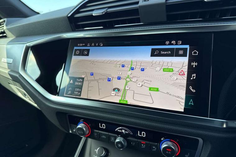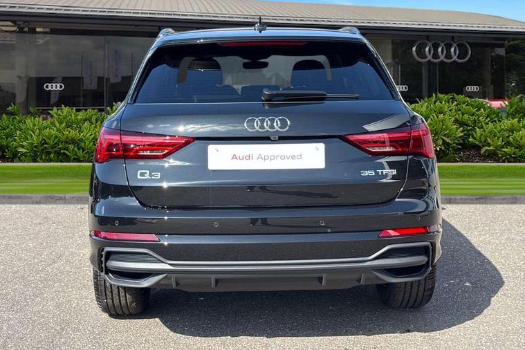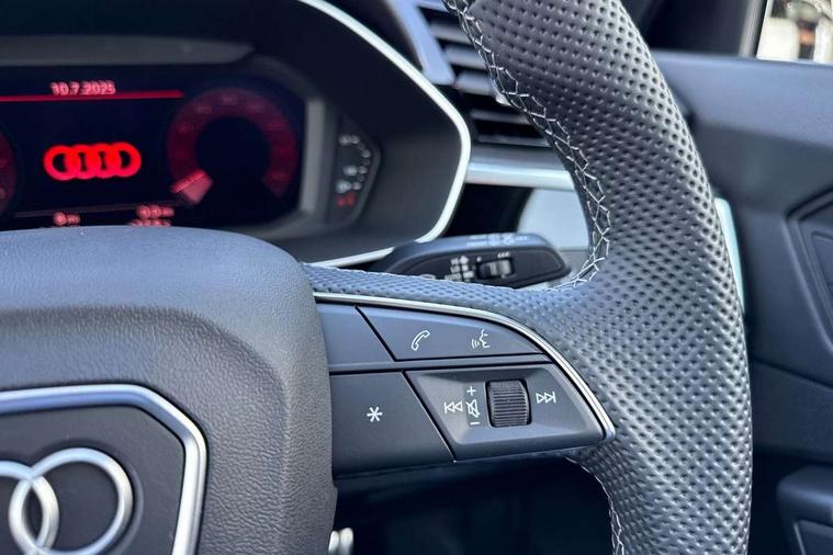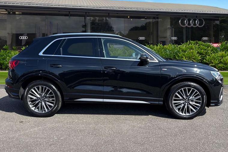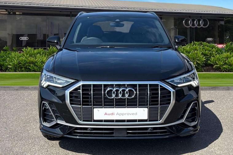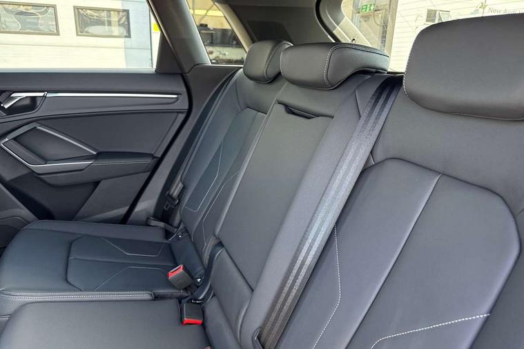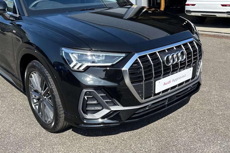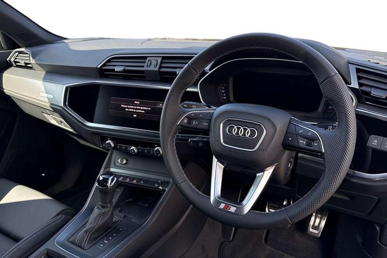 Amazon alexa Integration, Audi connect safety and service, Audi drive select, Audi lane departure warning, Audi Virtual Cockpit - 10.25" display, Bluetooth interface, Camera based traffic sign recognition, Distraction and Fatigue warning, Legal emergency call, MMI Navigation Plus with high resolution 10.1 inch touchscreen colour display, Power operated tailgate, Progressive steering, Service interval indicator, Smartphone interface includes wireless Apple carplay/Android Auto, Start stop system with recuperation, Voice control system with natural language interaction, Sports suspension, 2 USB-C ports with charge and data functions, 6 passive loudspeakers, DAB digital radio module, Acoustic windscreen, Aluminium roof rails, Aluminium window trim, Anthracite black radiator grille, Auto dimming door mirrors, Auto dimming frameless rear view mirror, Body colour front spoiler blade, Electrically folding, adjustable and heated door mirrors with integrated LED side indicators and kerb view function for passenger side, Front and rear electric windows, Front fog lights, Front side air inlets in matt platinum grey, Grille vertical bars in aluminium silver/Matt, High gloss black finish B and C pillars, LED Dynamic rear indicators, LED headlights with LED daytime running lights, LED rear lights, LED third brake light, Privacy glass dark tinted rear and rear-side windows (from B-pillar backwards), Rain and light sensors, Rear diffuser grille in grained matt black, Rear diffuser strip in matt anthracite black, Rear side wing doors, Rear wiper, S line badges on front wings, S Line front and rear bumpers and side skirts, Side skirt insert in matt Platinium grey, Variable front intermittent wipers, 12V socket in rear centre console, 3 seat bench in 2nd row, 3 spoke leather multifunction steering wheel features S badging and grips in perforated leather with contrast stitching, 40:20:40 folding with manual adjustment for 60:40 forwards/backwards position and backrest angle, Adjustable rear seat bench/backrest with centre armrest and cupholder, Black carpet mats, Black cloth headlining, Dual zone electronic climate control, Electric lumbar support, Front and rear black floor mats with contrast stitching in rock grey, Front and rear headrests, Front centre armrest, Height and reach adjustable steering wheel, Horizontal trim strip in matt platinum grey, Illuminated door sill trims with S logo, ISOFIX child seat mounting for front passenger with airbag deactivation and outer rear seat including top tether attachment point for outer rear seats, Luggage compartment sill protection in stainless steel, Manual front seats with height adjustment, Perforated leather gearknob, Single front passenger seat, Stainless steel pedals, Twin leather upholstery with front sport seats + S embossing, Non smoking pack - Q3, 3x3 point rear seatbelts, 6 airbags - Driver, front passenger, curtain and side windows, Audi pre-sense front with pedestrain and cyclist recognition, Electrically operated child locks on rear doors, Electromechanical parking brake, Electronic stabilisation control including ABS, ASR and EDL, Front seatbelt reminder, Hill descent control, Hill hold assist, Pre sense basic, Seatbelt monitoring, Tyre pressure warning, Warning triangle and first aid kit, Anti theft wheel bolts, Immobiliser, Remote central locking, Thatcham approved category 1 anti theft alarm, Aluminium look interior elements, Dark matt brushed aluminium inlay, Detail dashboard around MMI touch colour display in glass look, black with surround in aluminium look, Leatherette door armrest,