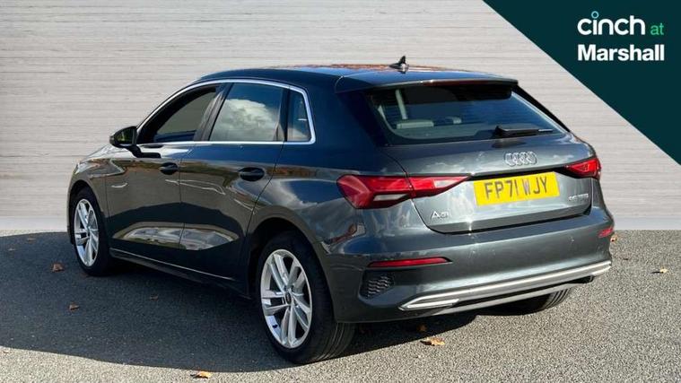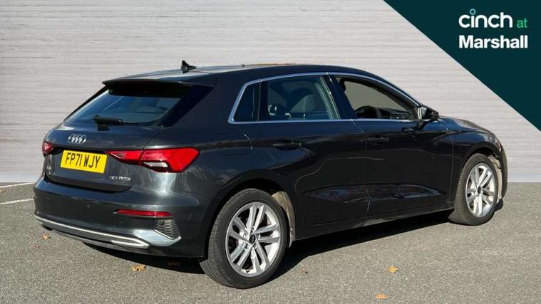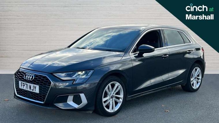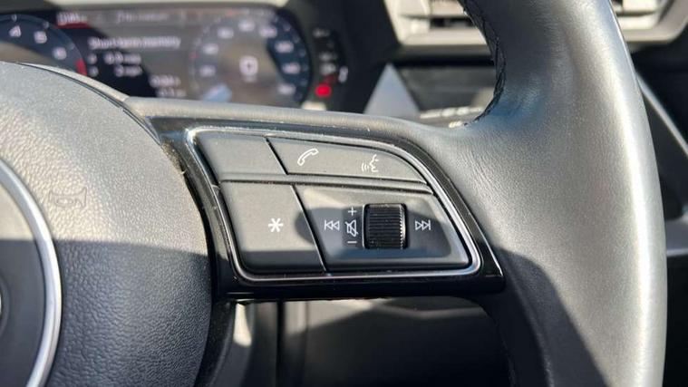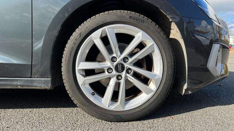 Audi connect emergency call and service, Audi drive select (Auto, Comfort, Dynamic and Individual), Audi smartphone interface, Audi Virtual Cockpit - 10.25" digital and colour instrument cluster, Automatic start/stop system with recuperation, Bluetooth interface, Collision avoidance assistant, Electromechanical power speed sensitive steering, Lane departure warning system, MMI Navigation Plus with high resolution 10.1" colour touch screen display, Service indicator, Trip computer, Voice control system with natural language interaction, Standard suspension, 2xUSB-C connection with data and charging functions, 6 passive loudspeakers, DAB Digital radio, 3rd brake light, Acoustic glass windscreen, Aluminium window trim, Auto dimming frameless rear view mirror, Body colour exterior mirrors, Body colour roof spoiler, Electrically adjustable/heated/folding/auto dimming door mirrors with integrated LED indications + kerb view function for passenger side, Front electric windows, LED daytime running lights, LED headlights and halogen rear lights, Light and rain sensors, Rear electric windows, Rear window, rear door windows and rear side windows in clear glass, Rear wiper, 12V socket and storage compartment in front centre console, 40/20/40 split folding rear seat bench with cupholder, Dual zone electronic climate control, Front and rear centre armrest, Front and rear headrests, Front door sill trims with aluminium inlay, Front/rear floor mats, Height and reach adjustable steering wheel, Interior lighting - Front and rear roof module including reading lights, glove compartment light and right hand side, Luggage compartment floor covering, Manual boot compartment lid, Manually adjustable front seats, Seat side bolsters, Steel grey cloth headlining, Twin leather upholstery, Aluminium interior elements pack - A3 Sportback, Sport styling pack - A3 Sportback, 3x3 point rear seat belts, Driver and front passenger airbag with passenger airbag deactivation, Electronic Stabilisation Control (ESC) including ABS, ASR and EDL, First aid kit with warning triangle and 2 safety vests, Front side airbags with head airbags and interaction airbag, Hill hold assist, Pre-sense front with pedestrian and cyclist detection, Seatbelt monitoring, Tyre pressure loss indicator, Anti theft alarm, Anti-theft wheel bolts, Electronically operated child lock, Immobiliser, Remote control central locking, Inlays with silk effect paint in platinum grey,