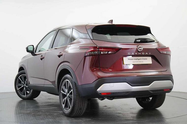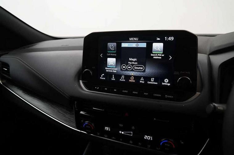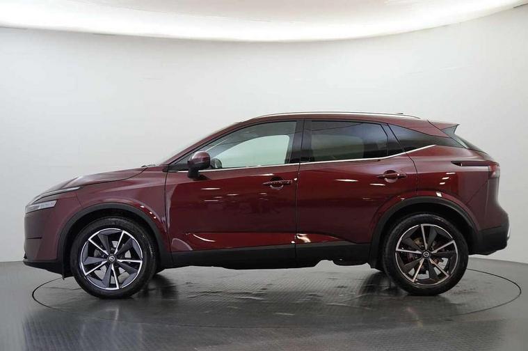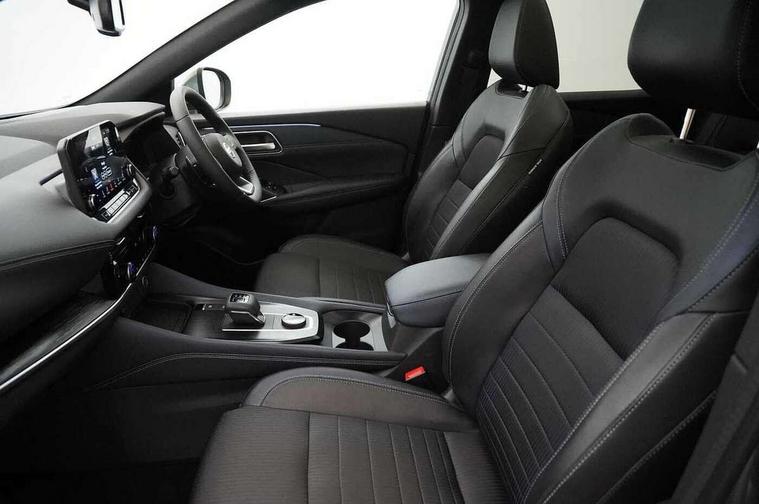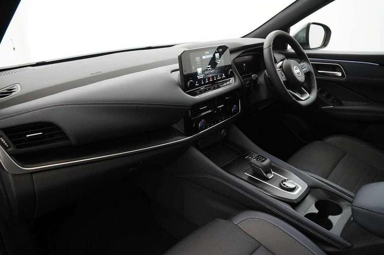 Blind spot warning, Drive modes (sport, normal, eco, snow, off-road), Electric speed sensitive power steering, Emergency and breakdown call, Front and rear parking sensors, Full Digital 12.3" TFT Digital Combimeter, Google maps services - search, weather, 3D maps and Google street view, Hands free power tailgate, Idle stop/start system, Intelligent around view monitor, Intelligent Cruise control (ICC), Intelligent driver alert system, Intelligent forward collision warning, Intelligent lane intervention, Lane departure prevention, Lane departure warning system, Moving object detection, Nissan connect 9" touchscreen infotainment system, Nissan connect navigation, Push button starter, Rear cross traffic alert, Remote control services - door locks, lights, horn and car locator, Telematics - notifications and connectivity services, TomTom live traffic services, Traffic sign recognition with legal speed adjustment, Trip computer, Virtual personal assistant and firmware over the air capability, Wireless Apple CarPlay and wired Android Auto, Wireless charging pad, 6 speakers, AM/FM audio system with DAB, Bluetooth audio streaming, Front USB connections (Type-A and Type-C), Rear USB charging only ports (Type-A and Type-C), Auto dimming rear view mirror, Auto rear wiper when reversing, Body colour mirror caps, Body coloured door handles, Bodyside mouldings, Chrome side window finisher, Door handle with button, Dusk sensor, Electric auto folding door mirrors, Electrically adjustable and heated door mirrors with LED turn indicator, Fixed panoramic glass roof with electric sunshade, Follow me home headlights, Front and rear LED turning signals, Intelligent auto headlights, LED daytime running lights, LED rear lights, One touch front and rear electric windows with remote opening and closing, Partially body coloured bumpers, Privacy glass, Rear roof spoiler, Rear side wing doors, Rear styling plate, Roof rails, Shark fin antenna, Splash free rain sensing wipers, Super UV and infrared cut glass, Three blink turn signal, 12v power socket in dashboard and luggage, 2 way electrical driver lumbar adjustment, 2x Rear coat hooks, 3 bench rear seats in 2nd row, 3 rear headrests, 4 folding assist grip, 6 Luggage hooks - 4 on floor, 2 on side, 60/40 split folding rear seat bench, 8 way electric adjustable drivers seat, Ambient lighting around centre console, Ambient lighting in front doors, Centre console storage tray, Chrome interior door handles, Cloth/syntech leather monoform upholstery, Dark headlining, Driver and front passenger sunvisors with illuminated vanity mirrors, Driver seat back pocket, Dual zone automatic climate control with pollen filter, Front and rear door storage, Front cupholders x 2, Front door with bottle holders, Glovebox with light, Hard trunk cover, Height adjustable front headrests, Leather steering wheel, Luggage board system, Luggage space lighting, Manual lumbar support on passenger seat, Manually adjustable passenger (slide recline + lifter), Multifunction steering wheel, Passenger seat back pocket, PVC front centre console and armrest, Rear armrest with 2 cupholders, Rear door bottle holders, Single front passenger seat, Soft PVC kneepad, Steering wheel gearshift paddles, Steering wheel switches, Tilt/telescopic adjustable steering wheel, Two rear isofix child seat anchorage points with top tether, Welcome light and doors with console tray ambient lighting, Heat pack - Qashqai, Tech Pack (ProPILOT + HUD), 3x3 point rear seatbelt pretensioners + load limiters, ABS, ESP, EBD and brake assist, Active brake limited slip, Auto hold function, Child locks on rear doors, Curtain and front side, far side airbags, Driver and passenger airbags, Driver, passenger and 2nd row rear seat belt reminder, Electronic parking brake, Front seatbelt pretensioners + load limiters, Height adjustable front seatbelts, Hill start assist, Intelligent blind spot intervention, Intelligent front emergency braking with pedestrian, cyclist recognition and junction assist, Intelligent rear automatic braking, Tyre pressure monitoring system, Vehicle dynamic control, Capless fuel filler, Engine immobiliser, Nissan i-key, Rear bumper with silver insert, Remote central door locking with deadlocking, Thatcham Cat.1 alarm, 19" Alloy wheels,