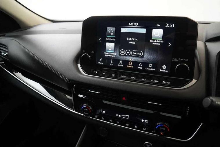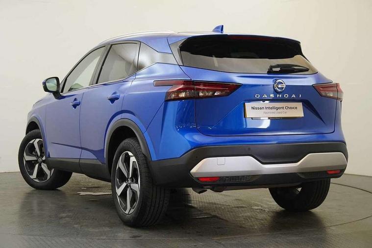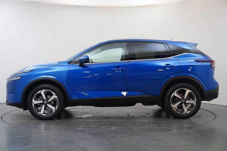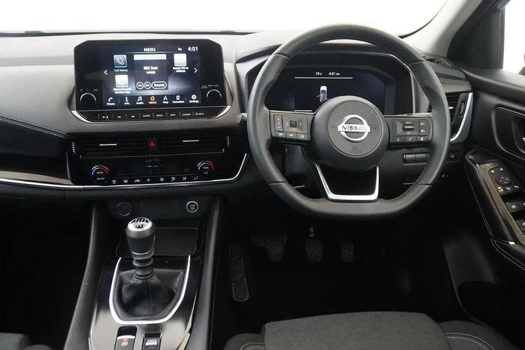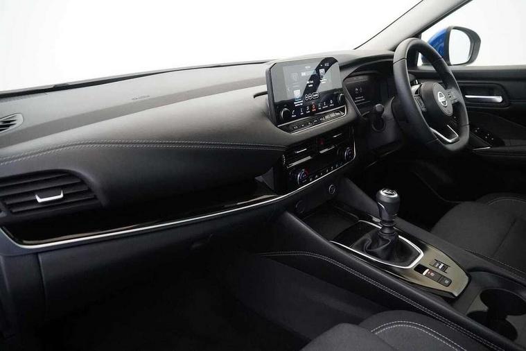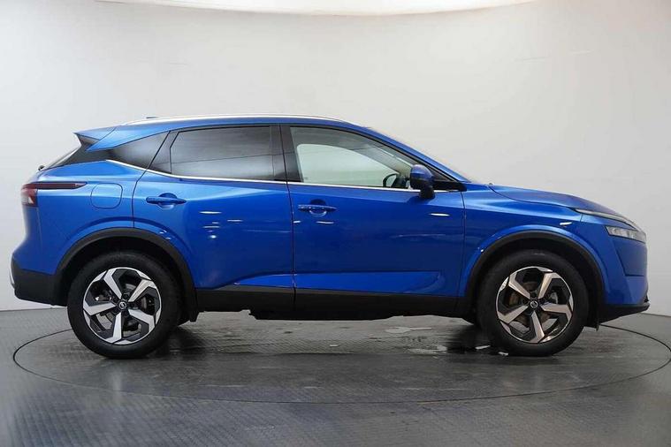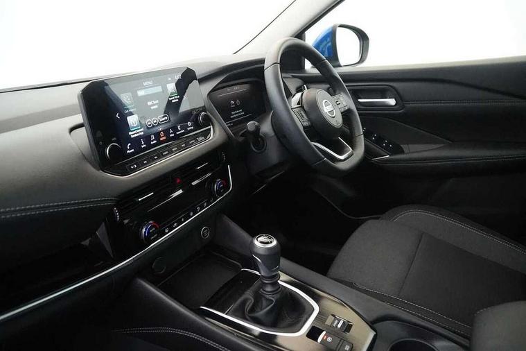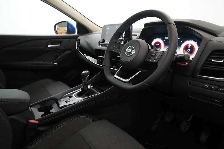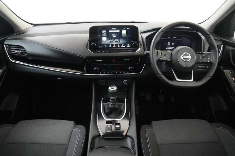 7" High definition full colour TFT screen combimeter, Blind spot warning, Drive modes (sport, normal, eco), Electric speed sensitive power steering, Emergency and breakdown call, Front and rear parking sensors, Idle stop/start system, Intelligent Cruise control (ICC), Intelligent driver alert system, Intelligent forward collision warning, Intelligent lane intervention, Lane departure prevention, Lane departure warning system, Maximum speed limiter, Moving object detection, Push button starter, Rear cross traffic alert, Traffic sign recognition with legal speed adjustment, Trip computer, 6 speakers, AM/FM audio system with DAB, Bluetooth audio streaming, Front USB connections (Type-A and Type-C), Rear USB charging only ports (Type-A and Type-C), 3rd brake light, Auto dimming rear view mirror, Auto rear wiper when reversing, Body colour mirror caps, Body coloured door handles, Bodyside mouldings, Chrome side window finisher, Electric auto folding door mirrors, Electrically adjustable and heated door mirrors with LED turn indicator, Follow me home headlights, High beam assist, Intelligent auto headlights, LED daytime running lights, LED Headlights, LED rear lights, One touch front and rear electric windows with remote opening and closing, Partially body coloured bumpers, Privacy glass, Rear reversing light (bulb lighting), Rear roof spoiler, Rear styling plate, Shark fin antenna, Splash free rain sensing wipers, Super UV and infrared cut glass, Three blink turn signal, 12v power socket in dashboard and luggage, 2 way electrical driver lumbar adjustment, 2x Rear coat hooks, 3 rear headrests, 4 grab handles, 6 Luggage hooks - 4 on floor, 2 on side, 60/40 split folding rear seat, Ambient lighting around centre console, Centre console storage tray, Chrome interior door handles, Cloth monoform upholstery, Driver and front passenger sunvisors with illuminated vanity mirrors, Driver seat back pocket, Dual zone automatic climate control with pollen filter, Front centre console and armrest, Front cupholder, Front door with bottle holders, Glovebox with light, Hard trunk cover, Height adjustable driver's seat, Height adjustable front headrests, Leather shift knob, Leather steering wheel, Luggage board system, Luggage space lighting, Manually adjustable passenger (slide recline + lifter), Multifunction steering wheel, Passenger seat back pocket, Rear armrest with 2 cupholders, Rear door bottle holders, Soft PVC kneepad, Steering wheel switches, Sunglasses holder, Tilt/telescopic adjustable steering wheel, Two rear isofix child seat anchorage points with top tether, Welcome light and console tray ambient lighting, Connectivity Pack - Qashqai, 3x3 point rear seatbelt pretensioners + load limiters, ABS, ESP, EBD and brake assist, Active brake limited slip, Auto hold function, Child locks on rear doors, Curtain and front side, far side airbags, Driver and passenger airbags, Driver, passenger and 2nd row rear seat belt reminder, Electronic parking brake, Front seatbelt pretensioners + load limiters, Height adjustable front seatbelts, Hill start assist, Intelligent blind spot intervention, Intelligent front emergency braking with pedestrian, cyclist recognition and junction assist, Intelligent rear automatic braking, Tyre pressure monitoring system, Vehicle dynamic control, Capless fuel filler, Engine immobiliser, Nissan i-key, Remote central door locking with deadlocking, Thatcham Cat.1 alarm, 18" diamond cut alloy wheels,