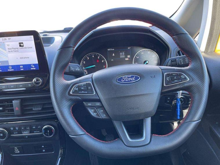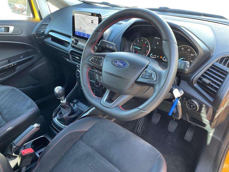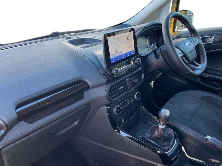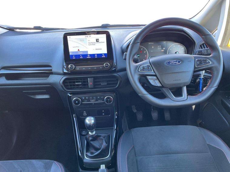 Cruise control, e-Call (emergency call), Easy fuel capless refuelling system, Ford SYNC 3 nav system with DAB radio, 8" screen, emergency assistance, Apple car play/Android auto, 2x USB, 6 speakers, Ford pass connect, Intelligent speed limiter, PAS, Rear parking sensors, Rear view camera, Traffic sign recognition, Trip computer, Sports suspension, Steering wheel mounted audio controls, Auto dimming rear view mirror, Automatic front wipers, Automatic headlights, Black roof rails, Body colour door handles, Body coloured bumpers, Chrome lower window surround, Electrically adjustable and heated door mirrors, Front fog lights, Front grille bars and surround in black, Headlight levelling control, Large rear roof spoiler, LED day running lights, LED third brake light, Power front and rear windows, Puddle lights, Quick-clear heated windscreen, Rear side wing doors, Rear wiper, ST Line body styling kit - Black headlamp bezel, front and rear sport bumpers, body colour lower door claddings, 12V socket in front and rear, 3 seat bench in 2nd row, 60/40 split rear seats, Ambient lighting, Centre console with sliding front armrest, Cooled glovebox, Courtesy lights with map reading light, Driver seat height/lumbar adjust, Driver's side glovebox, Driver/passenger sunvisors and lidded vanity mirrors, EATC - Electronic Auto Temperature control, Folding grab handles, Front head restraints, Front seat back map pockets, Illuminated glovebox, Illuminated luggage compartment, Isofix system on outer rear seats, Luggage compartment carpet, Neosuede/Partial sensico leather upholstery, Overhead console with sunglasses holder, Rake adjustable rear seats, Reach + rake adjustable steering column, Rear headrests, Sensico trimmed steering wheel, handbrake and gearshift gaiter with red stitching, Single front passenger seat, ST-Line Front floor mats with red stitching, Stainless steel sports pedals, Storage drawers under front seats, Tie down hooks, Variable boot floor, 3x3 point rear seatbelts, ABS, Autonomous emergency braking, Child locks on rear doors, Curtain airbags, Driver airbag, Drivers knee airbag, Electronic Stability Programme with hill launch assist, Front passenger airbag deactivation, Front side airbags, Passenger airbag, Pre collision assist system with AEB, Seatbelt reminder for driver and front passenger, Traction control, Tyre pressure monitoring system, Immobiliser, MyKey system, Remote central locking, Thatcham 1 volume sensing alarm, Low rolling resistance tyres, Tyre inflation kit,