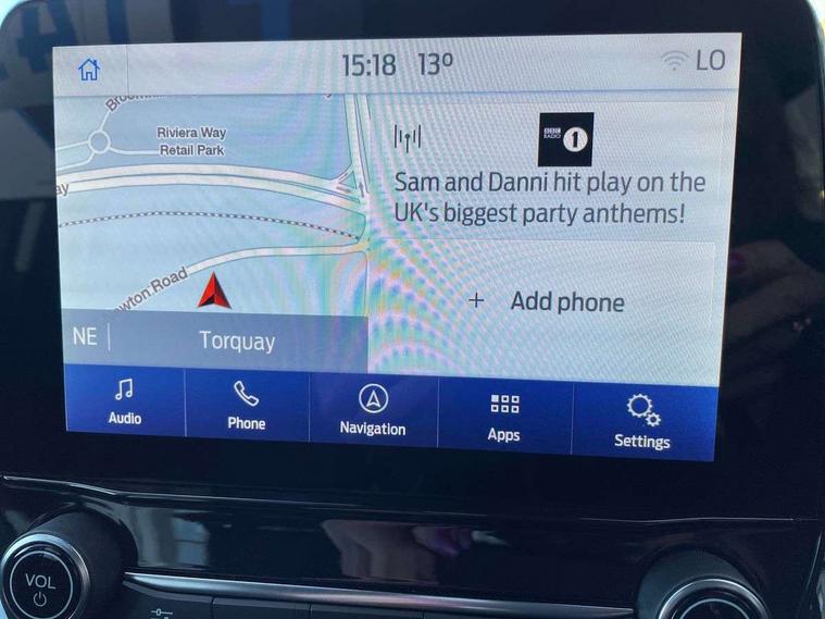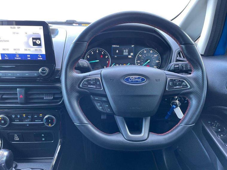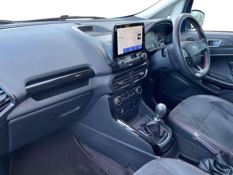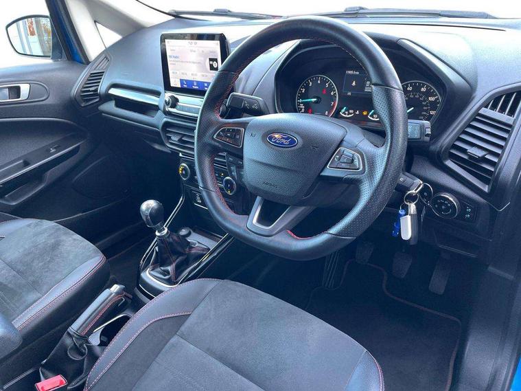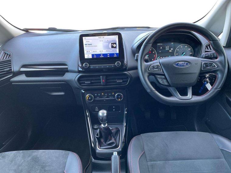 Cruise control, e-Call (emergency call), Easy fuel capless refuelling system, Ford SYNC 3 nav system with DAB radio, 8" screen, emergency assistance, Apple car play/Android auto, 2x USB, 6 speakers, Ford pass connect, Intelligent speed limiter, PAS, Rear parking sensors, Rear view camera, Traffic sign recognition, Trip computer, Sports suspension, Steering wheel mounted audio controls, Auto dimming rear view mirror, Automatic front wipers, Automatic headlights, Black roof rails, Body colour door handles, Body coloured bumpers, Chrome lower window surround, Electrically adjustable and heated door mirrors, Front fog lights, Front grille bars and surround in black, Headlight levelling control, Large rear roof spoiler, LED day running lights, LED third brake light, Power front and rear windows, Puddle lights, Quick-clear heated windscreen, Rear side wing doors, Rear wiper, ST Line body styling kit - Black headlamp bezel, front and rear sport bumpers, body colour lower door claddings, 12V socket in front and rear, 3 seat bench in 2nd row, 60/40 split rear seats, Ambient lighting, Centre console with sliding front armrest, Cooled glovebox, Courtesy lights with map reading light, Driver seat height/lumbar adjust, Driver's side glovebox, Driver/passenger sunvisors and lidded vanity mirrors, EATC - Electronic Auto Temperature control, Folding grab handles, Front head restraints, Front seat back map pockets, Illuminated glovebox, Illuminated luggage compartment, Isofix system on outer rear seats, Luggage compartment carpet, Neosuede/Partial sensico leather upholstery, Overhead console with sunglasses holder, Rake adjustable rear seats, Reach + rake adjustable steering column, Rear headrests, Sensico trimmed steering wheel, handbrake and gearshift gaiter with red stitching, Single front passenger seat, ST-Line Front floor mats with red stitching, Stainless steel sports pedals, Storage drawers under front seats, Tie down hooks, Variable boot floor, 3x3 point rear seatbelts, ABS, Autonomous emergency braking, Child locks on rear doors, Curtain airbags, Driver airbag, Drivers knee airbag, Electronic Stability Programme with hill launch assist, Front passenger airbag deactivation, Front side airbags, Passenger airbag, Pre collision assist system with AEB, Seatbelt reminder for driver and front passenger, Traction control, Tyre pressure monitoring system, Immobiliser, MyKey system, Remote central locking, Thatcham 1 volume sensing alarm, Low rolling resistance tyres, Tyre inflation kit,