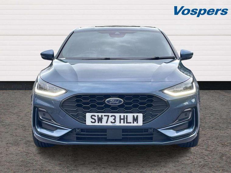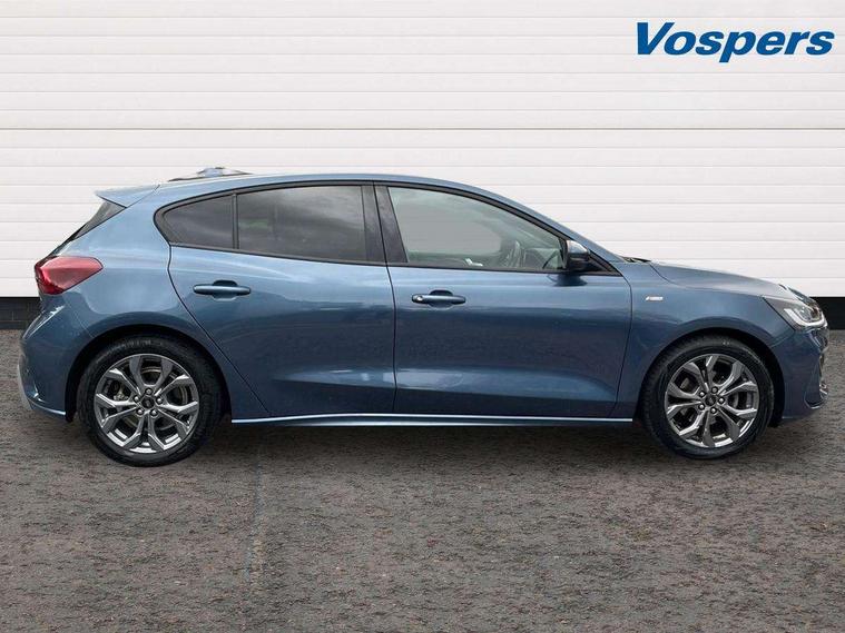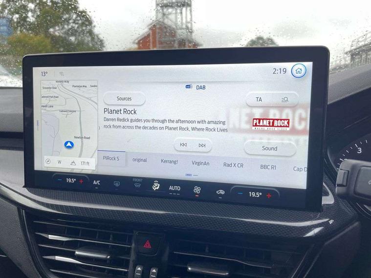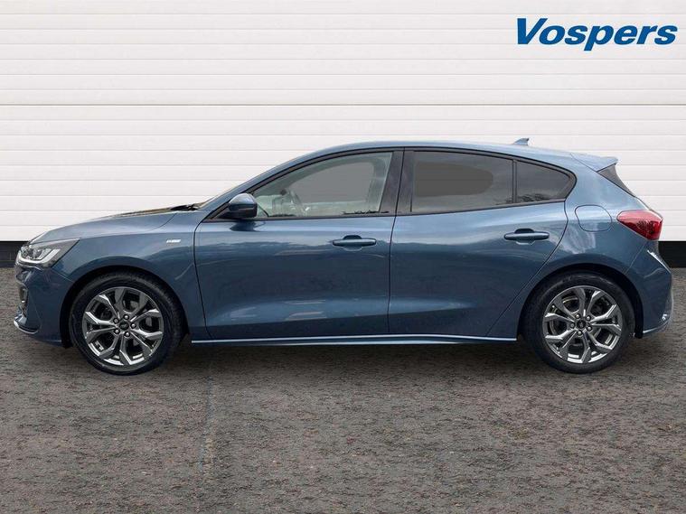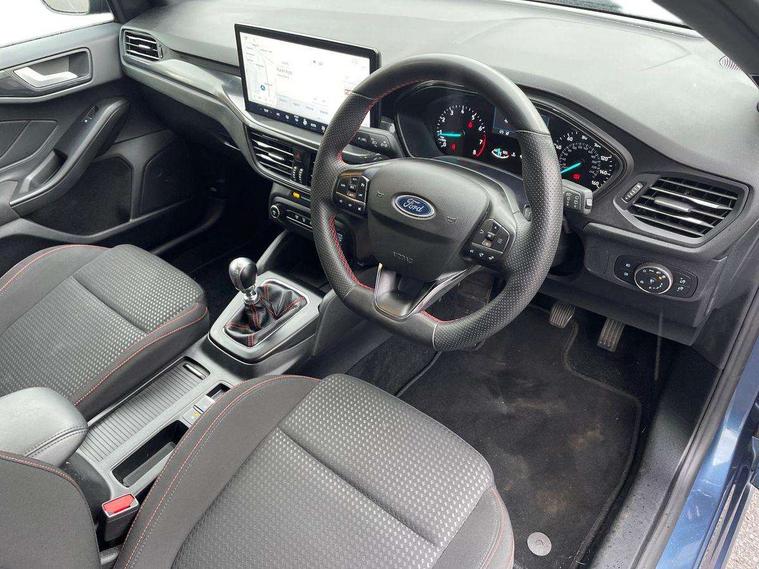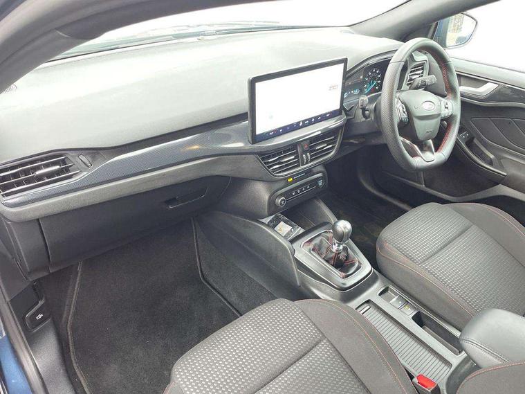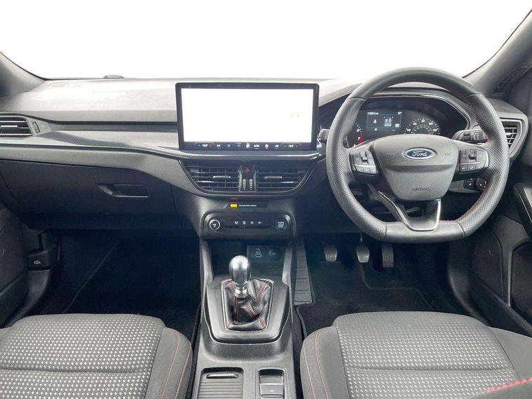 4.2" Colour TFT Ice blue illumination analogue cluster with trip computer, Bluetooth system, Digital clock, Easy fuel capless refuelling system, Eco mode, Ford SYNC 4 Navigation with 13.2'' touchscreen, DAB radio, Emergency Assistance, Apple Carplay & Android Auto, 6 speakers & FordPass Connect, Lane keeping system - lane keeping alert and lane keeping aid, PAS, Rev counter, Selectable drive mode, Service interval indicator, Sports tuned suspension, 2 USB ports, Auto headlamps (on/off), Body coloured door handles, Electrically operated front and rear windows with one touch opening and closing, Electrically operated heated power fold door mirrors with puddle lamp with side indicators, Front variable intermittent wipers with electric wash, Full fixed LED headlamps, Heated rear window, LED daytime running lamp, LED rear lamps, LED third brake light, Polished twin tailpipe, Privacy glass, Quickclear heated windscreen, Rain sensor, Rear side wing doors, Tailgate wash/wipe, Unique ST-Line grille, full bodystyling kit, and large body coloured rear spoiler, 3 rear headrests, 3 seat bench in 2nd row, Cloth upholstery, Dual zone electronic air temperature control, Height adjustable front headrests, Isofix child seat preparation, Reach + rake adjustable steering column, Single front passenger seat, 3x3 point rear seatbelts, ABS+Electronic Brake force Distribution, Auto hold function, Driver airbag, EDL traction control, Electronic parking brake, Electronic stability control, Front and rear seatbelt reminder, Front inertia reel height adjustable seatbelts with pre-tensioners, Front passenger airbag, Front side airbags, Passenger airbag deactivate switch, Post collision braking, Pre collision assist with autonomous emergency braking and pedestrian/cyclist detection, Remote/power child rear door locks, Side curtain airbags, Three rear inertia reel lap/diagonal seatbelts, Tyre pressure monitoring system, Keyless entry and keyless start, MyKey system, Remote central locking & engine immobiliser, Thatcham alarm with power door dead locks, 17" 5 spoke Rock mettalic finish alloy wheels with mini spare wheel,