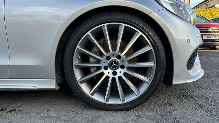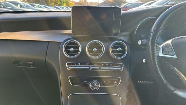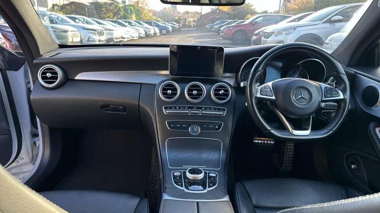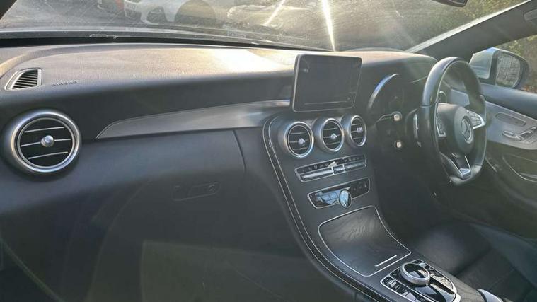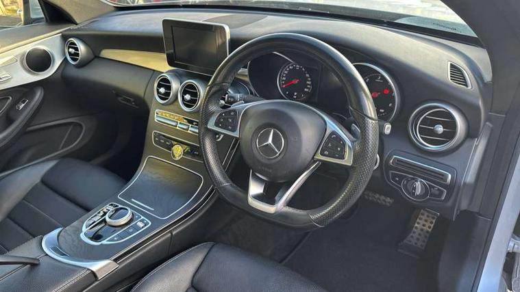 Active park assist with parktronic system, Attention assist, Bluetooth interface for hands free telephone, Collision prevention assist plus, DYNAMIC SELECT with a choice of driving modes (ECO, Comfort, Sport, Sport+ and Individual), Garmin Map Pilot navigation system with SD card, touchpad and voice control, Instrument cluster with 5.5-inch TFT multi-function display, Multi function trip computer, Outside temperature gauge, Remote boot release, Service indicator (ASSYST), Speed sensitive steering, Diesel particulate filter, 2 USB ports, Audio 20 radio/CD with 7" colour display with multi touch keypad, DAB digital radio module, Frontbass loudspeakers, Media interface, Steering column mounted multifunction controls, Adaptive brake lights, AMG front, rear apron and side skirts, Auto dimming driver's door mirror, Auto dimming rear view mirror, Body coloured bumpers, Chrome grille surround, Door sill plates with "Mercedes-Benz" lettering, Electric adjustable/heated/folding door mirrors, Electric front sliding and fixed rear panoramic glass sunroof, Electric windows one touch open/close, Green tinted glass, Heated windscreen washers, LED daytime running lights, LED tail lights, Radiator grille with integral star, Rain sensor windscreen wipers, Side windows surround in polished aluminium, Twin chrome exhaust tailpipes, 2 cupholders in front centre console, 2 rear head restraints, 3 spoke flat bottom multi-function leather AMG steering wheel, 4-way lumbar support for drivers seat, 4-way lumbar support for front passenger seat, 40:20:40 split folding rear seats, Advanced multicolour ambient light and LED interior light, AMG floormats, Auto dual-zone climate control system, Auto Mercedes-Benz child seat recognition sensor, Door courtesy lamps, Electric front seats, Electric height adjustable front seats, Front centre armrest with storage compartment, Front footwell illumination, Heated front seats, Height/reach adjustable steering column, Illuminated front/rear door handle recesses, Illuminated glovebox, Isofix rear child seat fastenings, LED reading lights, Sports pedals with stainless steel surfaces and rubber studs, Sports seats with integrated headrests, Steering wheel gearshift paddles, Sunvisors with illuminated vanity mirrors, Memory pack - C Class, Seat comfort pack - C Class, Stowage space pack - C Class, 2 rear seatbelts, ABS + BAS, Active bonnet, Adaptive brake system, Brake calipers with Mercedes-Benz lettering + perforated brake discs, Drivers knee airbag, Drivers pelvis airbag, Dual stage driver/passenger airbags, Electronic parking brake, ESP with ASR, Front side airbags, Hill hold control, Hill start assist, Tyre pressure monitoring system, Warning triangle and first aid kit, Window airbags, Alarm system/interior protection/immobiliser, Chrome surround electric key, Keyless entry and keyless start, Remote central locking,
