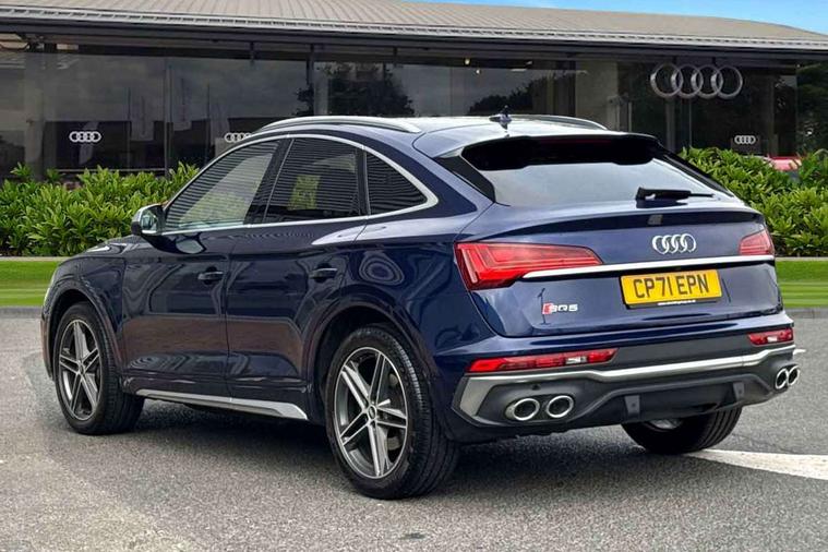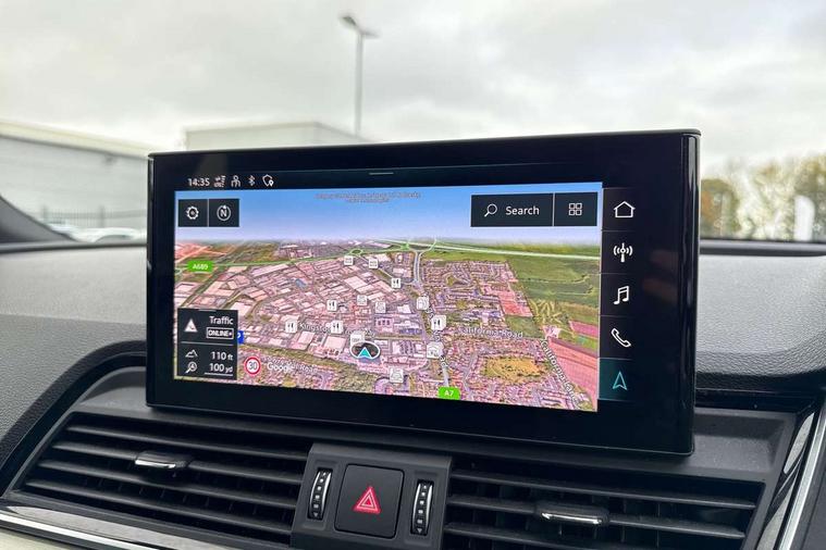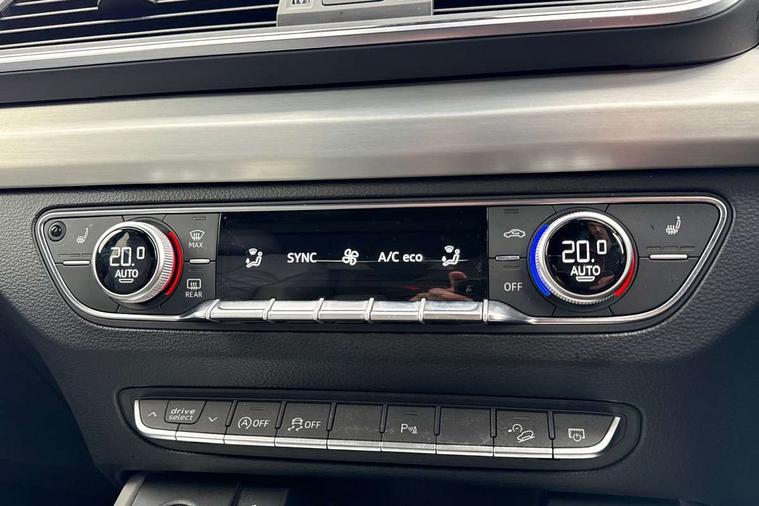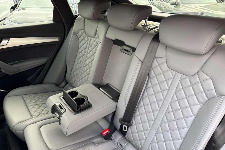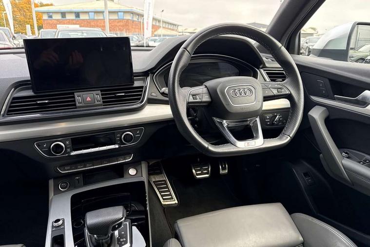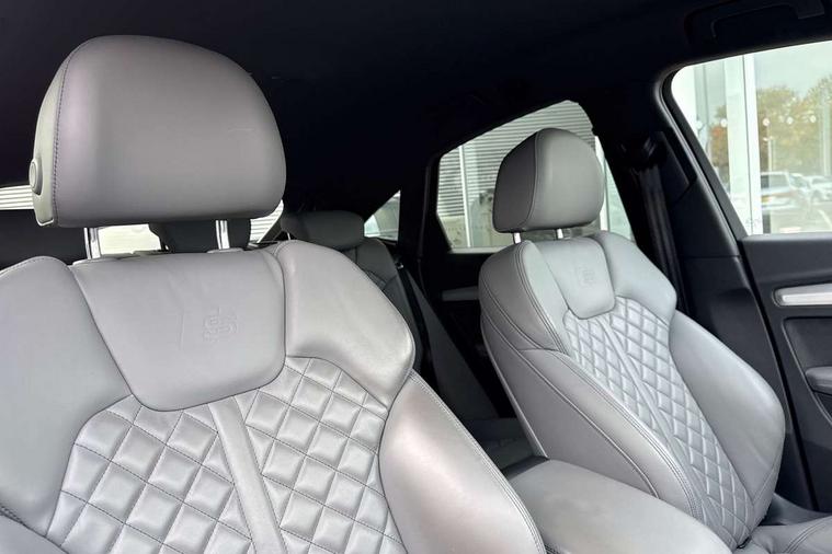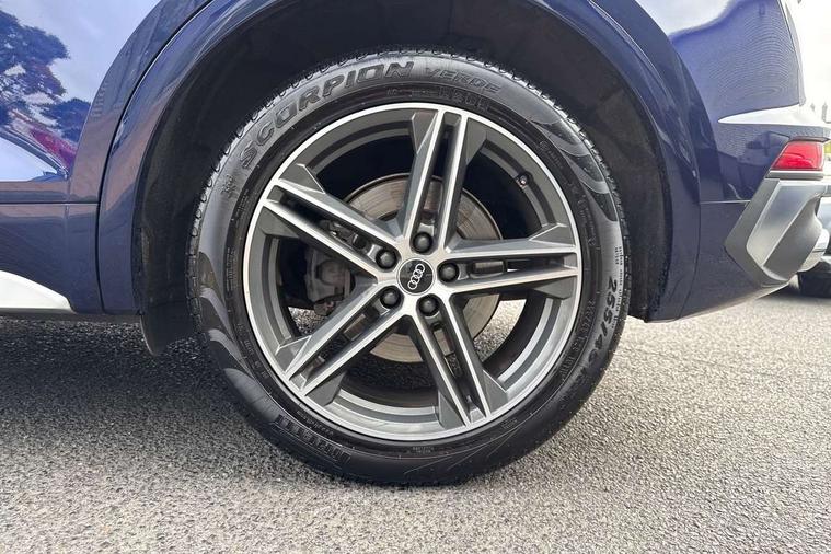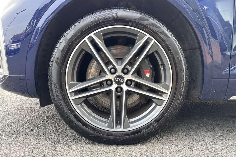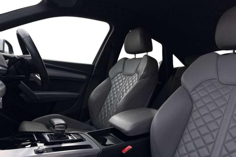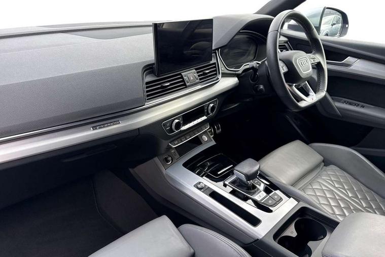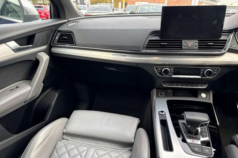 Audi connect safety and service (e-call), Audi connect with Amazon Alexa Integration, Audi drive select, Audi virtual cockpit plus with 12.3" screen and three different layout designs, Audi wireless smartphone interface, Automatic start-stop system with coasting functionality and efficiency programme, Bluetooth interface, Electro - mechanical power assisted steering, MMI navigation plus with 10.1" touch screen, Power tailgate, Reversing camera, Service interval indicator, Voice control system with Audi hotword activation "Hey Audi", 70 litre fuel tank and 24 litre AdBlue tank, Diesel particulate filter, Quattro on demand, S sport suspension, Audi sound system, DAB Digital radio, Acoustic windscreen, Aluminium door mirror housings, Aluminium roof rails, Audi beam, Auto dimming rear view mirror, Automatic headlights and windscreen wipers, Body colour underbody protection, Chrome plated exhaust trims, Door sills in Selenite silver, Electric adjustable/heated/folding door mirrors, Front and rear electric windows, Front radiator grille in honeycomb design, Headlight washers, Lower bumpers painted in contrast Manhattan grey, Rear chrome trim strip below lights, Rear privacy glass and rear side windows, Rear spoiler, Rear wiper, Roof bars, S air inlet in titanium black, S front and rear bumpers, S Line side skirts, S rear diffuser in body colour, 2 x USB charging port with aux input socket, 3 rear headrests, 4 way electric lumbar support for driver and front passenger, 40:20:40 split folding rear seat with rear centre armrest, Black cloth headlining, Comfort front centre armrest, Contrast stitching on seats, steering wheel and gear lever gaiter, Deluxe 3 zone electronic climate control, Fine Nappa leather upholstery with diamond pattern contrast stitching + front sport seats with S embossed logo, Front head restraints, Front/rear floor mats, Fully electrically adjustable seats, Gear lever in black leather, Heated front seats, Height/reach adjustable steering column, Illuminated door sill trims with S logo, ISOFIX child seat mounting and top tether, Massage function for front seats, Rear seat bench plus, Removable luggage compartment floor, Stainless steel pedals, Sunvisors with vanity mirrors, Trunk roller cover, Artificial leather pack - Q5, High gloss pack - Q5, LED interior light pack - Q5, 3 point seatbelts on all seats, 6 airbags - Driver, front passenger, curtain and side airbags, Electrically operated child locks on rear doors, Electromechanical parking brake, Electronic stabilisation control including ABS, ASR and EDL, Front passenger airbag deactivation, Hill descent control, Hill hold assist, Multi collision brake assist, Pop-up bonnet for pedestrian protection, Pre sense city, Seat belt force limiter, Seatbelt monitoring, Tyre pressure warning, Warning triangle and first aid kit, Anti theft alarm, Anti-theft wheel bolts, Keyless Go access/ignition system,