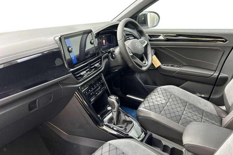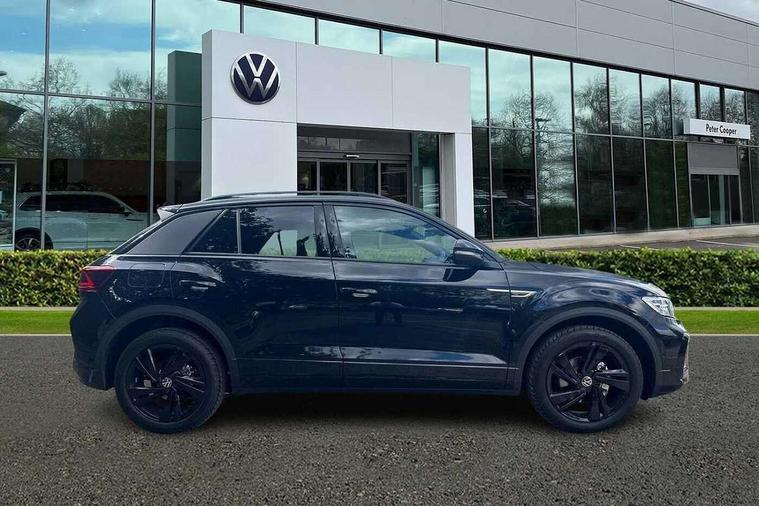 10.25" Digital cockpit pro, Advanced driver attention and drowsiness monitor, Emergency call service, Lane keeping system Lane Assist, Mobile phone interface, Modified key software - reduce switch off time for key status change to Long no motion, Online services, Park assist including front and rear parking sensors, Power assisted speed sensitive steering, Service interval indicator, Tailgate/trunk lid release from outside, Think blue trainer driver tips and journey analysis, Warning sound and light for front seatbelts unfastened, Wireless app connect, Battery regeneration during braking, Rear shock absorption chassis with increased ride height, Start/stop function with battery regeneration, DAB Digital radio, Diversity antenna for FM reception, Front and rear 6 speakers, Music playback - MP3, WMA and AAC files, Premium USB cable in choice of either Apple or Android smartphone compatibility, SD card slot, Simultaneous pairing of 2 compatible mobile devices, Title and cover art display, We Connect and We Connect Plus functionality, Auto dimming interior rear view mirror, Automatic hazard lights activation under emergency braking, Automatic headlight control with LED separate daytime running lights with coming/leaving home function, Dynamic cornering light, Electrically adjustable and heated door mirrors, Extended roof spoiler, Exterior mirrors aspherical on driver side, convex on front passenger side, External USB type C socket and charging sockets, Front windscreen wiper with intermittent wipe and 4 position delay, Heated rear window, Illuminated front grille, IQ LED matrix headlights, LED 3rd brake light, LED rear number plate lights, LED rear tail lights with dynamic turn signal, Light mode for poor weather, rain, fog or snow, Power windows with comfort operation and circuit breaker, R-Line design body coloured bumpers, Rain sensor, Rear exhaust tailpipe, Rear fog light on one side and reversing lights on both sides, Rear side wing doors, Rear wash/wipe with intermittent wipe setting, Remote electrically foldable door mirrors, puddle lights and reverse activated passenger's door mirror, 12V power socket in centre console, 3 rear head restraints, 3 seat bench in 2nd row, 4 load lashing points in luggage compartment, Air care climatronic air conditoning system with active combination filter and 2-zone temperature control, Artvelours cloth upholstery, Black roof lining, Chrome plated radiator grille inserts, air vent surrounds and light switch surrounds, Door and side trim panel with leatherette insert, Drawer under drivers seat, Driver seat height adjust, Driver's seat lumbar support, Front + rear carpet mats, Front centre armrest, Front comfort sports seats, Front cupholders x 2, Front footwell illumination, Front reading light, Front scuff plates with R Line logo, Front seat back storage pockets, Glove compartment door with light, Instrument lighting, white adjustable panel illumination, Interior ambient lighting and surround lighting, Interior light delay, Isofix child seat preparation, Leather gearshift handle, Leather wrapped multifunction steering wheel with paddle shift, Load-through provision with cup holder when folded down ('Unsplit rear seat bench, split folding backrest, with centre armrest), Luggage compartment lighting, Non-folding front passenger seat backrest, Passenger seat height adjuster, Passenger seat lumbar support, Single front passenger seat, Stainless steel pedals, Storage compartment in left and right luggage area, Storage compartment in rear doors, Storage compartments in driver and front passenger doors, Sunvisors with illuminated vanity mirrors, Variable boot floor, height adjustable and removable, Winter pack without heated windscreen washer jets - T-Roc, 3 point height adj front seatbelts + pretensioners, 3 point seatbelts in outer rear with ECE label, ABS, Child locks on rear doors, City emergency braking and pedestrian monitoring, Driver and front passenger airbag with front passenger airbag deactivation, Driver and front passenger safety-optimised head restraints, Drivers seatbelt reminder, Electronic parking brake, Electronic Stability Control (ESC) inc EDL (Electronic Differential Lock) and ASR (Traction Control), Front and rear passengers curtain airbag system including front side airbags, Front disc brakes, Hill start assist, Predictive pedestrian protection, Rear disc brakes, Two tone horn, Tyre pressure loss indicator, Volkswagen roadside assistance, Tool kit, Trims for alloy wheels, Tyre mobility kit including compressor and sealing foam,
