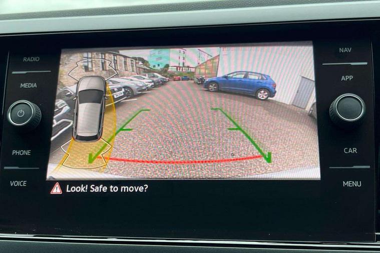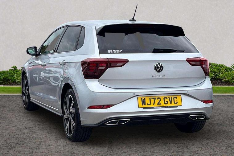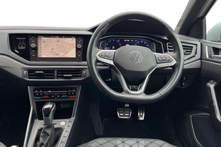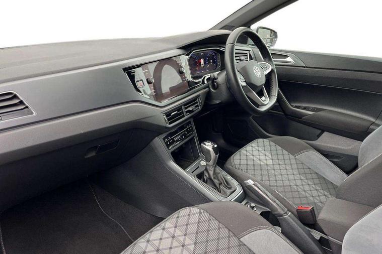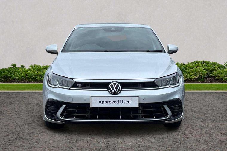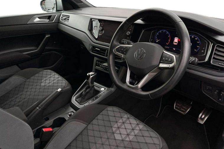 Adaptive cruise control with follow-to-stop and speed limiter, Bluetooth mobile phone interface, Digital Cockpit Pro with 10.25" Display, Driver alert system, Dynamic road sign display, Emergency call service, Power assisted speed sensitive steering, Preparation for We connect and We connect plus, Speedo and rev counter, electronic odometer, trip, service interval display and fuel gauge, Standard rear axle, Travel Assist - Lane keeping system and traffic jam assist, Travel assist including emergency assist, Trip computer, Warning signal and warning light for front and rear seatbelts not fastened, Washer fluid level indicator, Wireless app connect, Front wheel drive, Rear shock absorpion, Start-stop system with battery regeneration (recuperation - energy recovery during braking), DAB Digital radio, Diversity antenna for FM reception, Front and rear 6 speakers, Body colour bumpers, Body colour door handles, Body colour door mirrors, Electric front windows, Front scuff plates with R-Line logo, Heat insulating darkened glass in side and rear windows, Heat insulating glass windscreen, Power folding adjustable/heated exterior mirrors and front passenger exterior mirror lowering function, Rear electric windows, Rear fog light, Rear side wing doors, Rear tinted glass from B-pillar backwards approx 65% tinted, Rear windscreen washer and wiper with interval delay, Third brake light, 12V power socket in centre console, 2 USB-C ports in the front, 2 USB-C charging sockets on the center console in the rear, 3 rear head restraints, 60/40 split folding rear seat and rear seat bench not split, Air care climatronic air conditoning system with active combination filter and 2-zone temperature control, Black roof lining, Ceramique headliner, Chrome plated radiator grille inserts, air vent surrounds and light switch surrounds, Door and side trim panel, Driver and front passenger seat height adjustment, Driver/passenger sunvisors with illuminated vanity mirrors, Front + rear carpet mats, Front centre armrest, Front footwell illumination, Front seat backrest storage pockets, Front sports comfort seats, Handbrake lever handle in leather, Isofix child seat preparation easy-fit (for two outer rear seats, and front passenger seat) compatible with I-size, Karoso artvelours cloth upholstery, Leather trimmed gear knob, LED interior light with switch off delay and dimmer, 2 reading lights front and rear, Luggage compartment cover, Luggage compartment floor, Luggage compartment lighting, Lumbar adjustment for front seats, Single front passenger seat, Stainless steel pedals, Standard pedal cluster, Three spoke leather wrapped multifunction steering wheel with shifting paddles, Light and sight pack - Polo R-Line/Black Edition, 3 point height adj front seatbelts + pretensioners, 3x3 point rear seatbelts, ABS, Driver and front passenger airbag with front passenger airbag deactivation, Drivers and front passengers safety optimised head restraints, ESC (Electronic stability control) + EDL (Electronic Differntial lock) and ASR (Traction control), Extended and predictive pedestrian/ cyclist protection, Front curtain and side airbags with center airbag, Front/rear disc brakes, Hill hold control, Manual child lock in rear doors, Single tone horn, Tyre pressure loss indicator, Alarm with interior protection, Anti-theft alarm system with interior monitoring, backup horn, and towing protection, Anti-theft wheel bolts, Electronic engine immobiliser, Chrome applications on rotary light, mirror adjustment, window regulator switches, outlet with frame in black, Dark grey anodised matt decorative inserts in dash and front door panels, Low rolling resistance tyres,