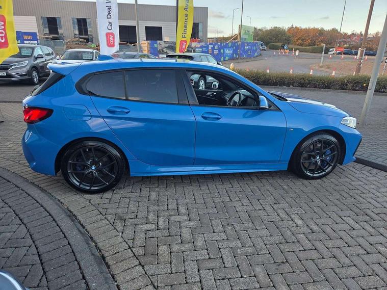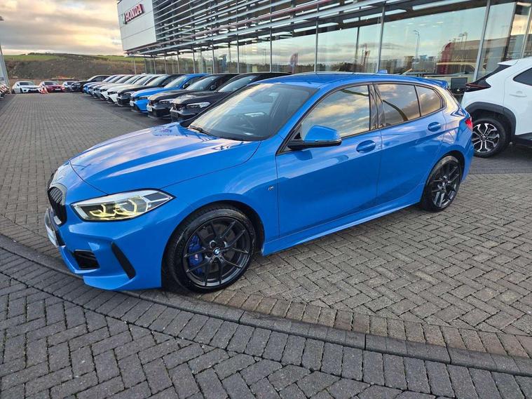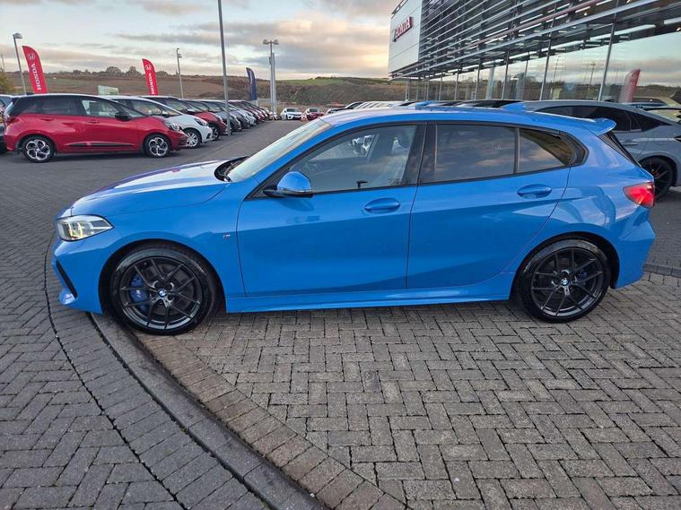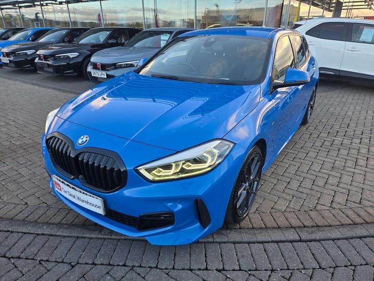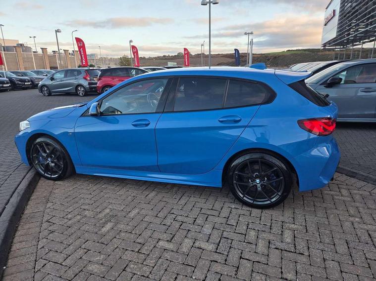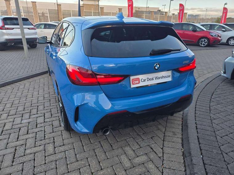 Active guard plus, Attentiveness assist, Bluetooth / WiFi interface for wireless connection of mobile terminal devices and audio streaming, BMW ConnectedDrive online services, BMW Teleservices, Check Control warning system for monitoring of lights and door/luggage compartment open warning, Cruise control with brake assist, Eco pro mode, Front axle single joint with specific axle kinematics to minimise drive influences on steering + provide increased rigidity agile driving behaviour, Integrated owners handbook, Lane departure warning system, Oil sensor for level and grade, On board computer, Optimum shift indicator, Personal Profile, Pull away assistant, Rigidly mounted rear subframe - Multi link construction with separate spring / damper configuration and excellent driving characteristics, Speed limit Info including no-overtaking indicator, Speed limiter, Aluminium lightweight construction, Anti roll bar front and rear, Balancer shaft, Double VANOS twin scroll turbocharging system, Drive Performance Control, Electronic differential lock, High precision injection, M sport suspension, Petrol Particulate Filter, Twin tube gas filled shock absorbers with degressive characteristic curve, VALVETRONIC engine management, DAB Digital radio, Auto dimming rear view mirror, Automatic headlight beam throw control, Automatic windscreen wipers and automatic headlight, Body colour door handles, Body colour mirror caps, Body colour roof trims, Chrome 'M' logo side designation, Chrome exhaust twin tailpipes round 90mm in left, Chrome kidney grille frame with Satin Aluminium struts, Direction indicator side lights in exterior mirrors, Fading support, Folding side mirrors with auto dimming/folding wing mirrors with auto dimming, Follow me home headlights, Front and rear bumper system with replaceable deformation elements, Front and rear electric windows with open and close fingertip control, anti trap facility and comfort closing, Front door sill finishers in black plastic with M designation in metallic look, Green tinted heat protection glazing, Heated, electrically adjustable exterior mirror aspheric on driver side, convex on passenger side, High gloss shadowline window frame, Recess cover mirror frames and B/C pillar embelisher trim, High level third brake light, Integrated front windscreen with washer jets, LED daytime running lights, LED eyebrow turn indicators, LED front fog lights, Lightweight engineering, Matt black air guide grilles, Matt black wheel arch trim, Model designation on electric bootlid, Nearside reverse light in rear light cluster, Preparation for high beam assistant, Rear fog lights, Rear side wing doors, Rear window wiper, Shark fin antenna, Trailer stabilisation logic, Visible VIN plate, Welcome lighting, 12V power socket in front centre console with blanking plug, 3 rear seat head restraints, 3 seat bench in 2nd row, 3 spoke sports leather steering wheel with black leather and stitching, pearl chrome decorative finish, specific M Badge, Ambient interior lighting, Anthracite headlining, Child seat ISOFIX attachment for two outer rear seats and front passenger seat with anchorage points, Conditioned based service, Driver and front passenger seat heating, Floor mats in anthracite velour with contrasting colour seam to match contrast stitching on instrument panel, Folding rear clothes hook, Four grab handles integrated in roof lining, Front and rear door pockets with bottle holders, Front and rear side armrest integrated into door trim, Front armrest, Front sports seats, Glove compartment, Height adjustable front head restraints, Luggage compartment for bag hooks on left and right, foldable luggage compartment liner and two lashing eyelets, Manual adjust steering wheel, Multi-function controls for steering wheel, Single front passenger seat, Storage compartment in centre console, Sun visors with vanity mirrors and insert tab, Two front centre console cupholders, Two zone automatic air conditioning, Additional interior lighting pack - 1 Series, Additional storage compartment pack with code 493 -1 series, BMW live cockpit professional pack- 1 Series, Connected pack professional - 1 Series, Interior lights pack - 1 Series, M Sport exterior styling aerodynamics pack - 1 Series, 2 tone horn, 3 point seatbelts on all seats, front pyrotechnic belt tensioners, stopper and belt force limiters, rear coded belt buckles, Airbags - Front driver/passenger, front and rear curtain head protection, front side, manual deactivation of front passenger airbag, Anti lock braking system (ABS) with brake assist, BMW emergency call, Brake drying, Braking readiness, Child proof locking system in rear door, City braking function, Comfort modes, Cornering brake control, Crash sensor activating central locking release, hazard warning lights, fuel cut off, interior lighting + activation of safety battery terminal clamp, Driver and front passenger seat belt security check, Dynamic stability control + (DSC+), Dynamic Traction Control - DTC, Electrically operated hand brake including automatic hold function, Front and rear disc brakes, Seatbelt warning, Side impact protection, Tyre pressure monitoring system, Warning triangle and first aid kit, Central locking switch for all doors, fuel filler cap and luggage compartment, Deadlocking function system to all doors, Drive away locking system on all doors and luggage compartment with de-activated in iDrive settings, Locking wheel bolts, Remote control with integrated key with High-gloss Black inlay and M designation and 1 button for open/ close lock, window, open luggage compartment, Start/stop button illuminated in centre console with keyless engine start and auto start stop deactivation button, Thatcham Cat.1 alarm and immobiliser, Wheel slip limitation close to the actuator (ARB), Contrast stitching on instrument panel, Electrically powered 12V compressor, Reduced rolling resistance tyres,