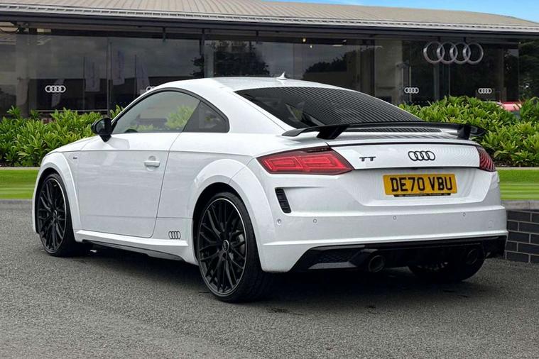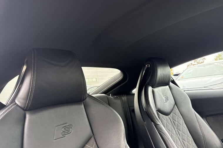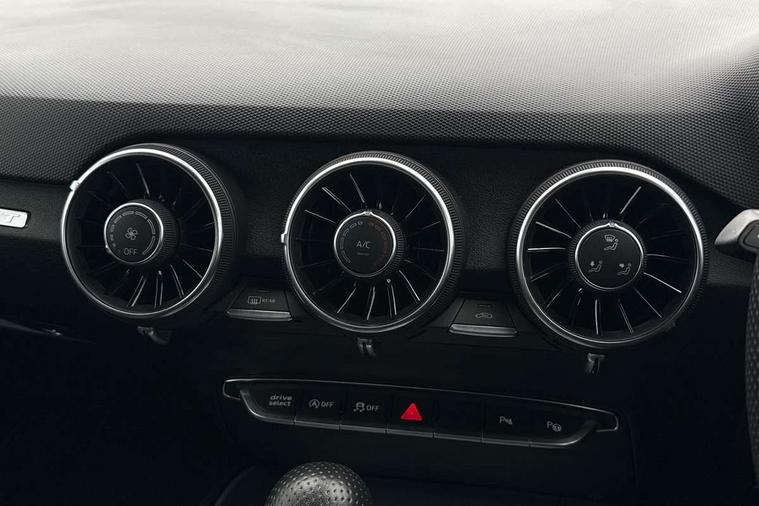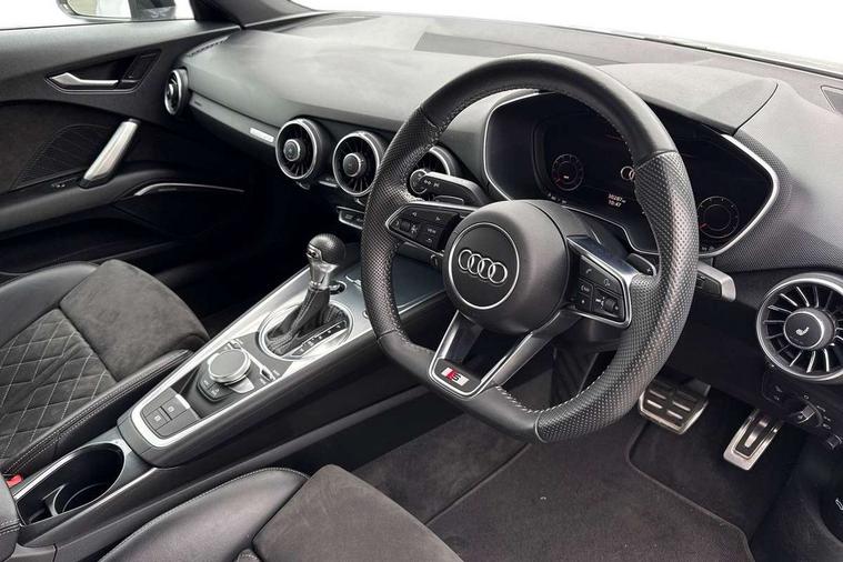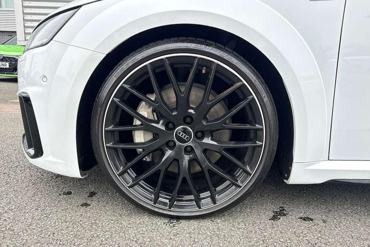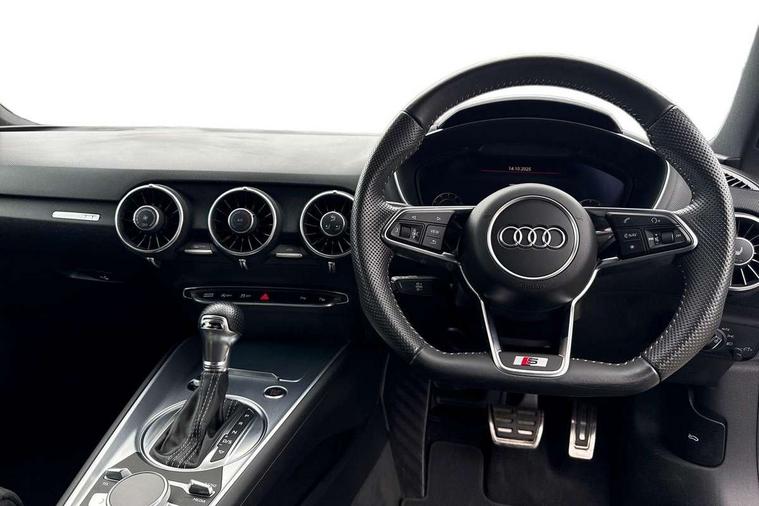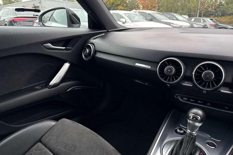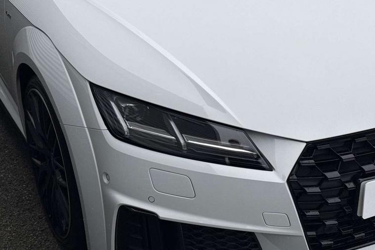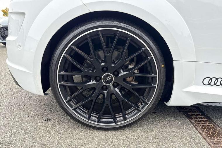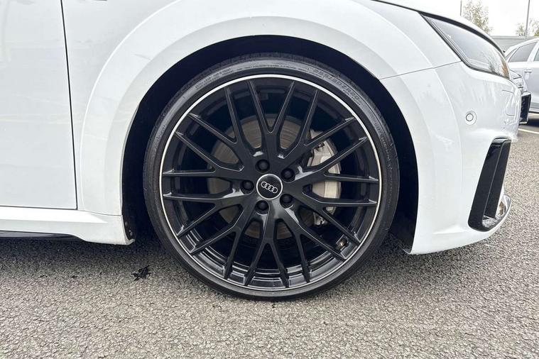 Audi drive select with 4 Pre configured modes, Audi smartphone interface, Audi virtual cockpit - 12.3" high-resolution LCD display with fully customisable instrument cluster, Cruise control + speed limiter, MMI touch panel, Mobile phone preparation with bluetooth interface, Progressive power assisted steering, Service interval indicator, Start/Stop system with energy recuperation, TP memo, S line sports suspension, AM/FM radio, Bluetooth audio streaming, DAB Digital radio, MMI Radio with CD player and SD/XC card slot, Auto dimming rear view mirror, Auto headlight range control, Black chrome tailpipe, Black door mirrors, Dark privacy glass from B-pillar backwards, Electric folding door mirrors, Electric front windows, Front fog lights, Green tinted heat insulating glass, LED daytime running lights, LED headlights with LED rear lights + dynamic rear indicators, Light and rain sensors, Sunband for windscreen, 12V socket, 3 spoke flat bottomed high multi-function leather sport steering wheel with gearshift paddles, 4 way electric lumbar support for driver and front passenger, Black headlining, Extended aluminium look with stainless steel pedals, Front centre armrest, Front super sports seats, Heated front seats, Height adjustable driver's seat, Height adjustable front head restraints, Height/reach adjust steering wheel, ISOFIX child seat mounting for front passenger seat with airbag deactivation, Perforated leather gearknob in black, Rear head restraints, Rear top tether child seat ISOFIX attachment, Split folding rear seat, Tool kit, Black styling pack - TT, Non smoking pack - TT/TT RS, 3 point front seat belts, ABS, ASR traction control, Brake energy regeneration, Curtain airbags, Driver and front passenger airbag with front passenger airbag deactivation, EDL traction control, Electromechanical parking brake, ESP, First aid kit, Front side airbags, Head airbags, Hill hold assist, Seatbelt warning, Tyre pressure warning, Warning triangle, Anti theft alarm, Anti theft wheel bolts, Immobiliser, Keyless Go, Remote central locking, Matt brushed aluminium inlays, Tyre repair kit,