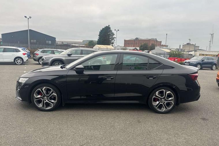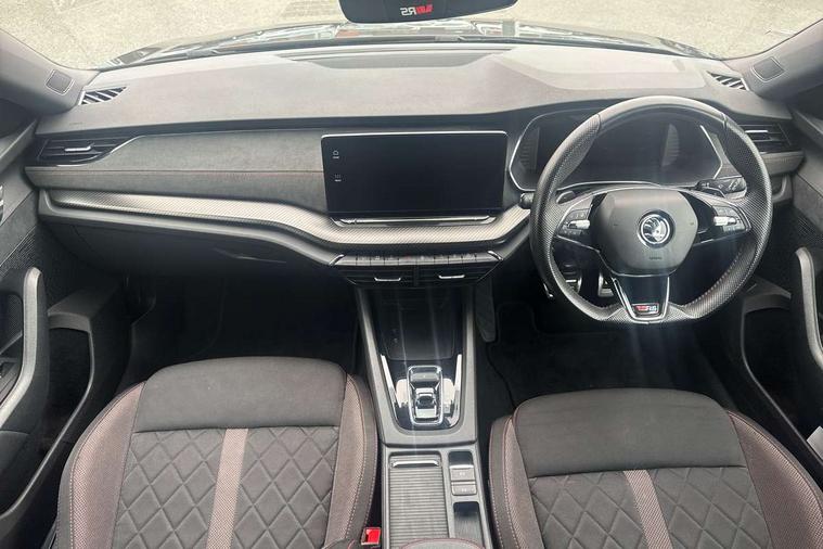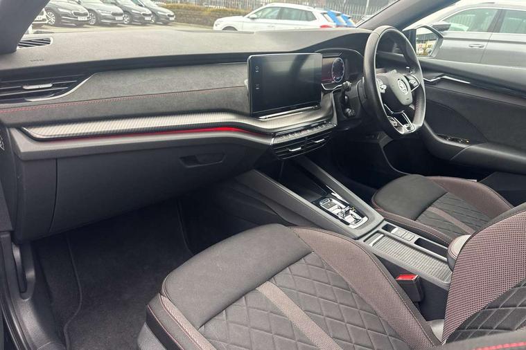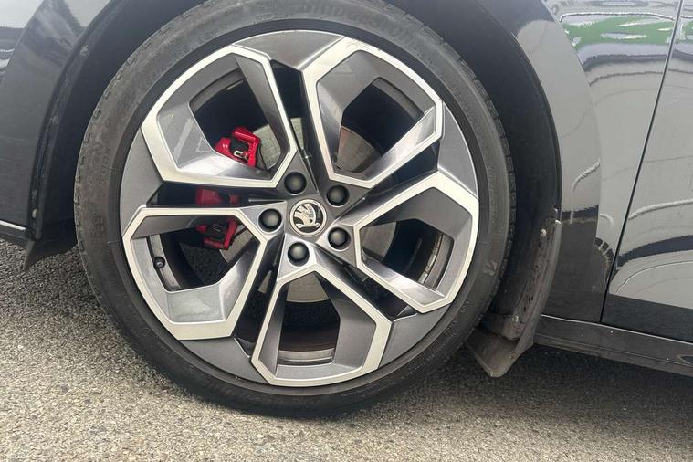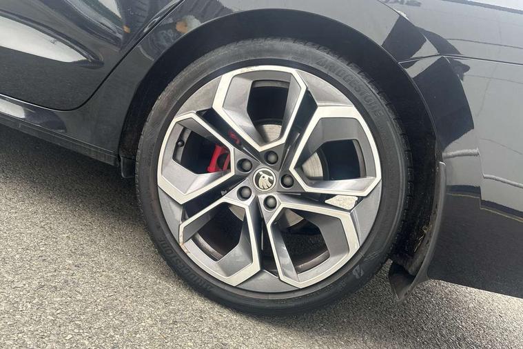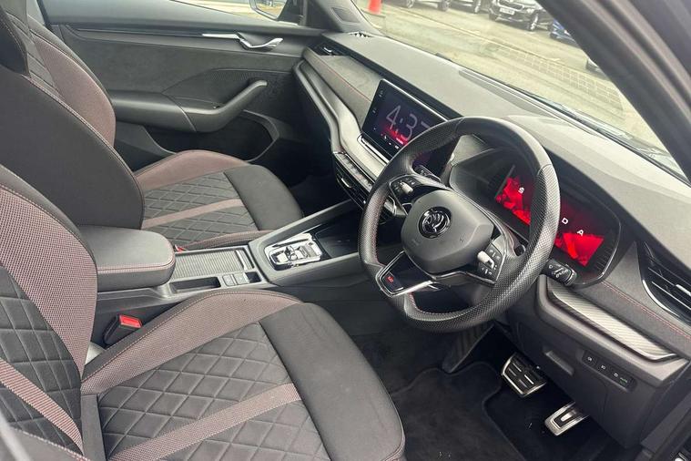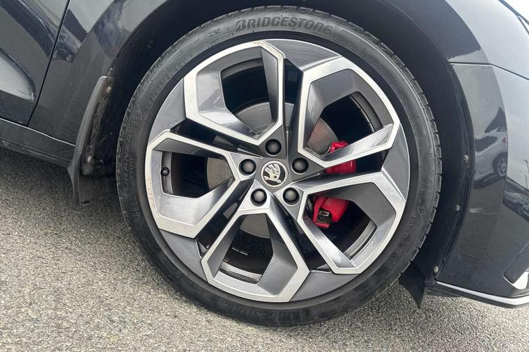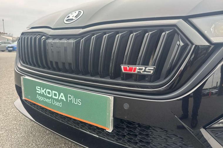 1x USB Type C port in rear view mirror (charging only), 2x USB Type C ports in rear of front centre armrest (charging only), Bluetooth system, Columbus satellite navigation with 10" touchscreen display, Driver fatigue sensor, eCall emergency system, Front and rear parking sensors with manoeuvre assist, Front assist system, Progressive dynamic steering, Smartlink (includes android auto and mirrorlink), Speed limiter, Turn Assist, Virtual Cockpit - 10.25" digital display, Voice control system, Wireless SmartLink for Apple Car Play, Front and rear stabilizers, 2x USB Type C ports (for charging and data transfer), 8 Speakers, DAB Digital radio, Aero front windscreen wipers with intermittent function, Auto dimming rear view mirror, Body colour door handles, Chrome exhaust tailpipes, Door sills with vRS logo, Electric front and rear windows, Exterior gloss black sports styling including front grille, side strip, window surrounds, door mirror and badging, Full LED Matrix headlights with AFS and cornering front fog lights, Headlight washers, Heated rear windscreen, High level third brake light, Ice scraper in fuel cap, LED daytime running lights, Rain and light sensors, Rear fog light on one side, Rear privacy glass, Rear side wing doors, vRS bumpers and lip spoiler, 3 rear headrests, 3 seat bench in 2nd row, 4 foldable roof handles, Aluminium pedals, Black headlining, Black microsuede padded dash panel with red contrast stitching, Chrome inner door handles, Front centre armrest, Front head restraints, Heated front seats, Illuminated glovebox, Leather trimmed gearshift lever, Luggage compartment lighting x1 light, Mechanical rear seat release, Parcel shelf - folding, Single front passenger seat, Sunglasses storage, Textile floor mat set, Three spoke leather sports multifunction steering wheel with paddles, Ticket holder, Umbrella in door panel, Unsplit rear bench seat and split folding backrest, LED interior light pack - Octavia, 3 point front/outer rear seatbelts+pre-tensioners, Alarm with interior monitoring, tilt sensor and back up horn, Automatic door unlocking in case of crash, Automatic fuel cut off in case of crash, Automatic warning lights in case of emergency braking, Curtain airbags and front side airbags, Driver and front passenger airbags, Drivers knee airbag, Electronic parking brake, Emergency call and proactive services, ESC including ABS, EBV, MSR, ASR, EDS, HBA, DSR, Front and rear disc brakes, Front central airbag, Hill hold control, Hill start assist, ISOFIX on front passenger seat and outer rear seats, Manual rear child locks, Passenger airbag deactivate switch, Red brake calipers, Two tone horn, Tyre pressure monitor, Visual and acoustic seat belt reminder, Warning reflectors in front door, Door locks with immobiliser, Keyless entry and start/stop including rear doors, Remote central locking, Carbon optic decorative inserts, Gloss black air vent surrounds, 19" Altair anthracite alloy wheels,