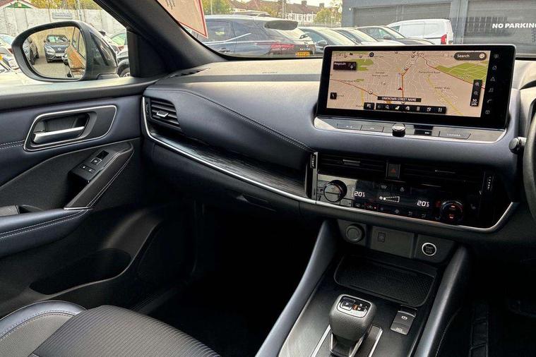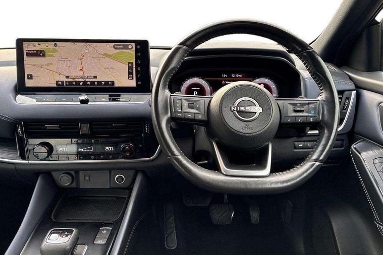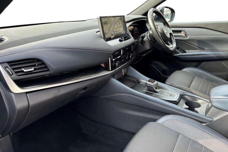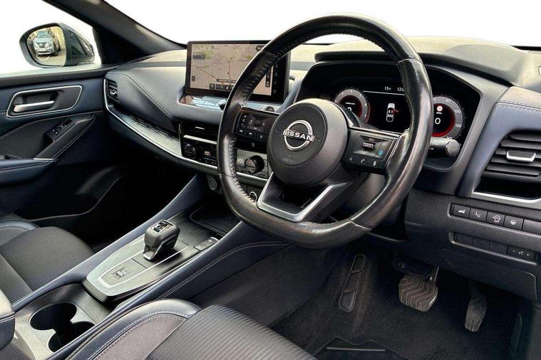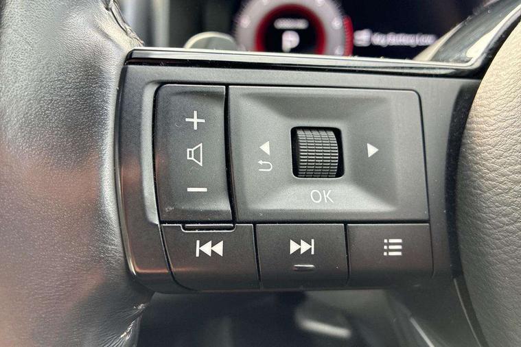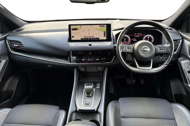 Advanced windscreen head up display, Android auto/Apple CarPlay (Wired), Blind spot warning, Drive modes (sport, normal, eco), Electric speed sensitive power steering, Emergency and breakdown call, Front and rear parking sensors, Full Digital 12.3" TFT Digital Combimeter, Google maps services - search, weather, 3D maps and Google street view, Hands free power tailgate, Idle stop/start system, Intelligent around view monitor, Intelligent Cruise control (ICC), Intelligent driver alert system, Intelligent forward collision warning, Intelligent lane intervention, Lane departure prevention, Lane departure warning system, Lane keep assist, Moving object detection, Nissan connect 12.3 inch touchscreen infotainment system, Nissan connect navigation, ProPilot, Push button starter, Rear cross traffic alert, Rear view camera, Remote control services - door locks, lights, horn and car locator, Telematics - notifications and connectivity services, TomTom live traffic services, Traffic jam pilot, Traffic sign recognition with legal speed adjustment, Trip computer, Virtual personal assistant and firmware over the air capability, Wireless apple carplay, Wireless charging pad, 6 speakers, AM/FM audio system with DAB, Bluetooth audio streaming, Front USB connections (Type-A and Type-C), Rear USB charging only ports (Type-A and Type-C), Auto dimming rear view mirror, Auto rear wiper when reversing, Automatic hazard signal with emergency stop signal, Body colour mirror caps, Body coloured door handles, Bodyside mouldings, Chrome side window finisher, Door handle with button, Electric auto folding door mirrors, Electrically adjustable and heated door mirrors with LED turn indicator, Follow me home headlights, Front and rear LED turning signals, Headlights auto levelling system, Intelligent auto headlights, LED daytime running lights, LED headlights with adaptive driving beam, LED rear lights, One touch front and rear electric windows with remote opening and closing, Partially body coloured bumpers, Privacy glass, Rear bumper with graphite insert, Rear reversing light (bulb lighting), Rear roof spoiler, Rear side wing doors, Rear styling plate, Shark fin antenna, Splash free rain sensing wipers, Super UV and infrared cut glass, Thermaclear heated windscreen, Three blink turn signal, 12v power socket in dashboard and luggage, 2x Rear coat hooks, 3 bench rear seats in 2nd row, 3 rear headrests, 4 folding assist grip, 6 Luggage hooks - 4 on floor, 2 on side, 60/40 split folding rear seat bench, Ambient lighting around centre console, Ambient lighting in front doors, Centre console storage tray, Chrome interior door handles, Cloth/syntech leather monoform upholstery, Dark black/blueish PVC wrapping, Dark headlining, Driver and front passenger sunvisors with illuminated vanity mirrors, Driver seat back pocket, Dual zone automatic climate control with pollen filter, Electrically adjustable driver seat, Electrically adjustable lumbar support for driver, Front and rear door storage, Front centre console and armrest, Front cupholders x 2, Front door with bottle holders, Glovebox with light, Hard trunk cover, Heated front seats, Heated steering wheel, Height adjustable driver's seat, Height adjustable front headrests, Height adjustable passenger seat, Leather steering wheel, Luggage board system, Luggage space lighting, Manual lumbar support on passenger seat, Manually adjustable passenger (slide recline + lifter), Multifunction steering wheel, Passenger seat back pocket, Rear armrest with 2 cupholders, Rear door bottle holders, Single front passenger seat, Soft PVC kneepad, Steering wheel gearshift paddles, Steering wheel switches, Tilt/telescopic adjustable steering wheel, Two rear isofix child seat anchorage points with top tether, Welcome light and doors with console tray ambient lighting, Glass roof pack with roof rails - Qashqai, 3x3 point rear seatbelt pretensioners + load limiters, ABS with EBD and brake assist, Active brake limited slip, Auto hold function, Child locks on rear doors, Curtain and front side, far side airbags, Driver and passenger airbags, Driver, passenger and 2nd row rear seat belt reminder, Electronic parking brake, Front seatbelt pretensioners + load limiters, Height adjustable front seatbelts, Hill start assist, Intelligent blind spot intervention, Intelligent front emergency braking with pedestrian, cyclist recognition and junction assist, Intelligent rear automatic braking, Tyre pressure monitoring system, Vehicle dynamic control, Capless fuel filler, Engine immobiliser, Intelligent Key, Remote central door locking with deadlocking, Thatcham Cat.1 alarm, Interior instrumental panel C finisher, 19" Alloy wheels, Tyre puncture repair kit,