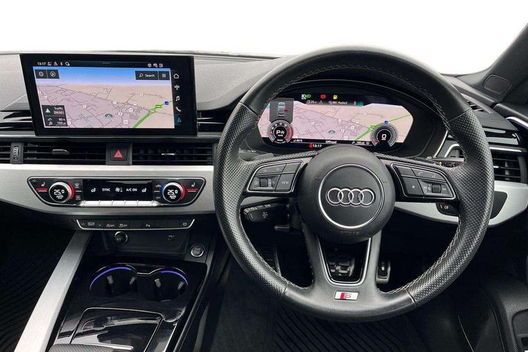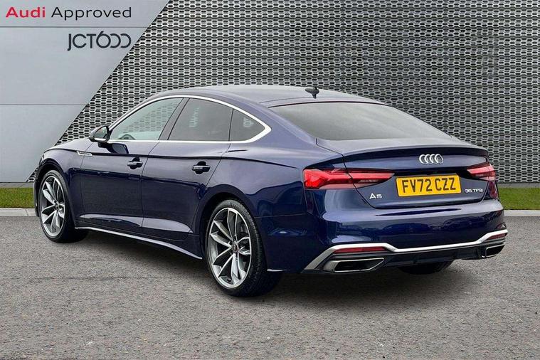 Audi connect safety and service (e-call), Audi connect with Amazon Alexa Integration, Audi drive select (Auto, Comfort, Dynamic and Individual), Audi parking system plus with front and rear sensors, Audi smartphone interface, Audi virtual cockpit - 12.3" full colour digital instrument cluster, vehicle/engine speed, Radio/media information+Driver assistance systems, Automatic start-stop system with coasting functionality and efficiency programme, Bluetooth interface, Electro-mechanical power steering, Email, calendar and text messages displayed via MMI, MMI nav+ with MMI touch - 10.1" high resolution MMI display, touch sensitive, 3D map, route/country info, dynamic route guide, personal route assist, Power operated tailgate, Rear view camera, Service interval indicator, Voice control system, Sports suspension lowered by 23mm, 8 passive loudspeakers, CD player, DAB digital radio reception, Two additional USB ports for rear passenger in rear centre console, Two SDXC card slots, Audi matrix LED headlights with LED rear lights + dynamic front and rear indicators, Auto dimming door mirrors, Auto dimming rear view mirror, Body colour bumpers, Body colour door handles, Body colour front spoiler lip, Body colour side sill trim, Body coloured door mirrors, Electric adjustable heated door mirrors, Electric folding door mirrors, Electric front windows, Front fog lights, Honeycomb structure radiator grille in grained matt black, Kerb-view function for passenger side, LED daytime running lights, LED side indicator lights integrated into door mirrors, LED third brake light, Matt aluminium silver tailpipe trim, Privacy glass, Rain and light sensors, Rear side wing doors, S line badges on front wings, S line front and rear bumpers with side skirts, S Line rear diffuser in matt titanium black with trim strip in matt aluminium silver, Side air inlets in grained matt black with matt aluminium silver inlay, Variable front intermittent wipers, Windscreen with acoustic glazing, 3 seat bench in 2nd row, 4 way electric lumbar support for driver and front passenger, 40/20/40 split folding 3 seater rear bench seat, Adjustable steering column, Black cloth headlining, Black perforated leather gearknob, Contrast stitching on seats, steering wheel and gear lever gaiter, Deluxe 3 zone electronic climate control, Front centre armrest, Front head restraints, Front/rear floor mats, Heated front seats, Illuminated door sill trim with S logo, ISOFIX child seat mounting and top tether, Luggage compartment mat, Manual seat adjustment, Rear centre armrest, Rear headrests, Single front passenger seat, Stainless steel pedals, Sunvisors with vanity mirrors, LED interior light pack - A5/RS5, 3x3 point rear seatbelts, 6 airbags - Driver, front passenger, curtain and side airbags, Electromechanical parking brake, Electronic Stabilisation Control (ESC) including ABS, ASR and EDL, Front passenger airbag deactivation, Height adjustable front seatbelts, Hill hold assist, Manual child lock in rear doors, Multi collision brake assist, Pop-up bonnet for pedestrian protection, Pre sense city, Seatbelt monitoring, Tyre pressure warning, Variable restraint system, Warning triangle and first aid kit, Anti theft alarm system, Anti theft wheel bolts, Immobiliser, Keyless Go, Remote central locking, Matt brushed aluminium inlays, Tool kit, Tyre repair kit,