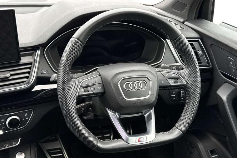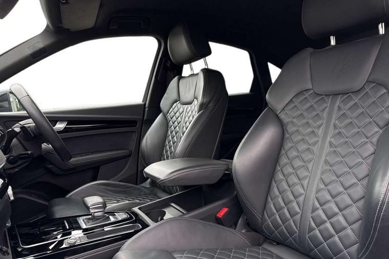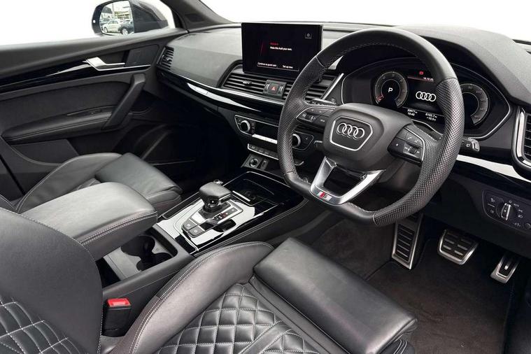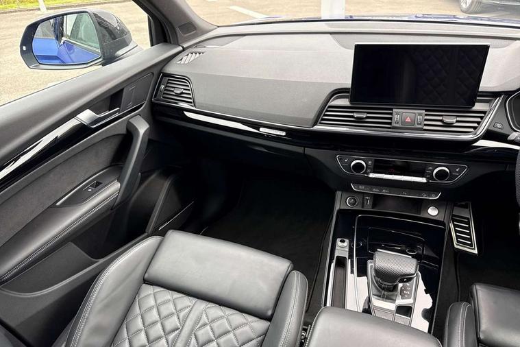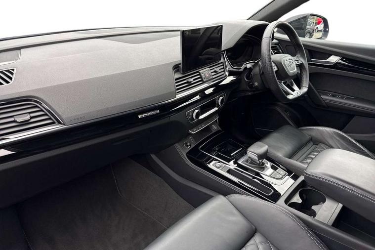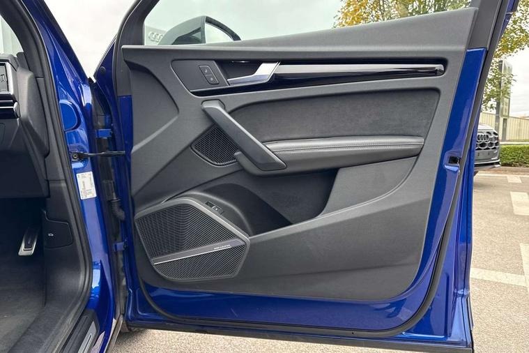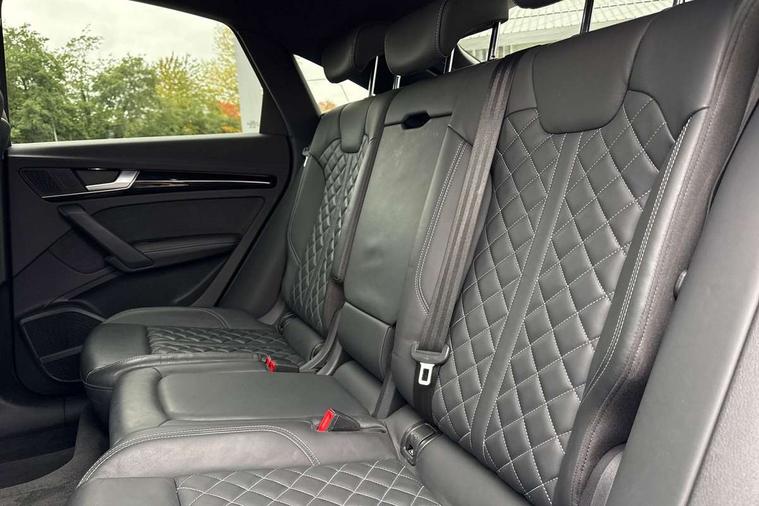 Audi connect safety and service (e-call), Audi connect with Amazon Alexa Integration, Audi drive select, Audi virtual cockpit plus with 12.3" screen and three different layout designs, Audi wireless smartphone interface, Automatic start-stop system with coasting functionality and efficiency programme, Bluetooth interface, Electro - mechanical power assisted steering, MMI navigation plus with 10.1" touch screen, Power tailgate, Reversing camera, Service interval indicator, Voice control system with Audi hotword activation "Hey Audi", Diesel particulate filter, Quattro on demand, S line sports suspension, 2 x USB charging port with aux input socket, DAB Digital radio, Acoustic windscreen, Audi beam with Audi rings logo, Audi matrix LED headlights with dynamic front and rear indicators, Audi rings at front and rear in black, Audi rings decal on rear doors, Auto dimming door mirrors, Auto dimming rear view mirror, Automatic headlights and windscreen wipers, Black door mirrors, Black roof rails, Body colour underbody protection, Chrome plated exhaust trims, Daytime running lights, Door sills in Selenite silver, Electric adjustable/heated/folding door mirrors, Front air inlet surrounds in aluminium, Front and rear electric windows, Headlight washers, High gloss black B pillar trims and triangular rear door trim, High level LED brake light, Rear chrome trim strip below lights, Rear privacy glass and rear side windows, Rear side wing doors, Rear spoiler, Rear wiper, Roof bars, Without model and engine badging at rear, 3 rear headrests, 4 way electric lumbar support for driver and front passenger, 40:20:40 split folding 3 rear bench seat in 2nd row with rear centre armrest, Black cloth headlining, Comfort front centre armrest, Contrast stitching on seats, steering wheel and gear lever gaiter, Deluxe 3 zone electronic climate control, Electrically adjustable front seats, Fine Nappa leather upholstery with diamond pattern contrast stitching + front sport seats with S embossed logo, Front head restraints, Front/rear floor mats, Gear lever in black leather, Heated front seats, Height/reach adjustable steering column, Illuminated door sill trims with S logo, ISOFIX child seat mounting and top tether, Rear seat bench plus, Removable luggage compartment floor, Single front passenger seat, Stainless steel pedals, Sunvisors with vanity mirrors, Trunk roller cover, Artificial leather pack - Q5, Black styling package - Q5 Edition 1, Extended LED Interior multi coloured Lighting Pack - Q5, 3 point seatbelts on all seats, 6 airbags - Driver, front passenger, curtain and side airbags, Electrically operated child locks on rear doors, Electromechanical parking brake, Electronic stabilisation control including ABS, ASR and EDL, Front and rear brake calipers painted in red, Front passenger airbag deactivation, Hill descent control, Hill hold assist, Multi collision brake assist, Pop-up bonnet for pedestrian protection, Pre sense city, Seat belt force limiter, Seatbelt monitoring, Tyre pressure warning, Warning triangle and first aid kit, Anti theft alarm, Anti-theft wheel bolts, Keyless Go access/ignition system, Remote central locking, Piano black finish inlay,