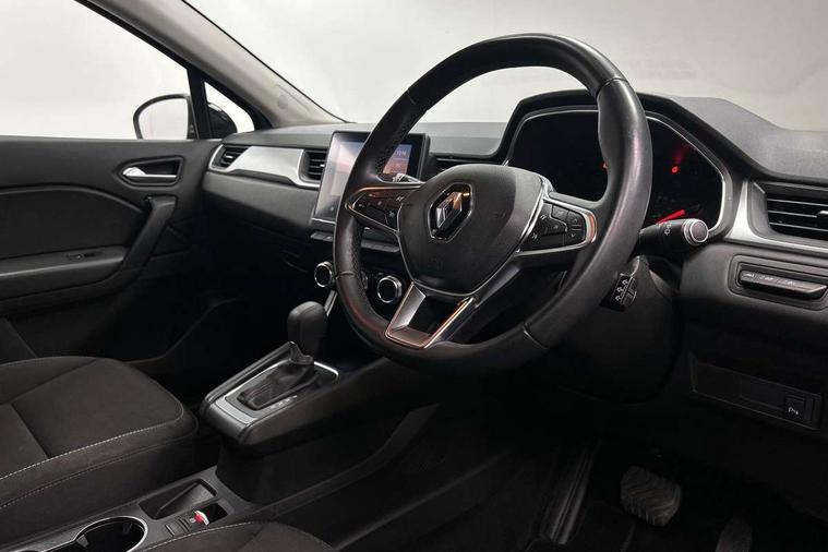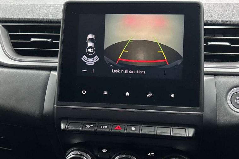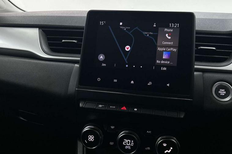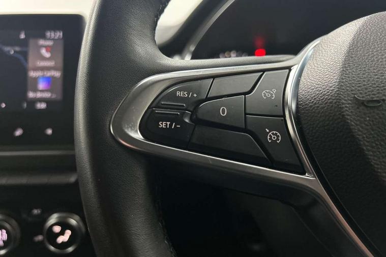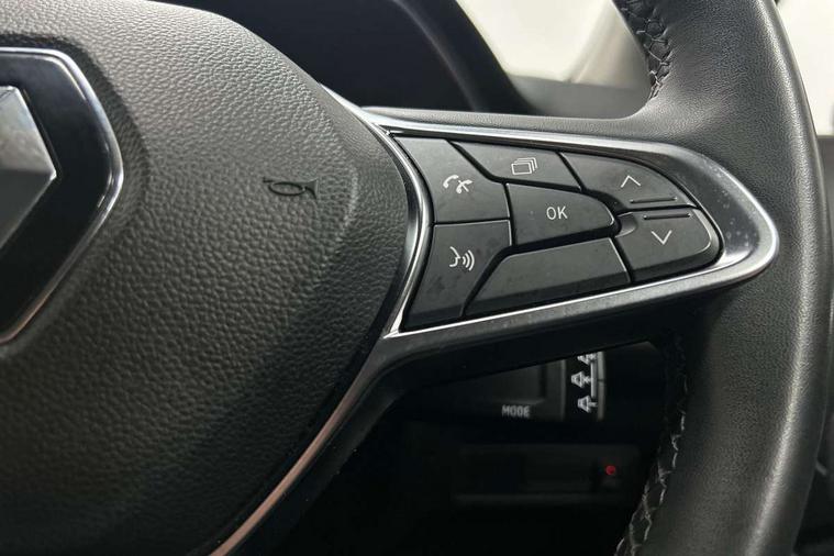 4.2" TFT Driver information display, Cruise control + speed limiter, eCall emergency call system, Eco mode, Gear change indicator, Lane departure warning system, Lane keep assist, Renault automatic emergency assist, Traffic sign recognition, Trip computer, Variable assistance power steering, EasyLink Nav 7" touchscreen, 4x20W amp, FM DAB, sound auditorium, 2xUSB, 1xJack, Bluetooth, smartphone integration plus, Apple carplay/Android auto, Automatic front wipers with rain sensors, Automatic headlights, Body colour door handles, Body coloured bumpers, Body coloured door mirrors, Electric adjustable/heated/folding door mirrors, Electric front windows + one touch + anti-pinch, Electric rear windows, Extra tinted glass in rear windows and tailgate, Full LED front and rear headlamps integrating daytime running lights at the front and rear, Gloss black side door protection with chrome effect, LED front fog lights, Rear fog lights, Rear wiper, Roof bars, Variable speed on front windscreen wipers, 12V Accessory socket, 3 rear headrests, 5.2L front glovebox, 60/40 split folding rear seat bench, Automatic climate control with one touch demist function, Centre console storage tray, Cloth upholstery, Front head restraints, Heating system with pollen filter, Height adjustable driver's seat, Height/reach adjust steering wheel, ISOFIX child seat fixing points on rear outermost seats, Middle console with armrest and storage, Rear air vents, Synthetic leather steering wheel, 3 rear seatbelts, ABS+EBA, AEBS, Distance warning alert, Driver and front passenger, side, head and curtain airbags, Driver height adjustable seat belt, Electric parking brake, Electronic stability control, Front and rear no seatbelt warning sound, Front dash warning indicator in case of heavy braking, Front driver and passenger side airbag deactivation, Hill start assist, Rear door and window child locking function for rear door, Tyre pressure warning light, Anti drill door locks and locking fuel cap, Deadlocking system, Hands free keycard with push button and start/stop function, RAID (Renault Anti-Intruder Device) automatic door locking, Remote central locking with thatcham approved immobiliser, Black soft touch dashboard with black gloss air vent surrounds,