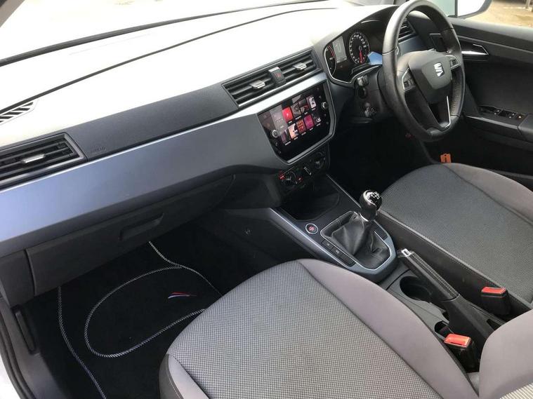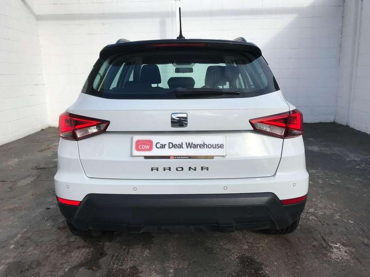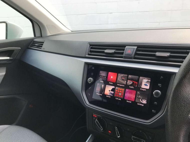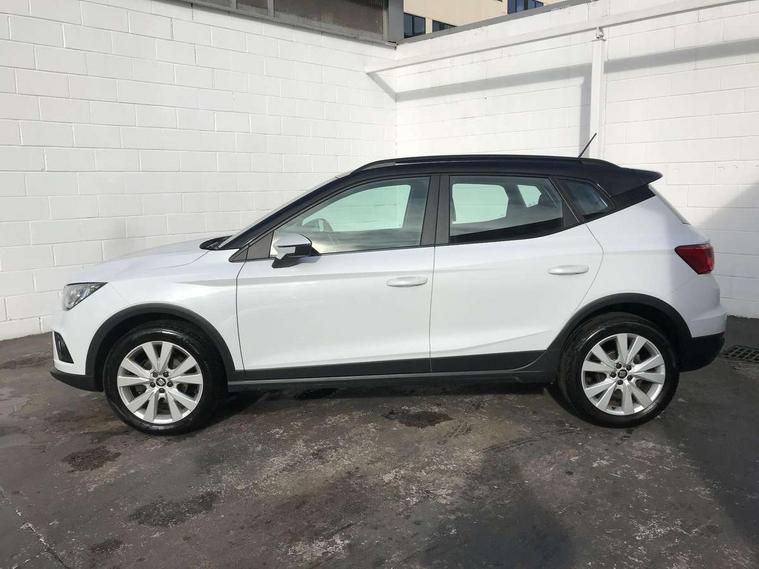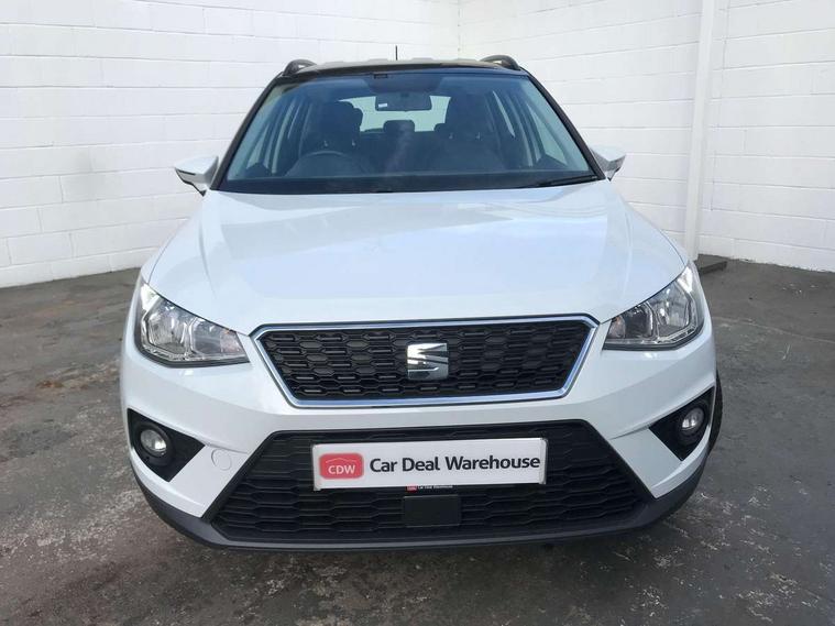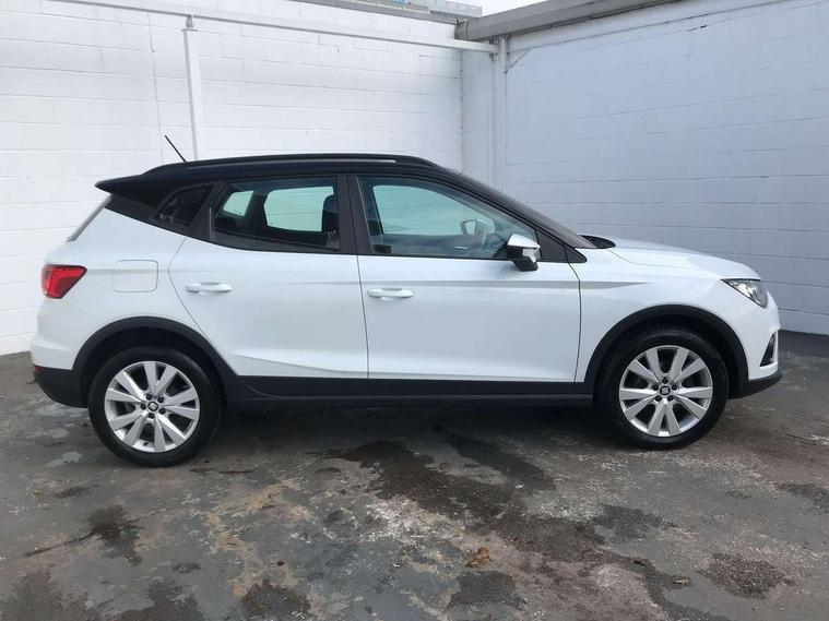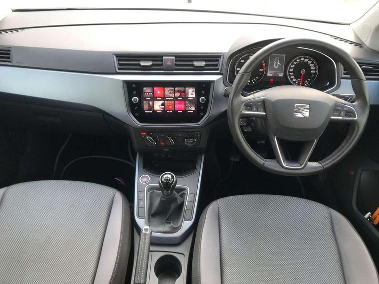 'Lights On' Reminder warning buzzer, Adaptive cruise control, Digital clock, Electric speed sensitive power steering, Front assistant collision mitigation, Full Link Smartphone Integration with Mirror Link, Apple Car Play, Google Android Auto, Low fuel warning light, Outside temperature display, Rear parking sensor, RPM counter, Trip computer, Comfort suspension, 6 speakers, Beats audio system, Bluetooth interface for hands free and audio streaming, DAB Digital radio, SEAT USB media cable, Steering wheel mounted audio controls, Anti theft roof antenna, Automatic activation of hazard warning lights, Automatic headlights, Black roof rails, Black window surrounds, Body coloured bumpers, Body coloured door handle inserts, Chrome grille surround, Electric adjustable door mirrors, Electric front/rear windows with one touch/auto up/down, Electric headlight adjustment, Front fog lights with static cornering function, Halogen headlights, Hidden exhaust pipe, LED daytime running lights, LED licence plate lighting, LED tail lights, Rear fog lights, Rear window wash/wipe, Visible VIN plate, Windshield wiper with intermittent control and potentiometer, 2 cupholders, 3 rear height adjustable headrests, 60/40 split folding rear seat, Active head restraints, Air conditioning, Ambient interior lighting, Card holder, Cloth upholstery, Double boot floor, Driver and passenger sunvisors, Driver/front passenger seat height adjustment, Dust/pollen filter, Footwell ambient lighting, Front courtesy lights, Front reading light, Gear shift indicator, Height/reach adjustable steering column, Illuminated boot, Instrument lighting with brightness control, Isofix attachments on outer rear seats, Leather handbrake, Leather steering wheel and gear knob, Connectivity pack plus - Arona, Winter pack - Arona, 3 point seatbelts on all rear seats, ABS+EBA, Child locks on rear doors, Driver/Front Passenger airbags, Electronic stability control, Front and rear seatbelt reminder, Front side/curtain airbags, Height adjustable active front headrests, Hill hold control + Tyre Pressure monitor, Multi-Collision braking, Passenger airbag deactivate switch, Tiredness recognition system, Traction control, 2 folding remote keys with window open/close function, Immobiliser, Keyless entry and start, Locking wheel bolts, Remote central locking + deadlocks, Interior chrome line trim, 17" Dynamic alloy wheels,