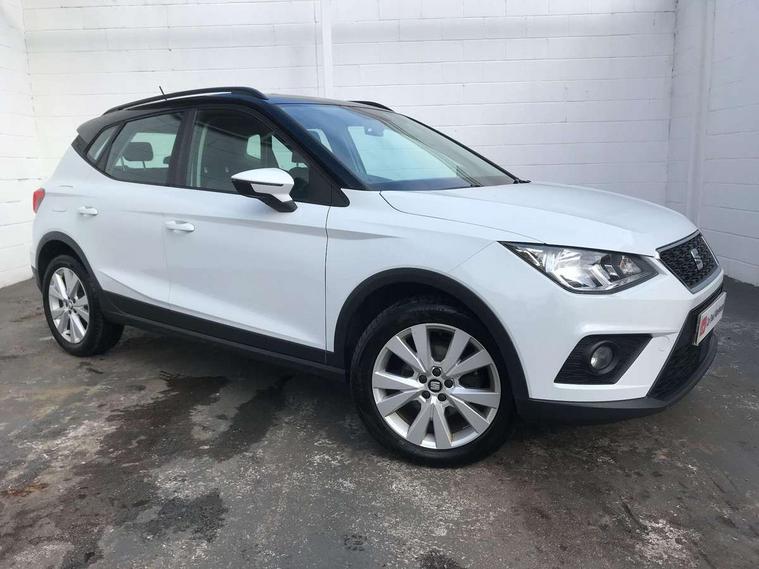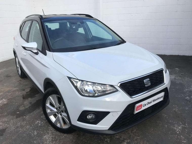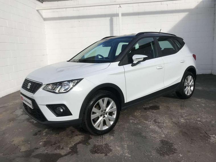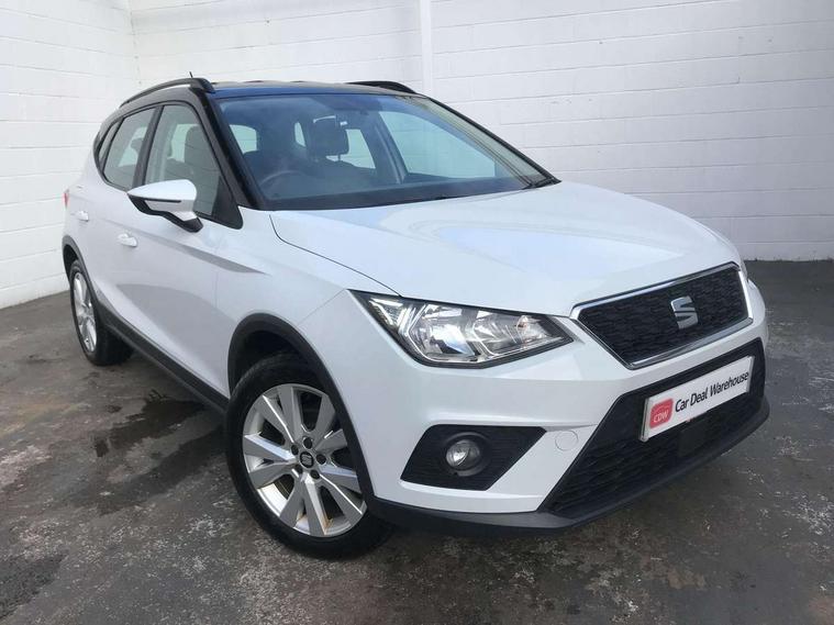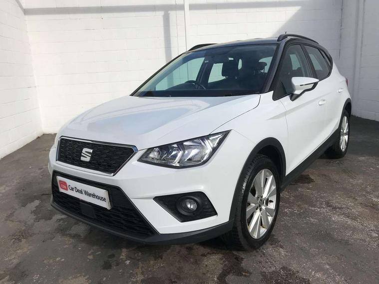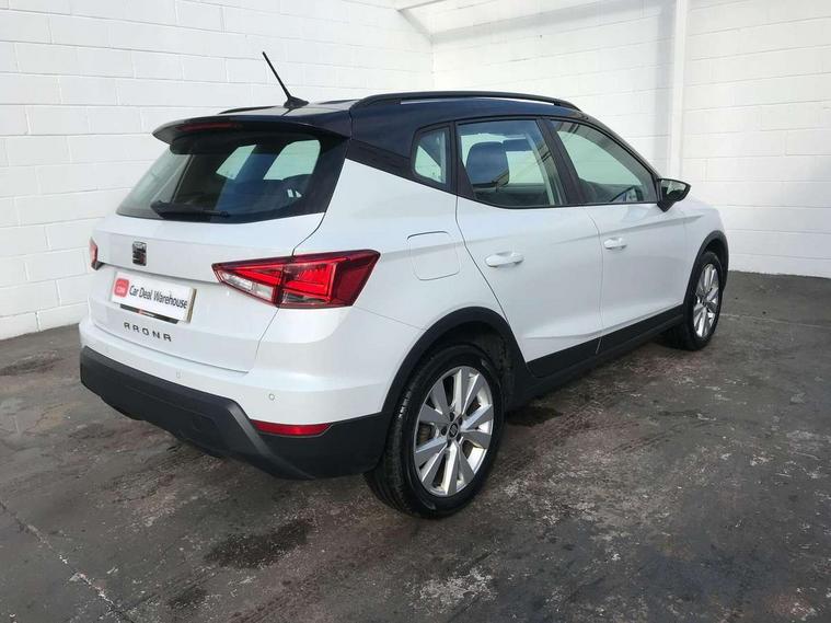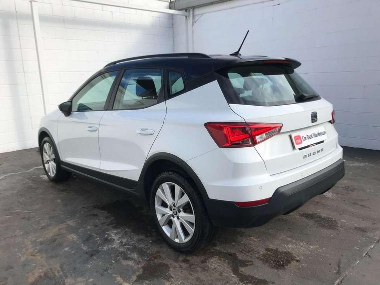 'Lights On' Reminder warning buzzer, Adaptive cruise control, Digital clock, Electric speed sensitive power steering, Front assistant collision mitigation, Full Link Smartphone Integration with Mirror Link, Apple Car Play, Google Android Auto, Low fuel warning light, Outside temperature display, Rear parking sensor, RPM counter, Trip computer, Comfort suspension, 6 speakers, Beats audio system, Bluetooth interface for hands free and audio streaming, DAB Digital radio, SEAT USB media cable, Steering wheel mounted audio controls, Anti theft roof antenna, Automatic activation of hazard warning lights, Automatic headlights, Black roof rails, Black window surrounds, Body coloured bumpers, Body coloured door handle inserts, Chrome grille surround, Electric adjustable door mirrors, Electric front/rear windows with one touch/auto up/down, Electric headlight adjustment, Front fog lights with static cornering function, Halogen headlights, Hidden exhaust pipe, LED daytime running lights, LED licence plate lighting, LED tail lights, Rear fog lights, Rear window wash/wipe, Visible VIN plate, Windshield wiper with intermittent control and potentiometer, 2 cupholders, 3 rear height adjustable headrests, 60/40 split folding rear seat, Active head restraints, Air conditioning, Ambient interior lighting, Card holder, Cloth upholstery, Double boot floor, Driver and passenger sunvisors, Driver/front passenger seat height adjustment, Dust/pollen filter, Footwell ambient lighting, Front courtesy lights, Front reading light, Gear shift indicator, Height/reach adjustable steering column, Illuminated boot, Instrument lighting with brightness control, Isofix attachments on outer rear seats, Leather handbrake, Leather steering wheel and gear knob, Connectivity pack plus - Arona, Winter pack - Arona, 3 point seatbelts on all rear seats, ABS+EBA, Child locks on rear doors, Driver/Front Passenger airbags, Electronic stability control, Front and rear seatbelt reminder, Front side/curtain airbags, Height adjustable active front headrests, Hill hold control + Tyre Pressure monitor, Multi-Collision braking, Passenger airbag deactivate switch, Tiredness recognition system, Traction control, 2 folding remote keys with window open/close function, Immobiliser, Keyless entry and start, Locking wheel bolts, Remote central locking + deadlocks, Interior chrome line trim, 17" Dynamic alloy wheels,