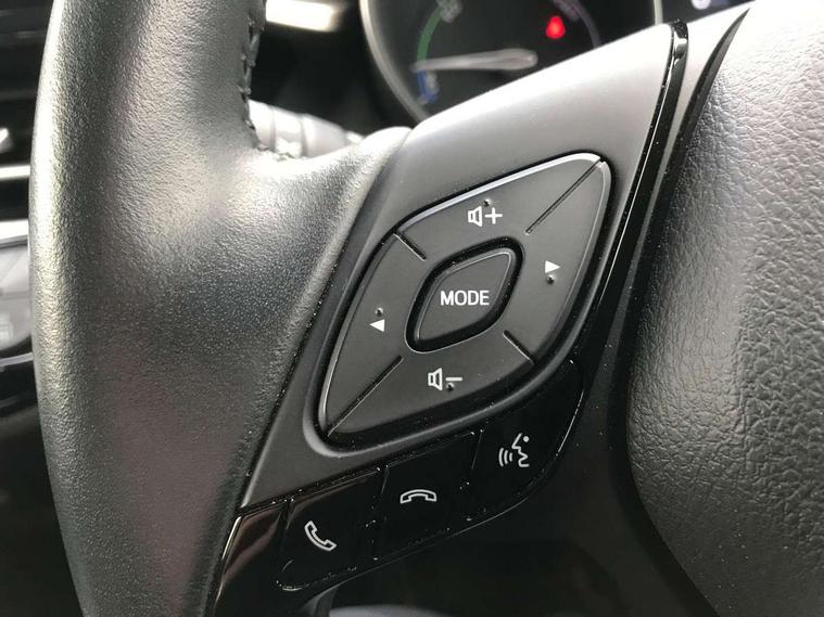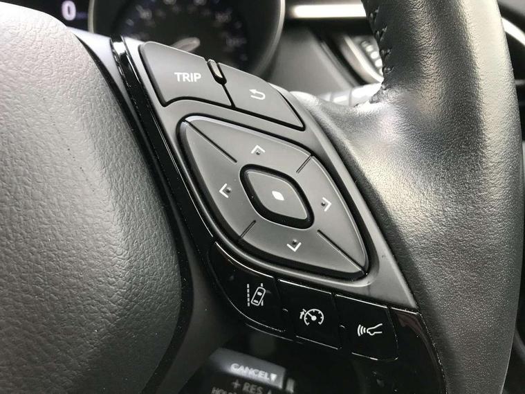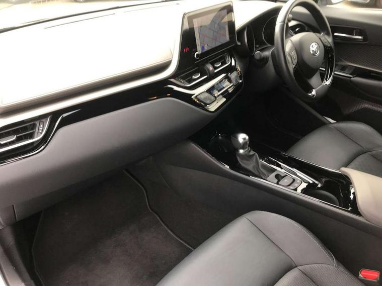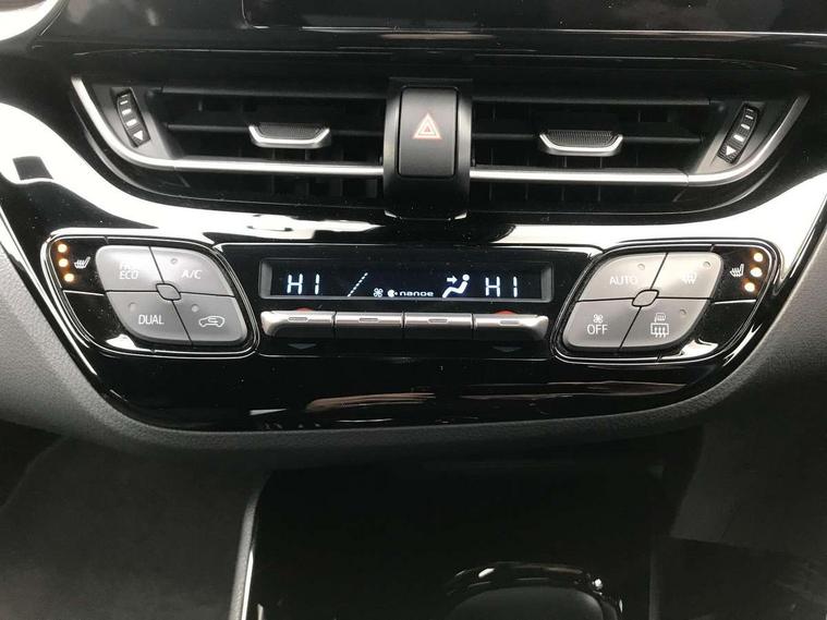 4.2" coloured TFT screen for multi-information display, Adaptive cruise control, Apple car play and Android auto, Bluetooth connectivity, E-call, Electric power steering, Hybrid system indicator, Lane departure alert with steering control, Lane trace assist, Push button tailgate release, Remote boot door release in cabin, Remote boot door release in key, Reversing camera, Road sign assist - RSA, Simple Intelligent parking assist, Smart voice assist, Touch 2 Go navigation system, Trip computer, Voice recognition, Wireless smartphone integration, Vehicle Stability Control (VSC), 6 speakers, AM/FM radio, DAB Radio (Digital Audio Broadcasting), Toyota touch 2 multimedia system with 8" display, USB connector, Wi-fi connectivity, Adaptive front light system, Adaptive LED Headlights, Anti-jam protection on power windows, Auto high beam, Auto up and down function on all power windows, Automatic headlight levelling, Automatic headlights, Automatic headlights cut-off, Black and body coloured rear bumper, Black lower front grille, Black upper front grille, Body colour door handles, Body colour door mirrors, Body colour front spoiler lip, Body coloured front bumper, Boot door release with push button, Electric heated door mirrors, Follow me home headlights, Front and rear power windows, Headlight cut off reminder, Honeycomb lower front grille, LED daytime running lights, LED fog lights, LED front light guide, LED High mounted stop light, LED rear brake lights, LED rear combination lights, Noise reduction layer on front windows and windscreen, Power adjustable door mirrors, Privacy glass, Rain sensor, Rear sequential indicators, Rear side wing doors, Rear spoiler, Rear tailgate, Rear window defogger, Rear window wiper, Shark fin antenna, UV-filter on driver and passenger windows, UV-filter on rear windows, Variable front intermittent wipers, 12v power outlet - front, 3 rear headrests, 3 seat bench in 2nd row, 3 spoke leather steering wheel, 60/40 split folding 2nd row rear seats, Adjustable rear headrests, Adjustable speed limiter switch on steering wheel, Assist grips front and centre pillar, Audio and telephone switches on steering wheel, Black front door assist grips, Blue ambient lighting on front cup holders, Blue ambient lighting on front doors, Boot light, Chrome interior door handles, Driver and front passenger personal light, Driver and front passenger Whiplash Injury Lessening seats, Driver and passenger seatback pockets, Dual zone automatic air conditioning, Floor mats, Front cupholders, Front head restraints, Front sports seats, Glovebox with internal light, Hard tonneau cover, Heated driver and front passenger seats, Heated steering wheel, Hooks for luggage holding net, Humidifying Nanoe air purifier, Illuminated entry system, Isofix attachments on outer rear seats, Leather gearshift, Leather wrapped steering wheel, Light on driver sun visor, Light on passenger sun visor, Manual telescopic steering wheel, Manual tilt steering wheel, Microphone on front personal light, Mirror on driver sun visor, Mirror on passenger sun visor, Multimedia switches on steering wheel, Pollen filter, Power adjustable lumbar support on driver seat, Power tilting cushion on driver seat, Shopping bag hooks, Single front passenger seat, Slow opening on lower glovebox, Voice recognition switch on steering wheel, Leather pack - C-HR, Tech with parking sensor pack - C-HR, 16 Disk front wheel brake, 3x3 point rear seatbelts, ABS+EBD+Brake assist, Electronic parking brake, Front and rear seatbelt reminder, Front passenger airbag on/off switch, Hill start assist control (HAC), Pre collision system with pedestrian detection, Pre-tensioners and force limiters, Rear door child safety locks, SRS Airbags - Driver + Front passenger, front side, front and rear curtain and driver's knee airbags, Toyota safety sense, Tyre pressure monitoring system, Tyre pressure warning system, Acoustic vehicle alert system (AVAS), Glass-breaking alarm sensors, Immobiliser, Intrusion alarm, Intrusion sensor, Motion sensor alarm, Power door locks, Power passenger window lock, Remote central locking, Black lower dashboard, Dark brown upper dashboard, Piano black console, Silver deco line on upper dashboard, Tyre repair kit,