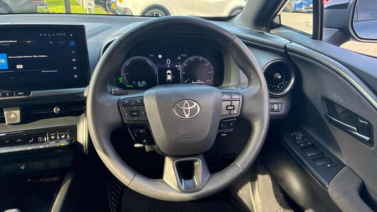 12.3" Digital Combimeter, 12.3" multimedia display screen, 4 rear parking sensors, Acceleration suppression at low speed, Adjustable speed limiter, Blind spot monitor, Bluetooth connectivity, Built-in and cloud navigation, Colour multi information display, Digital speedometer, Digital tachometer, eCall emergency call system, Electric power steering, Emergency driving stop system, Emergency steering assist, Front parking sensors with auto braking, Hybrid system indicator, I/P center cluster X, Instrument finish panel, Intelligent adaptive cruise control, Intelligent parking sensors (objects and vehicle), Lane Departure Alert (LDA) switch on steering wheel, Lane departure alert with steering control, Lane trace assist, Memory on speed limiter, MyT connected services, Power tailgate, Pre collision system with emergency steering assist, Pre collision system with intersection detection, Proactive driving assist (PDA), Push button tailgate release, Rear cross traffic alert, Remote boot door release in cabin, Reversing camera, Reversing camera display in audio screen, Road sign assist - RSA, Safe exit assist, Smart entry and push button start, Smart voice assist, Start and stop, Static guide lines on reversing camera, Toyota Smart Connect multimedia system with wireless Smartphone integration incl Apple CarPlay, Voice recognition, Wireless phone charger, Electric accelerator pedal, Fast charger 32A Mennekes cable, Front and rear stabilizers, Vehicle Stability Control (VSC), 6 speakers, Aux-in connector, DAB Radio (Digital Audio Broadcasting), Front USB Type-C connector, Rear USB Type-C connector, Road events, Toyota touch 2 with go navigation, USB connector integrated with radio and CD player, Anti-jam protection on power windows, Auto dimming rear view mirror, Auto high beam, Auto up and down function on all power windows, Auto wipers, Automatic headlights, Automatic headlights cut-off, Automatic rear flashing hazard lights, Automatically retractable door mirrors, B - Pillar in Black, Black centre air vent, Black painted insert on boot door, Black side air vents, Black wheel arch mouldings, Body colour door handles, Body coloured front bumper, Body coloured rear spoiler, Body coloured roof, Clear headlights design, Door scuff plates, Electric heated door mirrors, Emergency brake-light signal (EBS), exhaust tail pipe and diffuser, Flush front and rear door handles, Follow me home headlights, Front and rear power windows, Fuel caution label, Gloss black door belt moulding, Grained front side grille, Grained lower front grille, Grained rear bumper extension, Gunmetal surround on lower front grille, Headlight cut off reminder, LED daytime running lights, LED fog lights, LED High mounted stop light, LED rear brake lights, LED rear combination lights, LED reverse light, Manual headlight levelling, Noise reduction layer on windscreen, Power adjustable door mirrors, Pre wiring for towing hook, Privacy glass, Puddle lights, Rain sensor, Rear bumper with gunmetal insert, Rear fog lamps, Rear side wing doors, Rear tailgate, Rear window defogger, Rear window wiper, Reflective LED headlights, RHD aiming, Satin chrome centre air vent surrounds, Satin chrome insert on centre air vents, Satin chrome insert on side air vents, Satin chrome side air vent surrounds, Silver large centre cap surrounds, Standard Front Side Grille, Standard roof, Turning signal integrated in door mirrors (LED), UV-filter on driver and passenger windows, UV-filter on rear windows, Variable front intermittent wipers, Wing liner front with sil rear without sil, 12v power outlet - front, 2 rear coat hooks, 220v power output in luggage compartment, 3 bench rear seats in 2nd row, 3 rear headrests, 3 spoke synthetic leather steering wheel, 60/40 split folding 2nd row rear seats, Adjustable rear headrests, Ambient lighting on front doors, Assist grips front and centre pillar, Audio and telephone switches on steering wheel, Boot light, Boot under floor storage, Clean air filter, Cloth upholstery with grey stitching, Cover front console box, Dark grey interior door handles, Door Edge Protection Film, Driver and front passenger personal light, Driver and front passenger Whiplash Injury Lessening seats, Dual zone automatic air conditioning, Fabric door trim, Floor mats - border/stitching, Front console box, Front cupholders, Front door pockets, Front headrests, Front room light, Front sports seats, Full-flat loading, Glovebox with internal light, Hard tonneau cover, Heat pump system with humidifier, Heated driver and front passenger seats, Heated steering wheel, Hooks for luggage holding net, Hybrid key cover, Illuminated entry system, ISOFIX child restraint system, LED Overhead Console light, Light on driver sun visor, Light on passenger sun visor, Luggage floor board with protection mat, Manual telescopic steering wheel, Manual tilt steering wheel, Manually height adjustable driver seat, Manually height adjustable front passenger seat, Manually reclining driver seat, Manually reclining front passenger seat, Manually sliding driver seat, Manually sliding front passenger seat, Mat Fitment, Microphone on front personal light, Mirror on driver sun visor, Mirror on passenger sun visor, Multimedia switches on steering wheel, Pollen air filter with deodorising odour eliminator, Power adjustable lumbar support on driver seat, Rear door cup holder, Rear door pockets, Rear passenger personal lights, Remote air conditioning, Single compartment glovebox, Single front passenger seat, Slow opening on lower glovebox, Synthetic leather gear shift knob, Voice recognition switch on steering wheel, 3x3 point rear seat belts, ABS+EBD+Brake assist, Driver and passenger side airbag, Driver knee airbag, Electronic parking brake, Front and rear seatbelt reminder, Front passenger airbag on/off switch, Front to front oncoming car and motorbike daytime detection, Hill start assist control (HAC), Pre collision system with pedestrian, cyclist and motorbike day detection, 