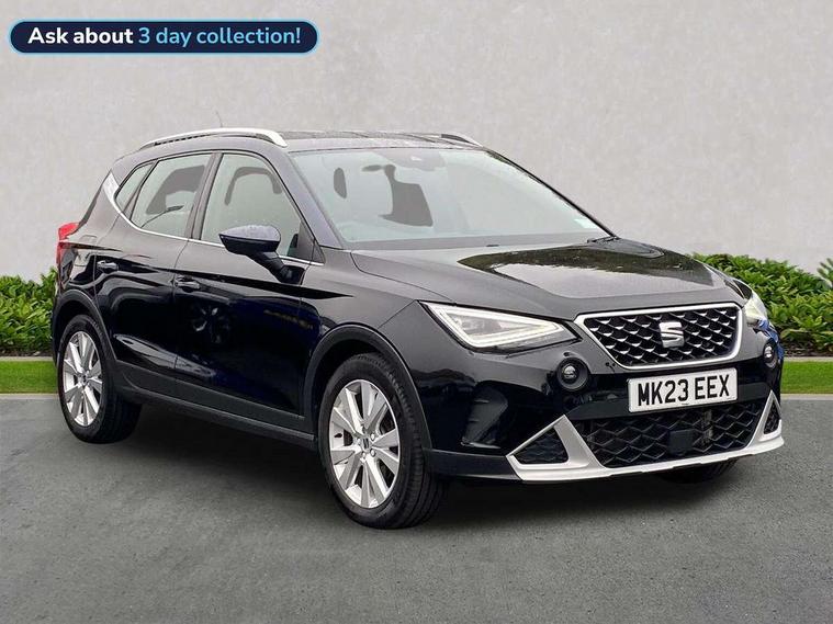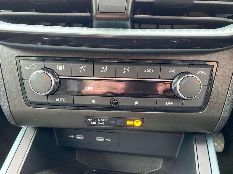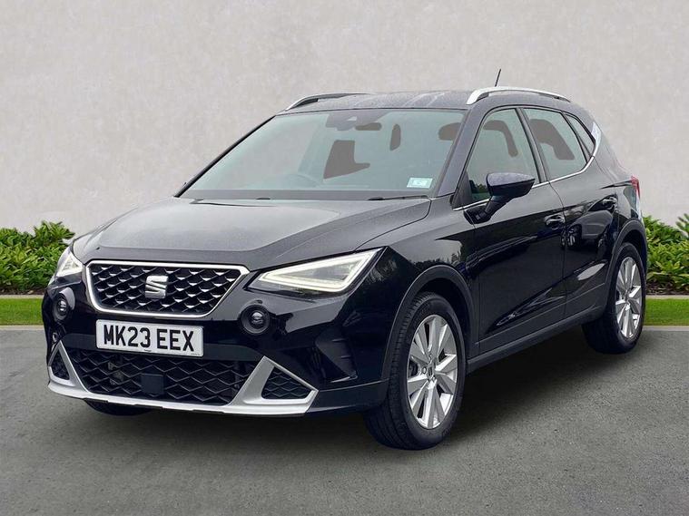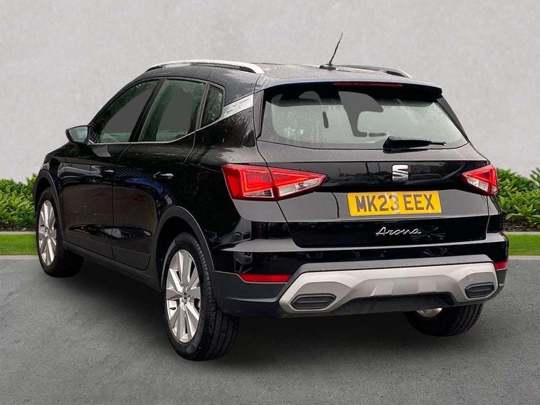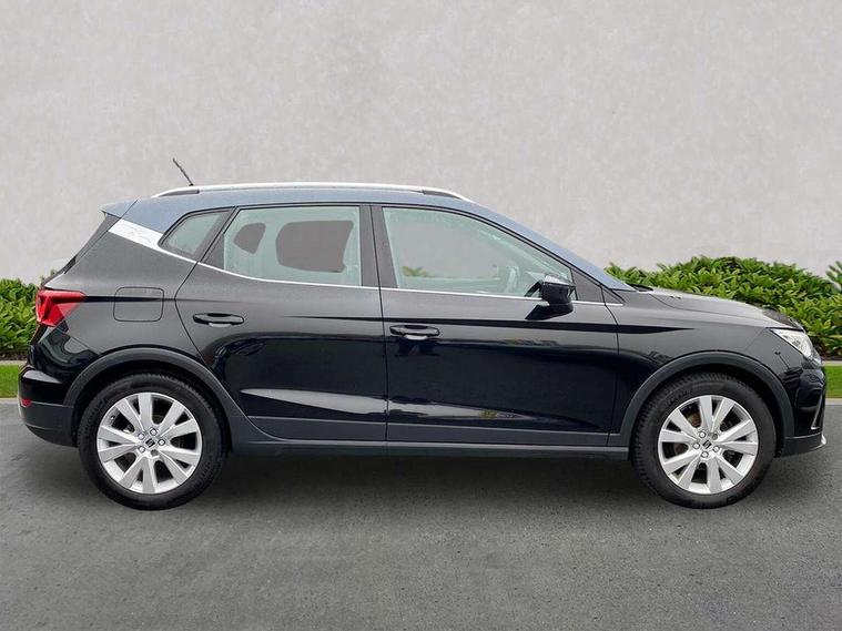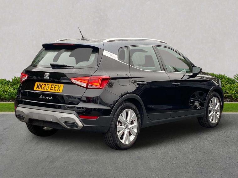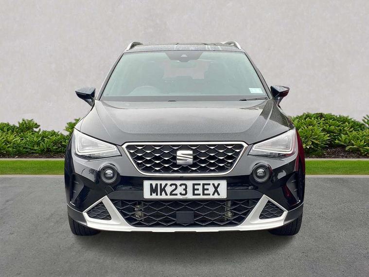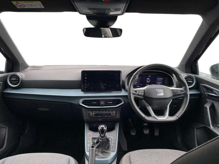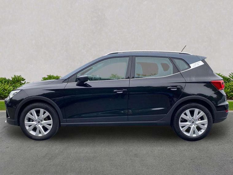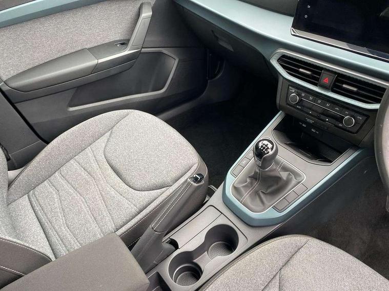 'Lights On' Reminder warning buzzer, 8" Digital cockpit, Digital clock, E-call, Electric speed sensitive power steering, Full Link Smartphone Integration with Mirror Link, Apple Car Play, Google Android Auto with USB cable for Apple and Android compatibility, Lane keeping system, Low fuel warning light, Outside temperature display, Rear parking sensor, RPM counter, Seat connect with safety, service, remote and online, Trip computer, Wireless phone charger, 9.2" colour touchscreen with navigation system, voice control and USB port (type c), Bluetooth interface for hands free and audio streaming, DAB digital radio and AM/FM radio, Steering wheel mounted audio controls, Anti theft roof antenna, Auto dimming interior rear view mirror, Automatic activation of hazard warning lights, Body coloured bumpers, Body coloured door handle inserts, Chrome roof rails and window surrounds, Electric front/rear windows, Electrically adjustable, heated and folding door mirrors, Front fog lights with cornering function and rear fog light, FULL LED automatic headlights with dynamic headlight range control, coming and leaving home, LED daytime running lights, Hidden exhaust pipe, LED rear tail lights and licence plate lights, Protective side mouldings, Rain sensing wipers, Rear side wing doors, Rear spoiler, Rear window wash/wipe, Roof colour door mirrors, Third brake light, Visible VIN plate, Windshield wiper with intermittent control and potentiometer, 2 cupholders, 3 seat bench in 2nd row, 60/40 split folding rear seat, Aircare filter, Black interior roof, Cloth upholstery, Double boot floor, Driver sunvisor with covered mirror + card holder, Dual zone climate control, Flat bottomed leather steering wheel/gear knob/handbrake, Front courtesy light with front and rear reading lights, Front seat back storage pockets, Gear shift indicator, Height adjustable front seats, Height/reach adjustable steering column, Illuminated boot, Instrument lighting with brightness control, Interior ambient lighting, Interior light in footwell, central console and door panel, ISOFIX points in outer rear seats with top tether anchorage points, Leather steering wheel/gear knob/handbrake, Passenger sunvisor with vanity mirror, Single front passenger seat, Storage net on centre console, Two front and three rear height adjustable headrests, Interior chrome pack - Arona, Safety and driving pack (M) - Arona, Storage pack - Arona, 3 point seatbelts on all rear seats, ABS, Active front headrests, Child locks on rear doors, Driver and front passenger airbags with front passenger airbag de activation, front side and curtain airbags, Electronic stability control, Emergency Brake Assist (EBA) and front assist, Front and rear seatbelt reminder, Hill hold control, Multi-Collision braking, Tiredness recognition system, Traction control, Tyre pressure monitoring system, Alarm with back-up horn, Electronic engine immobiliser, KESSY Keyless entry and go, Locking wheel bolts, Remote central locking + deadlocks, Tow away protection, Titan black dashboard, 17" Dynamic alloy wheels,