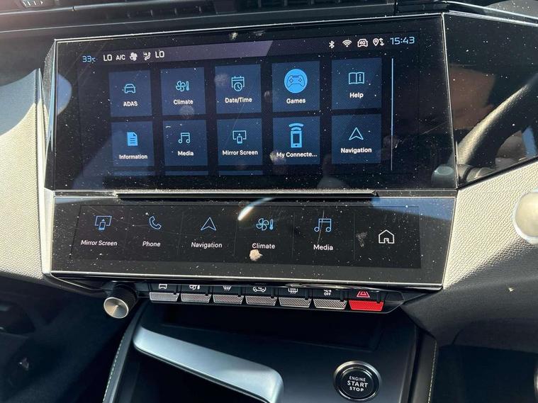 Bluetooth telephone facility, Compact drive selector, Driver attention warning, Emergency call service, Exterior temperature indicator with ice warning, Front and rear parking sensors, Intelligent speed adaptation, Lane keep assist, Mirror screen with wireless apple carplay and android auto, Multi driving mode selector - Eco / Normal / Sport mode selector, Multi function trip computer, Peugeot connect advanced with connected 3D navigation, PEUGEOT i-Cockpit - compact steering wheel, 10" HD colour touchscreen with configurable 3D headup instrument panel, PEUGEOT SOS and assistance, Service interval indicator, Speed limit recognition and recommendation, Sport pedals with foot rest, DAB Digital radio, Peugeot customisable iToggles, Voice recognition for radio, navigation and telephony features, 2 X LED rear number plate lights, Acoustic and tinted windscreen, Acoustic laminated front side windows, Automatic hazard light activation upon heavy brake application, Automatic triggered rear windscreen wiper in reverse gear, Bi-tone roof rails, Body colour door handles, Body colour rear roof spoiler, Dark chrome chequered radiator grille, Dark tinted rear side and tailgate windows, Electric operated/heated door mirrors, Extended lower body sills to the front and side, Frameless electrochrome rear view mirror, Front and rear electric windows with one touch/anti pinch, Full LED matrix headlights with automatic adjustment, Gloss black finish B pillar, Gloss black rear cluster connecting strip, GT model designation badging on tailgate, High beam assist, LED 3rd brake light, LED side indicator lights integrated into door mirrors, Lion emblem badging on front wings, Model designation badges on front and rear, Nera black door mirrors, Peugeot aluminium door sills, Peugeot signature LED daytime running lights, Power folding door mirrors, Rear full LED 3D Peugeot new claw effect lights with sequential welcome sequence upon unlocking the vehicle, Rear lower bumper gloss black diffuser effect trim, Rear reversing lights, Rear side wing doors, Tailgate with heated rear windscreen and wiper blade, Twin exhaust pipes with chrome surround, 12V socket, 2 front USB socket including 1 USB type c, 3 seat bench in 2nd row, 40/20/40 flat folding rear seats, 8 Colour personalisable ambient lighting, Automatic air conditioning with AQS 3, Carpet mats, Central front armrest with storage compartment, Dynamic front seats, Electric power steering with reach and rake adjustable steering column, Front central console with two cup holders, LED Glovebox light, Manual driving mode - change gear manually via steering mounted paddles, Multifunction full grain leather steering wheel with admite green stitching & GT badging, Piano keys gloss black plated toggle switches to access main functions of the vehicle, Rear centre armrest with cupholders, Roof lining - Mistral black, Seatbelt unfastened on the move audible and visual alert for front and rear seats, Single front passenger seat, Sunvisor with concealable mirrors and LED lighting, Twin USB charging ports in the rear (Type C), Two position boot floor, Driver sport pack with sports power steering - 308, Visibility pack with automatic magic wash windscreen wipers - 308, 2x Isofix child seat fitting on outer rear seats, 3x Rear three-point retractable seatbelts with force limiters in the outer rear seats, ABS + EBD + EBA, Active safety brake with night function/cyclists/pedestrians, Adaptive driver and front passenger airbags with passenger airbag deactivation function, Automatic post collision braking, Child locks on rear doors, Driver/front passenger side airbags, Electronic parking brake, ESP, Front and rear curtain airbags, Front optimised safety headrests and rear retractable headrests (x3), height adjustable, Front three point retractable seatbelts with force limiters, Front/rear disc brakes, Hill start assist, Tyre pressure sensor, Automatic door locking when moving off, Deadlocking system, Electronic code immobiliser, Locking wheel nuts, PEUGEOT Open and Go keyless entry system, Thatcham cat. 1 alarm with anti lift sensor, Tyre repair kit,