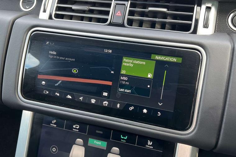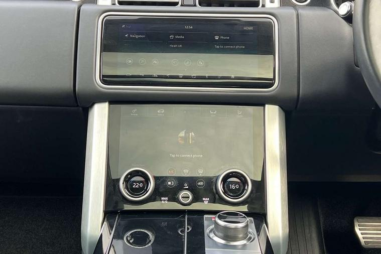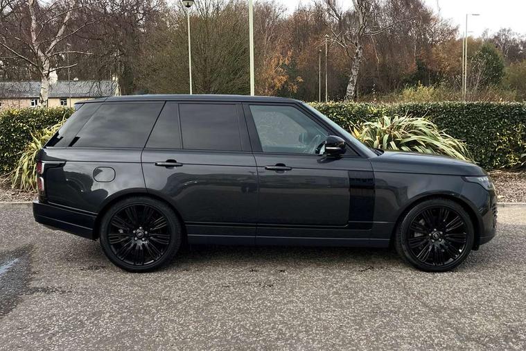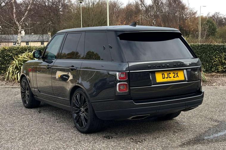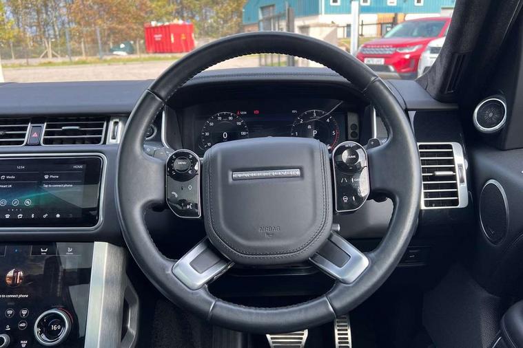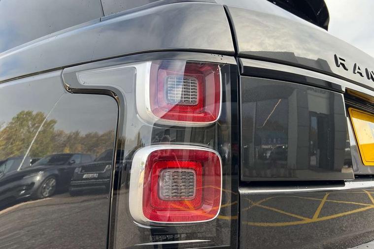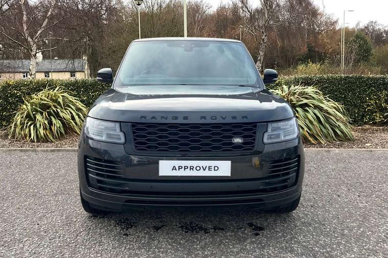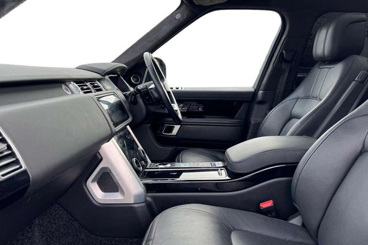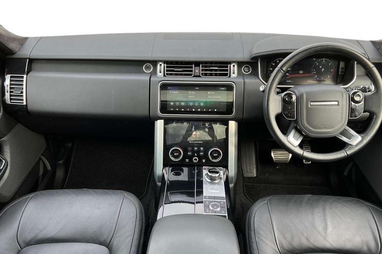 Android Auto, Apple car play, Bluetooth mobile phone connection, Dynamic route guidance, Electric power assisted steering (EPAS), Interactive Driver display instrument cluster, Lane departure warning system, Navigation pro system with 10" touch screen, app interface and media storage, Powered gesture tailgate/boot lid, Push button starter, Rear camera wash, Rotary shifter, Service interval indicator, Touch pro duo system, Trip computer, Voice control system, 8 speed automatic transmission, Adaptive dynamics, All Wheel Drive (AWD), Automatic access height, Diesel particulate filter, Electronic air suspension, Twin speed transfer box, Digital Audio Broadcast radio-DAB, Digital TV, InControl app, USB socket, Acoustic windscreen, Auto dimming interior rear view mirror, Auto self levelling headlights, Automatic headlights, Body coloured bumpers, Centre high mounted stop light, Door/quarter lights in toughened plate glass, Electric windows with one touch open/close and anti trap, Electrical towing preparation, Follow me home headlights, Front and rear recovery eyes, Front fog lights, Headlamp power wash, Heated rear window, Heated windscreen includes heated washer jets, Illuminated metal treadplates with brand name script, Integrated twin tailpipes, LED rear lamps, LED tail lights, No badges, Power fold, auto-dimming, heated door mirrors with memory and approach lights, Power front/rear windows with global close, Privacy glass, Rain sensing windscreen wipers, Rear fog lights, Rear wash/wipe, Side repeater indicators in mirror, Sliding Panoramic roof includes gesture sunblind and auto sunblind, Trailer stability assist, 12V power point in luggage area, 12V power sockets, 3 rear headrests, Black gearshift paddles, Bright metal pedals, Carpet mats, Centre console with storage and armrest, Configurable Ambient interior lighting, Customer configurable single point entry, Driver and passenger front seat armrests, Easy boot loading, Electrically adjustable steering column, Folding rear seats, Front and rear cupholders, Front and rear grab handles, Front headrests, Front seat back map pockets, Heated steering wheel, Loadspace cover, Loadspace light, Lockable glovebox, Luggage compartment lighting, Luggage tie down in loadspace, Perforated Windsor leather upholstery, Rear centre armrest, Rear ISOFIX, Soft close doors, Suede cloth headlining, Through load facility, Twin blade sunvisors with Illuminated vanity mirrors, Black exterior pack - Range Rover, Smartphone pack - Range Rover, 3 rear 3 point seatbelts, Anti-lock braking system (ABS), Auto lock system when vehicle in motion, Cornering brake control (CBC), Curtain airbags, Customer configurable autolock, Driver/front passenger head+thorax airbag, Drivers knee airbag, DSC - Dynamic Stability Control, Electronic brake force distribution, Electronic parking brake, Electronic traction control, Emergency braking, ESP, Front airbags with passenger seat occupant detector, Front seatbelt pretensioners with force limiters, Front side airbags, Grey anodised brake calipers, Height adjustable front seatbelts, Hill descent control, Hill launch assist, Low traction launch, Power operated child locks, Roll stability control, Tyre pressure monitoring system (TPMS), Immobiliser, Intrusion sensor and alarm, Keyless entry, Locking wheel nuts, Remote central locking,