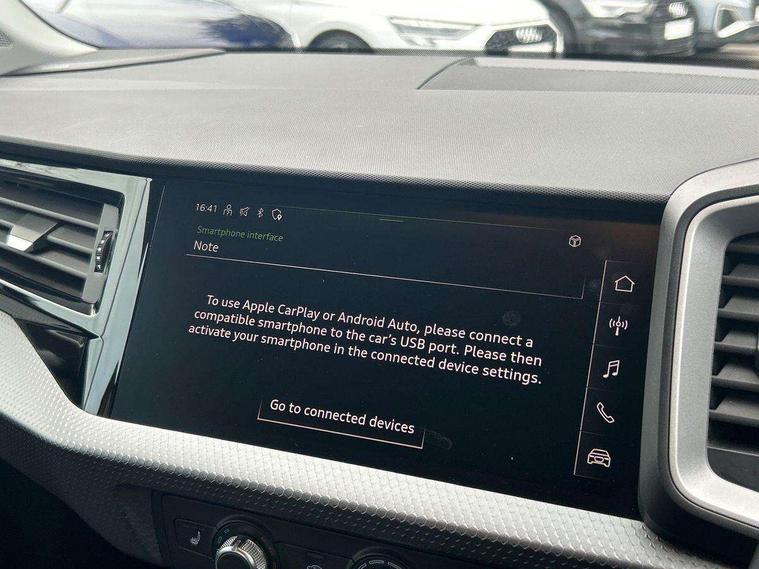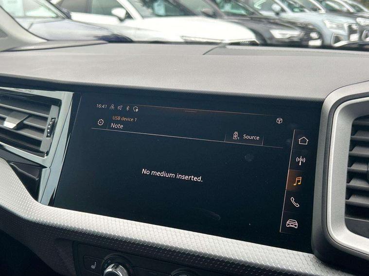 10.25" Digital instrument cluster display classis style instrument dials + speed, odometer, time, outside temperature, telephone menu + fuel level warning, Audi smartphone interface with connect compatible smartphone via USB directly MMI display + Nav, music, third party apps controlled via MMI controller, Automatic start/stop system, Bluetooth interface, Cruise control, Driver's information system, Electromechanical power steering, Emergency e-call, Lane departure warning system, Rear parking sensor, Service interval indicator, Speed limiter, Voice control system, Washer fluid level indicator, Dynamic suspension, 2 x USB type C connection points, 6 passive loudspeakers, DAB Digital radio, MMI radio plus with 10.1" colour MMI display screen and MMI touch, Auto dimming rear view mirror, Body coloured bumpers, Body coloured door mirrors, Electric front and rear windows, Electrically adjustable, heated, folding door mirrors with integrated LED side indicator, Front side air inlets in grained matt black and C frame in anthracite black, Heat insulating glass windscreen and side windows, Heated rear windscreen, High level LED brake light, LED headlights with LED rear lights + dynamic rear indicators + headlight adjustment and high beam, turning light + LED daytime running lights, Radiator grille and rear diffuser in matt anthracite black, Radiator protective grille frame in matt aluminium silver, Rain and light sensors, Rear fog lights, Rear side wing doors, Rear wiper, Side front spoiler lips in grained matt black, 12V socket in centre console with two cup holders, 3 rear seats with headrests, 3 seat bench in 2nd row, 3 spoke leather multifunction plus steering wheel, 40:60 Split folding rear seat or folded fully, Black front and rear floor mats, Door sill trims with aluminium inlay, Driver and passenger seat with manual height adjust with forward and backwards adjustment, Front head restraints, Front passenger seat, Grey cloth headlining, Height and reach adjustable steering wheel, ISOFIX child seat mounting for front passenger and outer rear seats including top tether attachment point of outer rear seats, Leather gear knob with aluminium trim, Leather handbrake grip, Luggage compartment light with front and rear reading lights, Manual air conditioning, Manually adjustable lumbar support in front seats, Novum cloth upholstery with front sport seats, Luggage compartment pack - A1, 3x3 point rear seatbelts, Audi pre-sense front with pedestrain and cyclist recognition, Brake assist function, Driver and front passenger airbag with front side and head airbags, Electronic Stability Control including ABS, EBD, ASR and EDL, Front passenger airbag deactivation switch, Hill hold assist, Manual rear child locks, Seatbelt height adjustment for front seats, Seatbelt monitoring, Tyre pressure warning light, Warning triangle and first aid kit, Anti theft alarm, Anti theft wheel bolts and loose wheel warning, Immobiliser, Remote central locking with 2 foldaway keys, Aluminium trim for control switches, air vents and digital instrument cluster, Black dashboard, Silver grey accent areas including air vents, door handle recesses and centre console in diamond paint finish, Slate grey inlays polygon structure in fine paint finish,