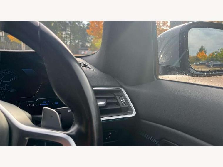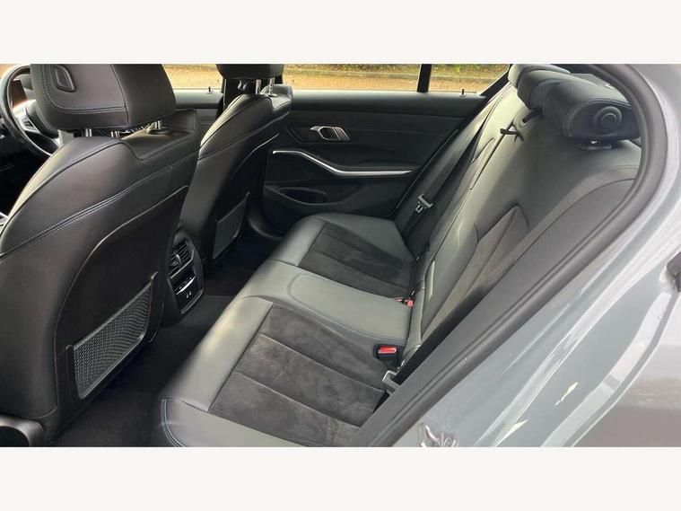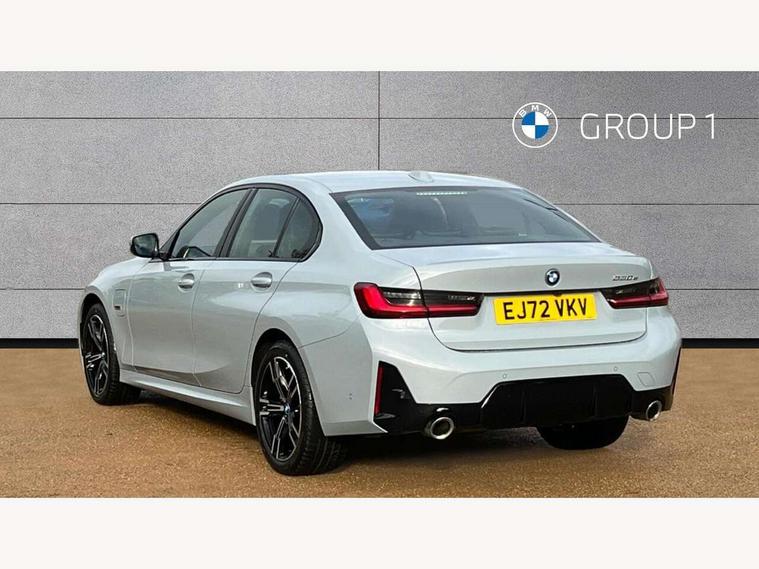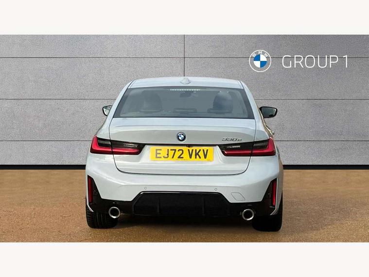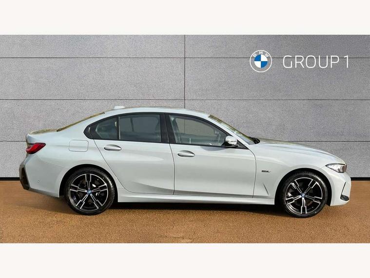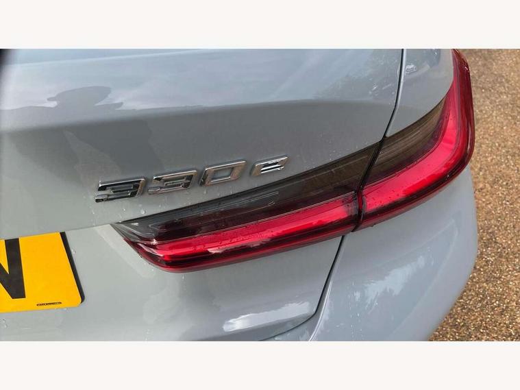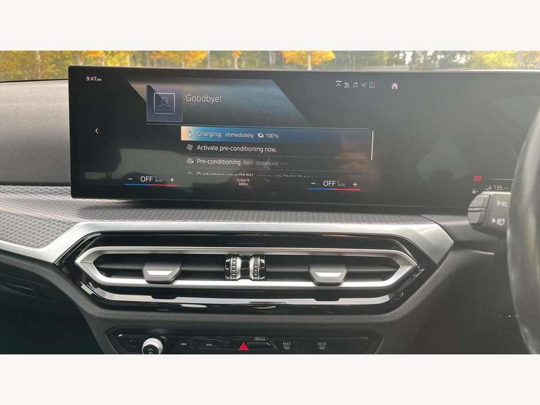 Active guard plus, Attentiveness assist, Automatic Start/stop button, BMW iDrive, BMW Teleservices, Condition based service, ConnectedDrive Services, Driving experience switch, Live cockpit plus with Navigation + 12.3" instrument display + 14.9" display, Intelligent voice assist, 2 USB, 4G LTE connect, Oil sensor for level and grade, PAS, Preparation for driver assistance, Shifting point display, Smartphone integration, Charging cable - Mode 2, Double joint spring strut front axle, Fuel tank breather system, Sport automatic transmission with steering-wheel mounted gearshift paddles and launch control, Standard suspension, DAB tuner, "Electrified by i" exterior badging on charging flap, 3rd brake light, Acoustic glazing, Auto dimming rear view mirror, Automatic headlight beam throw control with load dependent regulating reaction, dynamic compensation of braking dive and acceleration squat, BMW emblem, engine compartment lid and tailgate, Body colour roof fin, Door sill strips, Electric windows - front and rear, with open/close fingertip control, anti-trap facility and comfort closing, Follow me home headlight function, Front and rear bumper system with replaceable deformation elements, Front apron plastic in body colour, Fuel filler flap - right rear in body colour, Heated washer jets, Illuminated bow type door handles in body colour drivers side with door lock, Interior rear view electrochromatic mirror with automatic anti dazzle function, LED headlights with LED daytime running lights and LED turn indicator, LED rear lights, Licence plate panel integrated into front bumper and tailgate, Matt black B-pillar finsher, Matt black window recess cover, Model designation on right side of tailgate, One piece front bumper cover including towing eye cover in body colour, Rain sensor with automatic headlight activation, Rear boot, Rear side wing doors, Reversing lights, Side frame decorative moulding black matt, Visible exhaust tailpipe finisher, Welcome lights in interior and door handle area, 12V power socket in front storage compartment, 2 front cupholder in centre console with clamping elements and matt black inlay, 3 seat bench in 2nd row, 3 zone automatic air conditioning, 40:20:40 split folding rear seat with loading system, Anthracite headlining, Armrest integrated in front and rear door trim + front centre console armrest, Battery in luggage compartment, BMW ID, Cruise control operation in steering wheel, Driver backrest width adjustment, Folding rear centre armrest with 2 cupholders, Front and rear door exit lighting (left / right), Front and rear footwell lighting, Front and rear headrests, Front and rear reading lights, Front and rear velour floor mats, Front sport seats, Heated front seats, Height adjustable mechanically and infinitely variable steering column, Illuminated armrest storage compartment, Illuminated glove compartment, Illuminated luggage compartment, Lashing eyelets in luggage compartment, LED ambient lighting with welcome carpet light, M Sport multifunction leather steering wheel, Make-up mirror lights, Single front passenger seat, Standard seat for driver and passenger with manual adjustment, Sunvisors with vanity mirrors and ticket pocket, Toolkit located in luggage compartment, Connected pack professional - 3 Series Saloon/Touring, Interior and exterior mirror pack - 3 Series Touring/Saloon, M Aerodynamics package - 3 Series Saloon/Touring, M sport exterior styling pack - 3 Series Saloon/Touring, Storage compartment pack - 3 Series Saloon/Touring, 3x3 point rear seatbelts, BMW emergency call, Child locks on rear doors, Crash sensor activating of airbags, Unlocking doors, hazard warning lights, interior light, safety battery terminal, Driver and front passenger with seat occupancy detection for driver's and passenger side, Driver and passenger side airbags, body protection at side and airbags deploy from seat backrests, Dynamic brake control, Dynamic stability control + (DSC+) - Anti-lock Braking System (ABS) with brake assist and cornering brake control + Automatic Stability Control (ASC), Dynamic Traction Control - DTC, Electric parking brake including automatic hold function and automatic release of the parking brake when driving off, Electronic differential lock control (EDLC), Head airbags in 1st and 2nd row, head protection at side, curtain airbags open from headliner above 1st and 2nd row, Side impact protection, Tyre pressure monitoring with three level warning strategy, Ventilated front and rear disc brakes, Warning triangle and first aid kit, Alarm system, Centre lock switch, Closing system with central locking, Electronic vehicle immobiliser,