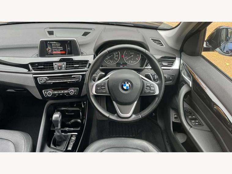 Active Guard incl speed limiting and lane departure functions with auto steering, and front collision warning with brake intervention, Ambient temperature display, Attentiveness assist, Automatic tailgate opening, BMW Online services, BMW Teleservices, Lights on warning, On board computer, Outside temperature gauge, Real time traffic information, Rear park distance control, Service interval indicator, Speed limiter, Stop/start button, Tyre puncture warning system, Electronic differential lock, Performance Control, Auxiliary socket for external MP3 player, BMW professional radio with CD player, DAB Digital radio, Adaptive LED Headlights, Adjustable headlights, Body colour bumpers, Body colour door handles, Body colour door mirrors, Electrically adjustable and heated door mirrors, Exclusive door sill finishers, Fingertip control / anti-trap function on electric window, Follow me home headlights, Front and rear electric windows, Front fog lights, Heat insulating tinted glass, Heated windscreen washer jets, LED daytime running lights, Rain sensor including auto headlights activation, Twin chrome exhaust tailpipes x2, Welcome home function, 12v power point in centre console, 12V power socket in passenger footwell, 3 spoke sport leather steering wheel, 4 grab handles, Boot light, Centre console with cupholders, Dakota leather upholstery, Driver/passenger sunvisors with ticket holders, Drivers folding storage compartment, Dual zone automatic air conditioning, Front and rear door armrests, Front centre armrest/sliding cover, Front passenger isofix child seat attachment, Front/rear adjustable head restraints, Heated front seats, Illuminated glovebox, Isofix rear child seat preparation, Leather gearknob/gaiter/handbrake grip, LED ambient lighting in door trim, Luggage area underfloor compartment, Multifunction steering wheel, Rake/reach adjustable steering wheel, Sliding/split/reclining 40/20/40 rear seat with 60/40 split rear seat base, Steering wheel gearshift paddles, Extended storage package - X1, 3 rear 3 point seatbelts, ABS/EBD, Audio/visual collision warning system, Automatic Stability Control (ASC), BMW emergency call, Cornering brake control (CBC), Crash Sensor - activates hazard/interior lighting + unlocks doors, Driver/Front Passenger airbags, Driver/front passenger side airbags, DSC - Dynamic Stability Control, Dynamic brake control, Dynamic Traction Control - DTC, Electronic parking brake, Front and rear head airbags, Front passenger airbag deactivation, Front seatbelt force limiters, Hill start assist, Pyrotechnically pre-tensioned front seatbelts, Rear door child safety locks, Seatbelt warning, Tyre pressure monitor, Warning triangle and first aid kit, Auto door lock when driving, Central locking including boot and fuel flap with deadlocks, Engine immobiliser, Locking wheel nuts, Remote control Thatcham category 1 alarm, High gloss black centre console, Low rolling resistance tyres,