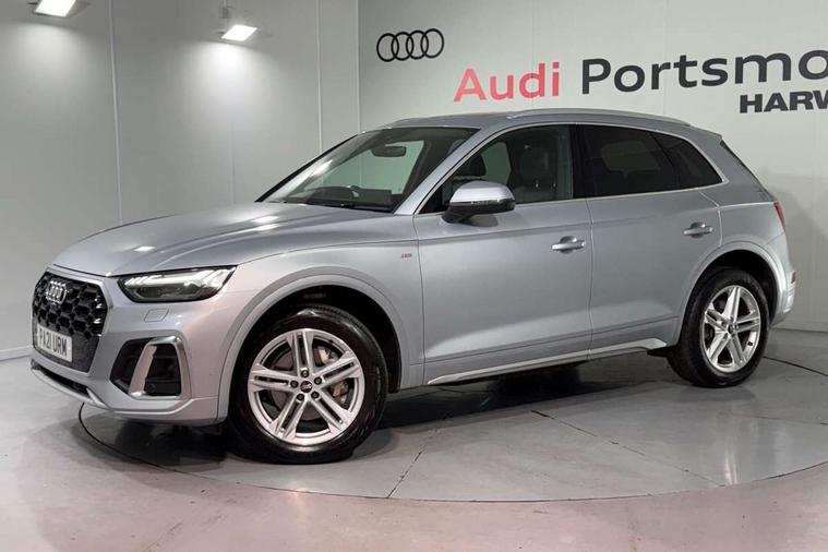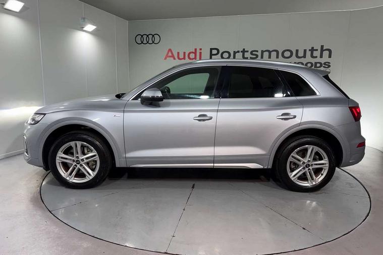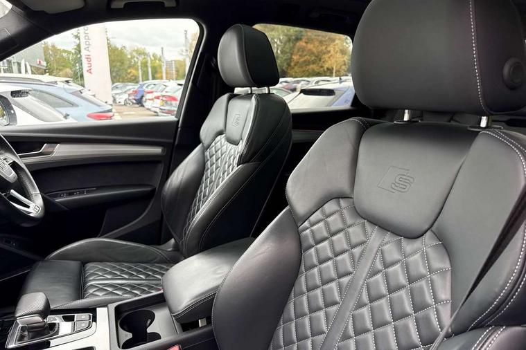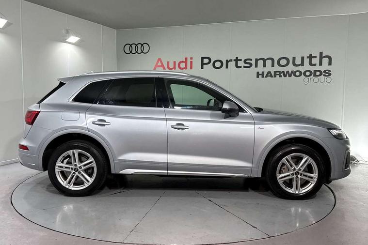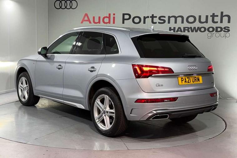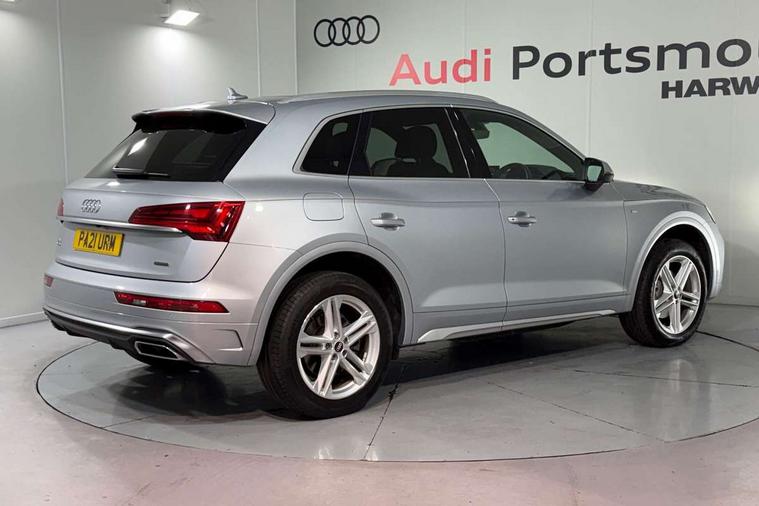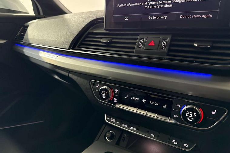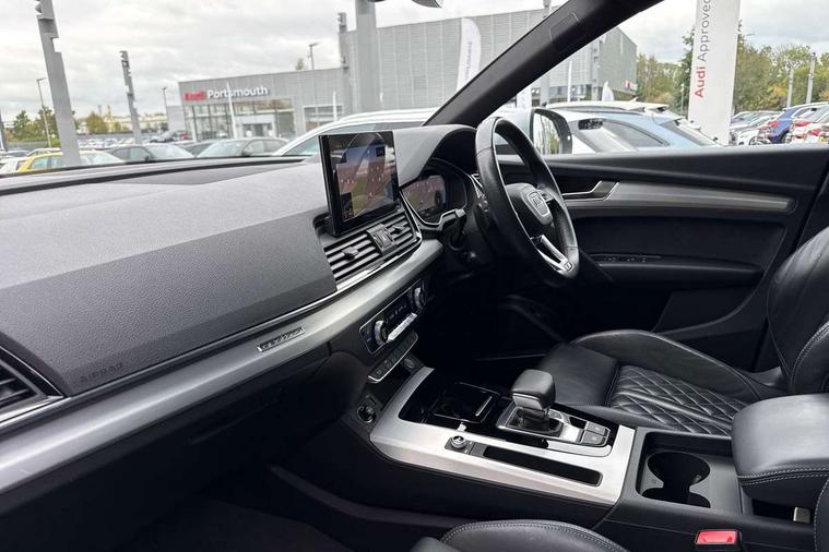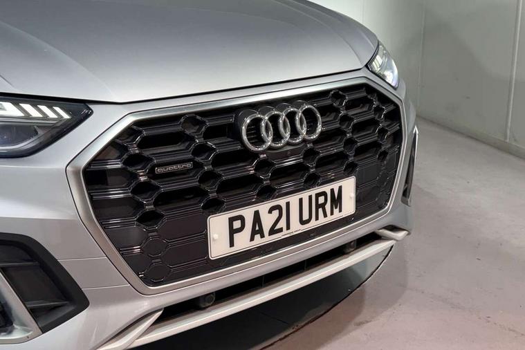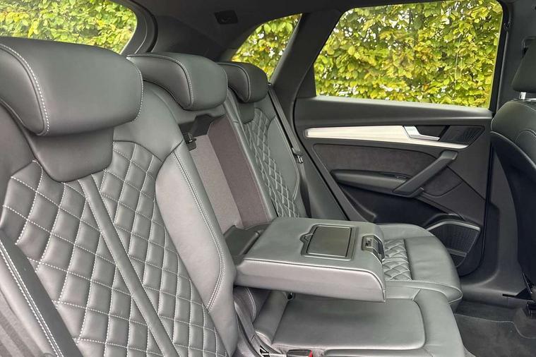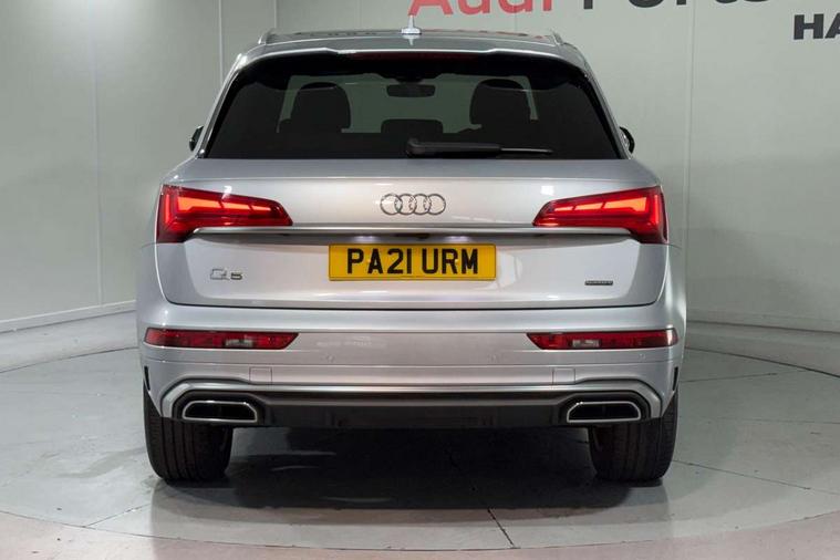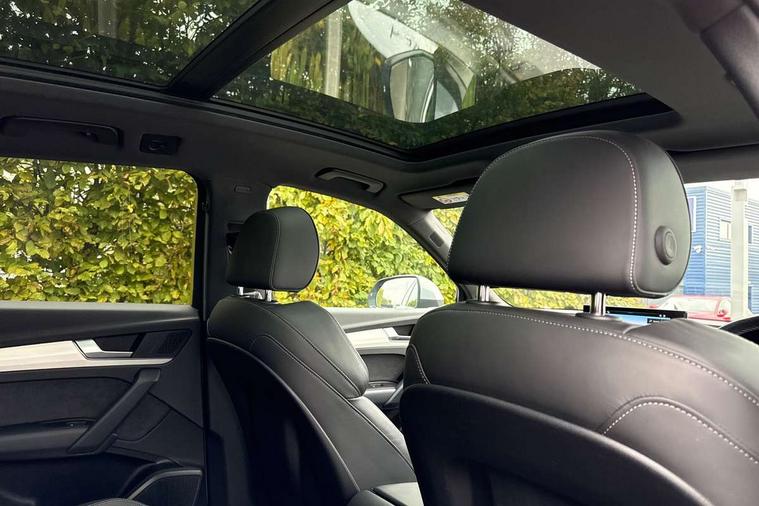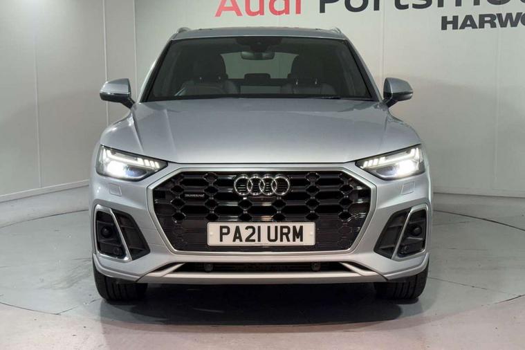 360 degree camera with top view, Acoustic front and rear parking sensor, Advanced key with electric hands free boot opening system, Audi connect safety and service (e-call), Audi connect with Amazon Alexa Integration, Audi drive select, Audi virtual cockpit plus with 12.3" screen and three different layout designs, Audi wireless smartphone interface, Automatic start-stop system with coasting functionality and efficiency programme, Bluetooth interface, Electro - mechanical power assisted steering, MMI navigation plus with 10.1" touch screen, Power tailgate, Service interval indicator, Voice control system with Audi hotword activation "Hey Audi", Quattro on demand, S line sports suspension, 2 x USB charging port with aux input socket, Bang + Olufsen sound system, DAB Digital radio, 3rd brake light, Acoustic windscreen, Aluminium roof rails, Audi matrix LED headlights with dynamic front and rear indicators, Auto dimming door mirrors, Auto dimming frameless rear view mirror, Automatic headlight adjustment, Automatic headlights and windscreen wipers, Body colour bumpers, Body colour door mirrors, Body colour rear diffuser with matt aluminium silver surrounds, Body colour underbody protection, Chrome plated exhaust trims, Daytime running lights, Door sills in Selenite silver, Electric adjustable/heated/folding door mirrors, Front air inlet surrounds in aluminium, Front and rear electric windows, Front radiator grille in honeycomb design, Headlight washers, Lower bumpers painted in contrast Manhattan grey, Rear chrome trim strip below lights, Rear privacy glass and rear side windows, Rear side wing doors, Rear wiper, Roof bars, S Line badges on the front wings, S Line front and rear bumpers, S Line rear spoiler, S Line side skirts, 3 rear headrests, 3 spoke leather multifunction steering wheel with S badging perforated leather grips, 40:20:40 split folding 3 rear bench seat in 2nd row with rear centre armrest, Black cloth headlining, Comfort front centre armrest, Contrast stitching on seats, steering wheel and gear lever gaiter, Deluxe 3 zone electronic climate control, Front/rear floor mats, Gear lever in black leather, Heated front seats, Height adjustable front head restraints, Height/reach adjustable steering column, Illuminated door sill trims with S logo, Luggage compartment cover, Manual seat adjustment with 4-way electric lumbar support, Removable luggage compartment floor, Single front passenger seat, Stainless steel pedals, Sunvisors with vanity mirrors, Extended LED Interior multi coloured Lighting Pack - Q5, High gloss pack - Q5, 3 point seatbelts on all seats, 6 airbags - Driver, front passenger, curtain and side airbags, Electrically operated child locks on rear doors, Electromechanical parking brake, Electronic stabilisation control including ABS, ASR and EDL, First aid kit with warning triangle and vests, Front passenger airbag deactivation, Hill descent control, Hill hold assist, ISOFIX child seat mounting for front passenger seat and ISOFIX child seat mounting with Top Tether for outer rear seats, Multi collision brake assist, Pop-up bonnet for pedestrian protection, Pre sense city, Seat belt force limiter, Seatbelt monitoring, Tyre pressure warning, Anti theft alarm, Anti-theft wheel bolts, Keyless Go access/ignition system, Remote central locking, Air vents inserts and centre console in gloss black, Matt brushed aluminium inlays,