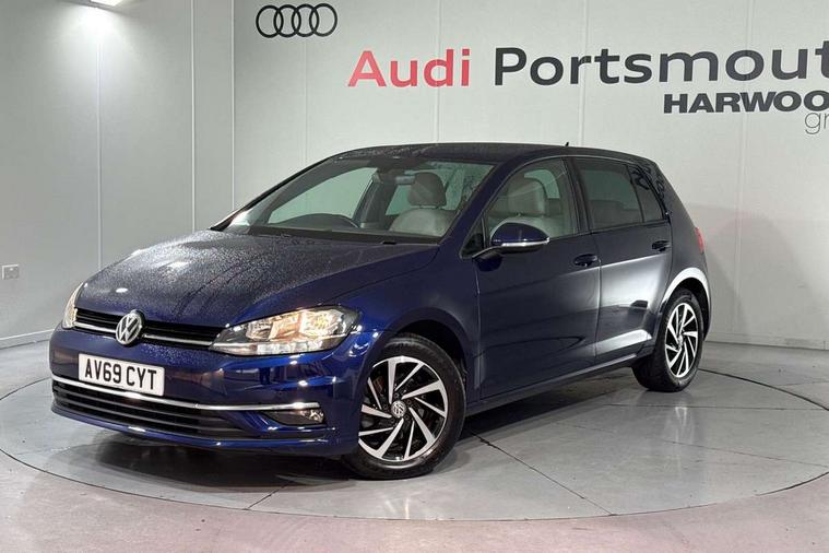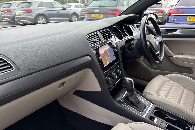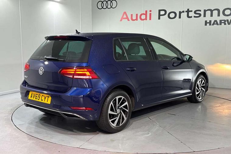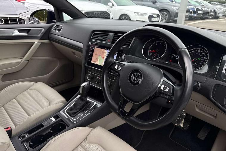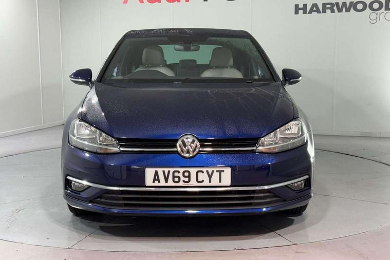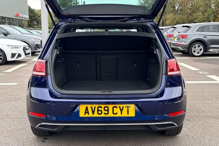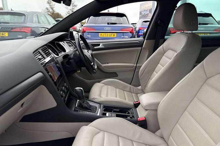 'Lights On' Reminder warning buzzer, ACC - Adaptive cruise control with front assist, forward collision warning, distance monitoring, city emergency brake and speed limiter, Bluetooth telephone and audio connection for compatible devices, Brake pad wear indicator warning light, Driver alert system, Driving Mode Selection with four preset modes - Eco, normal, sport or individual modes, Instrument cluster in white, Multifunction computer with visual gear change recommendation for fuel consumption, Power assisted speed sensitive electro-mechanical steering, Push tank flap, Speed limit display, Speedo, rev counter, electronic odometer, trip, service interval display, exterior temperature and fuel gauge, Stop/start system, Think blue trainer driver tips and journey analysis, Warning buzzer and light for front seatbelts unfastened, We Connect Go Dongle, Battery regeneration during braking, XDS electronic differential lock, Composition media system, DAB Digital radio receiver, Driver Personalisation profile selection, MP3/WMA compatability, Multi device interface (MDI) with USB connection, Personalisation 1.1 profile for media, Premium USB cable in choice of either Apple or Android smartphone compatibility, SMS Functionality, Title and cover art display, 4 X 20W output, USB connection and socket, USB and SD card connectivity, Auto dimming rear view mirror, Black front air intake and radiator grille with chrome insert, Black rear diffuser, Body colour bumpers, Body colour door handles, Body colour door mirrors with integrated indicators, Dusk sensor + automatic driving lights, Electric front windows, Electric rear windows, Electrically adjustable and heated door mirrors, Fully galvanised body, Heated rear windscreen, Hidden exhaust pipe, High level 3rd brake light incorporating LED Technology, LED front fog lights with static cornering light function, Range adjustable headlights via infotainment system with LED daytime running lights, Rear fog lamp, Rear number plate lights incorporating LED technology, Rear tinted glass 65% light absorbing from B pillar backwards, Rear window aerial, Rear window wash/wipe with intermittent wipe, Reflectors in all doors, Remote electrically foldable door mirrors, door mirror puddle lights and reverse activated kerb-view adjustment on passengers door mirror, Tailgate with integrated rear roof spoiler, Windscreen wipers/ intermittent wipe + 4 position delay, 12V socket in luggage compartment, 3 rear headrests, 4 load lashing points in luggage compartment, 60/40 split folding rear seat backrest, Auto fold down lever in rear seat backrest, Bag hook in luggage compartment x 2, Black decorative sleeve on gear handles, Cooled glovebox, Cover for storage compartment in centre, Cupholder cover, Dust/pollen filter, Front and rear reading lights X 2, Front centre armrest with storage compartment and two rear air vents, Front seat back storage pockets, Grab handles front x 2, rear x 2 with integrated coat hooks, Height and reach adjustable steering wheel, Illuminated vanity mirrors, Instrument lighting white adjustable panel illumination, Interior light delay, Isofix preparation for 2 rear child seats, Load through provision with rear centre armrest and cupholders x2, Luggage compartment lighting, Overhead storage box, Passenger underseat drawer, Pearl grey headlining, Storage box in luggage compartment, Storage compartment in roof console with cover, Storage compartments in centre console, Storage compartments in front doors, Storage compartments in rear doors, Stowable luggage compartment cover, Sun visors, Variable boot floor, height adjustable and removable, Convenience Pack - Golf, Light and Sight pack - Golf, Mirror pack - Golf, 3 rear three point seatbelts, Airbags - Driver's and front passenger's, curtain airbag, Driver's knee, front side impact and passenger's airbag deactivation switch, Anti-lock Braking System (ABS) with Hydraulic Brake Assist (HBA), Automatic post collision braking system, Child locks on rear doors, Driver/Passenger optimised head restraints, Electronic parking brake with auto hold, Electronic stability control (ESC) including Electronic differential lock (EDL) and ASR (Traction control) with deactivation via infotainment system, Front ventilated disc brakes and rear disc brakes, Pre crash preventive occupant protection, Three point height adjustable front seatbelts with tensioners, Tyre pressure loss indicator, Alarm with interior protection and deactivation via infotainment system, Electronic engine immobiliser, Brushed dark silver decorative inserts in dash and door panels, Chrome plated air vent surround, Chrome-plated light switch surround, Polar night black decorative inserts in centre console, Steel space saver spare wheel,