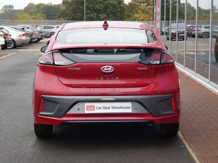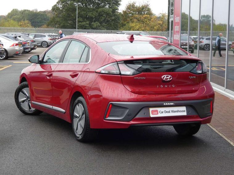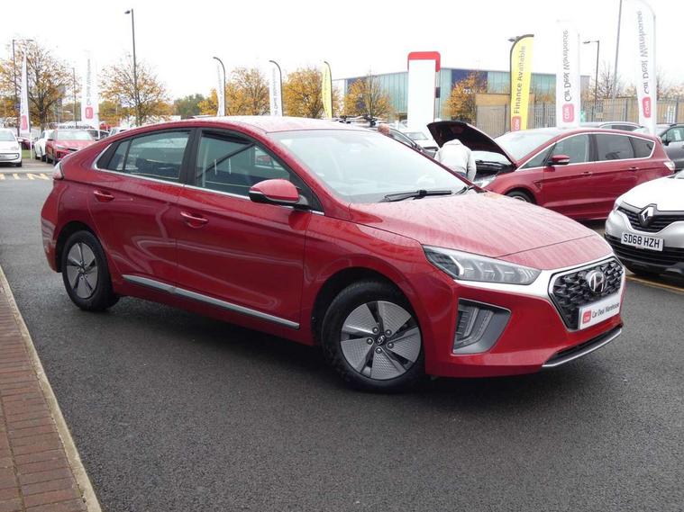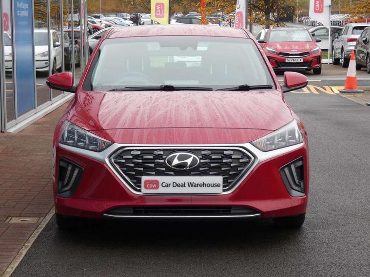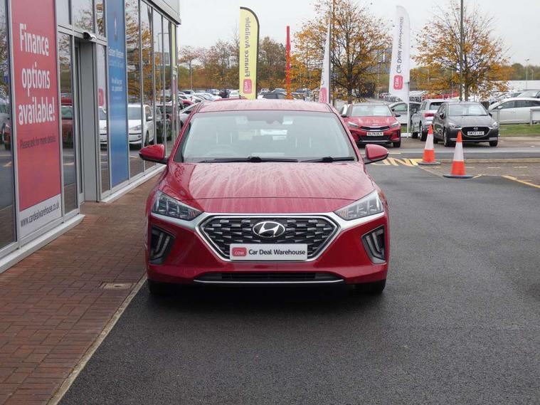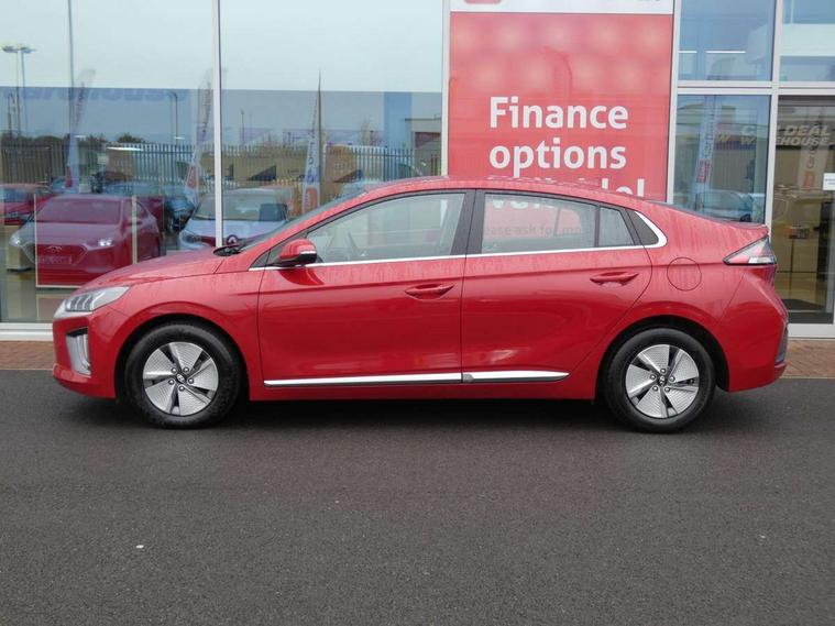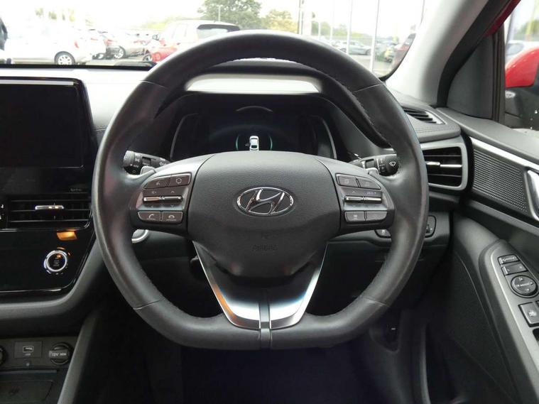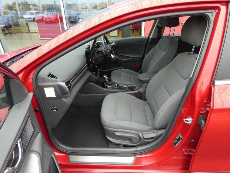 10.25" touchscreen satellite navigation includes traffic messaging channel, mapcare, live services and bluelink, Apple car play/Android Auto, Bluetooth system, Cruise control, Driver attention alert system, E-call, Eco driving assistant system (ECO DAS), Electric power steering with variable drive modes, Gear lever drive mode selector, Lane departure warning system with lane keep assist - LKAS, Parking Brake - Foot Brake, Parking system with rear camera and guidance system, Rear parking sensor, Rear view monitor, Roadside assistance, Supervision cluster with 7" high resolution TFT LCD, Voice recognition, Windscreen washer fluid sensor and warning indicator, Wireless phone charging pad, DAB Digital radio, Infinity sound system includes 1 centre, 2 tweeters, 2 front, 2 rear and 1 ext amp, Radio data system, Steering wheel audio, phone and cruise controls, USB and aux connection in front, Active air flap radiator grille, Auto dimming rear view mirror, Automatic headlights with dusk sensor, Body colour bumpers, Body colour door handles with chrome inserts, Body colour door mirrors, Bodyside mouldings, Chrome door scuff with ioniq logo, Chrome finish window surround, Chrome radiator grille, Door mirror puddle lights, Electric adjustable door mirrors, Electric front windows - anti trap + one touch, Electric heated door mirrors, Heated rear windscreen, High beam assist, LED daytime running lights, LED Headlights, LED indicators in door mirrors, LED rear fog light, Positioning Lights - LED, Power folding door mirrors, Rain sensor, Rear electric windows, Rear LED lights, Rear roof spoiler with integrated LED brake light, Rear side wing doors, Rear wiper, Solar glass with windscreen shade band, Tinted windows, Two tone rear bumper, Variable front intermittent wipers, 12V power outlets, 3 rear seats, 60/40 split folding rear seat, Centre console storage, Centre interior light, Chrome interior door handles, Cloth upholstery, Driver seat height adjust, Driver's electric adjustable lumbar support, Driver/passenger sunvisors with illuminated vanity mirrors, Dual zone climate control, Front centre armrest with storage compartment, Front cupholder, Front head restraints with vertical and horizontal adjustment, Front seat and rear pockets, Heated front seats, Heated steering wheel, Illuminated luggage compartment, Interior mood lighting, Leather wrapped steering wheel, Luggage net, Manual height adjustable front passenger seat, Map and reading lights, Paddle shifter, Rear centre console with air vents, Single front passenger seat, Sunglasses holder, USB - driver arm rest (charging only), Vertical adjustment rear head restraints, 3x3 point rear seatbelts, Airbags - front, front side, curtain and drivers knee airbags, Anti-lock brake system (ABS), Autonomous emergency braking, Electronic stability control, Front passenger airbag deactivation switch, Hill start assist control (HAC), Manual child lock in rear doors, Regenerative braking system, Traction control, Tyre pressure monitoring system with individual tyre pressure display, Deadlocks, Immobiliser, Keyless smart entry with push button start, Remote central locking, 15" Design B alloy wheels, Tyre repair kit,