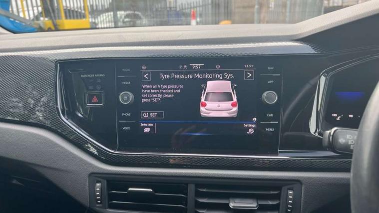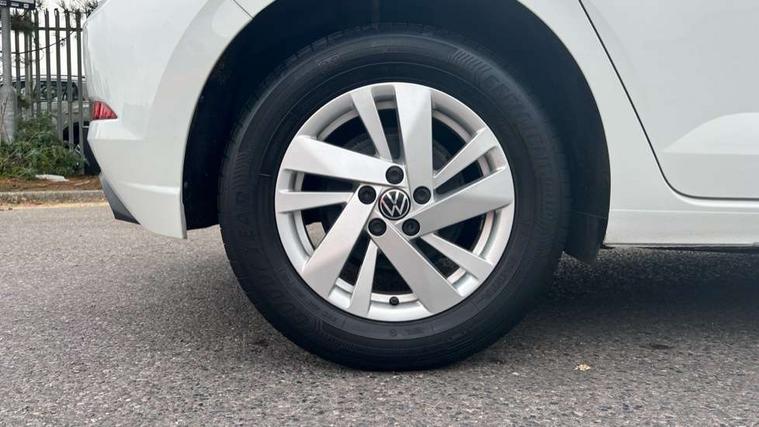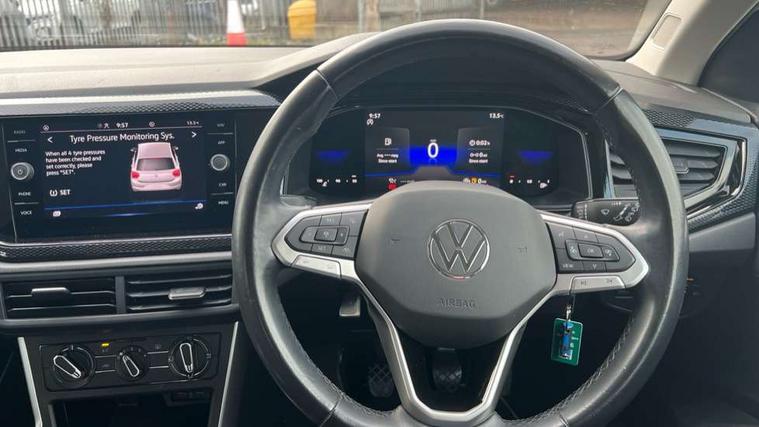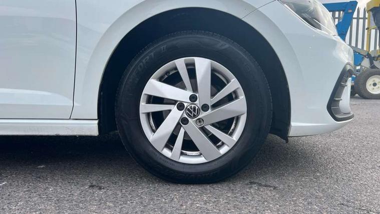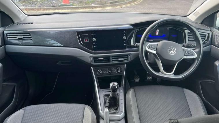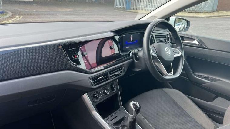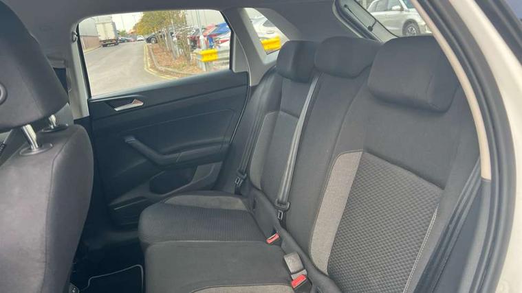 Adaptive cruise control without follow-to-stop and speed limiter, Bluetooth mobile phone interface, Driver alert system, Emergency call service, Front assist system, Power assisted speed sensitive steering, Preparation for We connect and We connect plus, Speedo and rev counter, electronic odometer, trip, service interval display and fuel gauge, Standard rear axle, Travel Assist - Lane keeping system and traffic jam assist, Travel assist including emergency assist, Trip computer, Warning signal and warning light for front and rear seatbelts not fastened, Washer fluid level indicator, Wireless app connect, Front wheel drive, Rear shock absorpion, Start-stop system with battery regeneration (recuperation - energy recovery during braking), DAB Digital radio, Diversity antenna for FM reception, Automatic dimming interior rear view mirror, Body colour bumpers, Body colour door handles, Body colour door mirrors, Electric front windows, Heat insulating darkened glass in side and rear windows, Heat insulating glass windscreen, Power folding adjustable/heated exterior mirrors and front passenger exterior mirror lowering function, Rain sensor, Rear electric windows, Rear fog light, Rear side wing doors, Rear windscreen washer and wiper with interval delay, Third brake light, 12V power socket in centre console, 2 front and 2 rear reading lights, 2 USB-C ports in the front, 2 USB-C charging sockets on the center console in the rear, 3 rear head restraints, 60/40 split folding rear seat and rear seat bench not split, Ceramique headliner, Chrome plated radiator grille inserts, air vent surrounds and light switch surrounds, Door and side trim panel, Driver and front passenger seat height adjustment, Driver/passenger sunvisors with illuminated vanity mirrors, Front centre armrest, Front seat backrest storage pockets, Front standard seats, Handbrake lever handle in leather, Hartley/Thomas cloth upholstery, Isofix child seat preparation easy-fit (for two outer rear seats, and front passenger seat) compatible with I-size, Leather trimmed gear knob, Luggage compartment cover, Luggage compartment floor, Luggage compartment lighting, Multifunction steering wheel, Single front passenger seat, Standard pedal cluster, Light and vision pack - Polo, 3 point height adj front seatbelts + pretensioners, 3x3 point rear seatbelts, ABS, Driver and front passenger airbag with front passenger airbag deactivation, Drivers and front passengers safety optimised head restraints, ESC (Electronic stability control) + EDL (Electronic Differntial lock) and ASR (Traction control), Extended and predictive pedestrian/ cyclist protection, Front curtain and side airbags with center airbag, Front disc brakes, Hill hold control, Manual child lock in rear doors, Rear drum brakes, Single tone horn, Tyre pressure loss indicator, Alarm with interior protection, Anti-theft alarm system with interior monitoring, backup horn, and towing protection, Anti-theft wheel bolts, Electronic engine immobiliser, Lava stone black gloss/matt decorative inserts in dash and front door panels, Low rolling resistance tyres,
