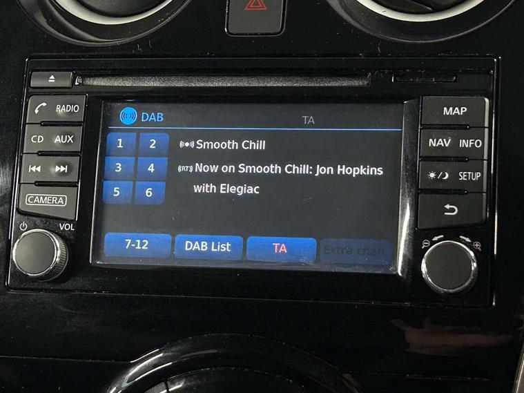 Around View Monitor, Bluetooth phone integration system, Cruise control + speed limiter, Digital clock, Digital trip meter, Low navigation system, Nissan connect sat nav system, PAS, Reverse parking aid, Service interval indicator, Trip computer, 6 speakers, Auxiliary socket for external MP3 player, DAB Digital radio, Radio/CD, Steering wheel audio controls, USB connection, Automatic front wipers, Automatic headlights, Body colour bumpers, Body colour door handles, Body colour door mirrors, Chrome surround for daytime running lights, Daytime running lights, Electric adjustable door mirrors, Electric front windows, Electric rear windows, Front fog lamps, Headlamp levelling, Heated door mirrors, Privacy glass, Rain sensor, Rear wiper, 60/40 split rear seats, Centre console storage, Climate control, Driver seat height adjust, Flexiboard boot storage system, Front cabin and boot lamps, Front headrests, Front seatback pockets, Front/rear armrests, Isofix child seat preparation, Leather steering wheel, Pollen filter, Premium cloth/leather upholstery, Rear centre head restraint, Rear headrests, Sliding rear seats, Tilt adjustable steering wheel, 3 point seatbelts on all rear seats, ABS with Brake Assist, Childproof rear door locks, Curtain airbags, Driver airbag, ESP, Front side airbags, Passenger airbag, Passenger airbag cut-off device, Safety shield - lane departure warning, blind spot monitor and moving object detection, Side airbags, Tyre pressure monitoring system, Warning triangle and first aid kit, Alarm, Immobiliser, Intelligent key with push button ignition, Keyless entry, Remote central locking, 16" alloy wheels, Tyre repair kit,