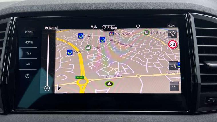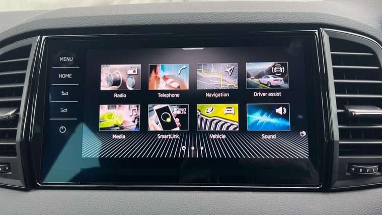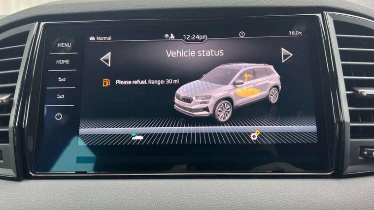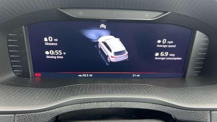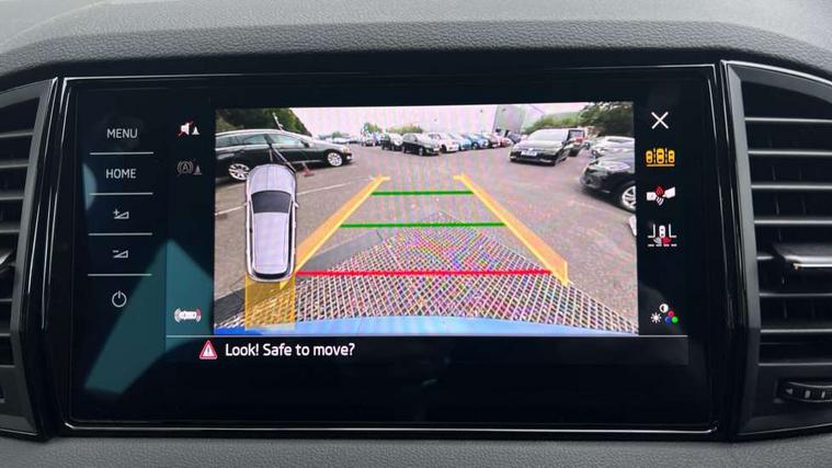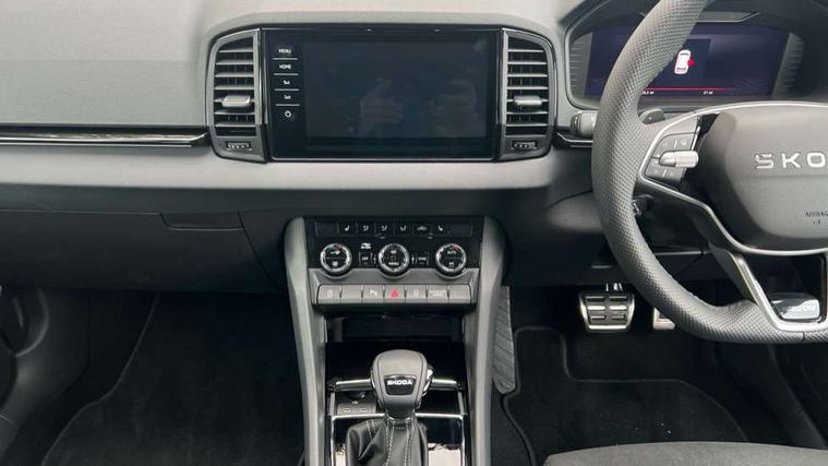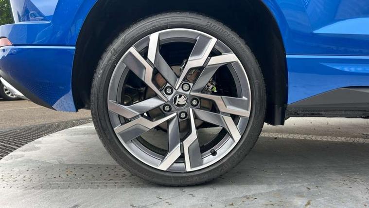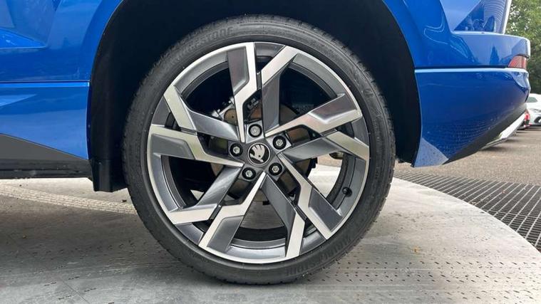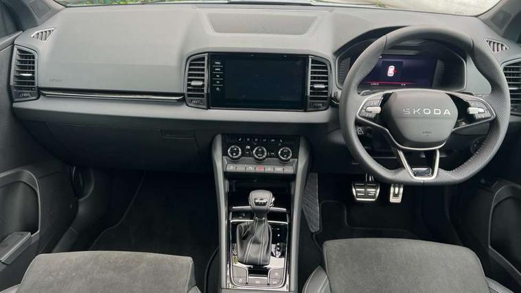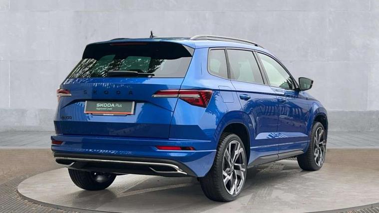 Advanced driver attention and drowsiness monitor, Emergency services call system, Outside temperature gauge, Sensor for driver assistance systems, Service interval indicator, SmartLink wireless for Apple and wired for Android, Start/stop system with regenerative braking, Traffic sign recognition, USB C Port x 2 in front centre console, Virtual Cockpit - 10.25" digital display, Virtual pedal with electrically operated boot door, Wireless smartphone charging, DAB radio with Bluetooth, USB connection, Acoustic glass, Aero front windscreen wipers with intermittent function, Auto dimming rear view mirror with light and rain sensors, Black door mirrors, Black electric window control buttons, Black radiator grille, Black roof rails, Body colour door handles, Electric front and rear windows with child proof lock, Extended rear roof spoiler, Front door steps with SportLine logo, Heated rear windscreen, LED daytime running lights, LED rear lights with high functionality welcome effect and dynamic indicators, Light assistant (coming/leaving home/tunnel light), Panoramic sliding sunroof, Plastic scuff plates in door apertures, Privacy glass, Protective door side sills in body colour, Rear diffuser, Rear side wing doors, Rear window wiper with washer system and intermittent control, Safety reflectors on front doors, Skoda lettering on tailgate in black, Sportline badge on front fender, Sports front and rear bumpers, Third brake light, Unique dark chrome design logo on alloy wheels, 1.5 litre bottle holders in driver and front passenger door panels, 12V socket in boot, 12v socket in front centre armrest with storage compartment and rear air vents, 2 x Tablet holder, 3 rear height adjustable headrests, 3 seat bench in 2nd row, 3 spoke sports leather heated multifunction steering wheel with DSG paddles, 4 foldable roof handles with rear coat hooks, Black floor carpet, Cargo elements in boot, Chrome inner door handles, Foldable hooks in the boot, Front head restraints, Height adjustable front three point seats belts with tensioners, Height/reach adjust steering wheel, Ice scraper, Illuminated glovebox, Illuminated luggage compartment, Isofix child seat preparation for front passenger seat, Isofix child seat preparation outer rear, Manual lumbar support for front seats, Pen holder, Pollen filter, Rear backrest release from boot, Rear boot cover, Rear package tray, Rear reading lights, Rear seats fixed folding and divided 60:40, Rubbish bin door, Safety vest holder, Single front passenger seat, Skoda lettering on steering wheel, Sportline decorative inserts, Storage box in upper central dashboard closed, Sunvisors with illuminated vanity mirrors, Textile floor mats, Ticket holder, Titan black interior ceiling, Umbrella under passenger seat, Under passenger seat storage compartment, Columbus pack - Karoq, LED Interior lighting pack with Skoda welcome logo - Karoq, Light Pack - Karoq, Non Smokers pack, Performance pack - Karoq, Winter plus pack with heated front and rear seats - Karoq, Automatic door unlocking in case of crash, Automatic fuel cut off in case of crash, Driver airbag, Electronic parking brake with auto hold function, Emergency rear braking signal, ESC (incl. ABS+MSR+ASR+EDS+HBA+DSR+RBS+MKB), Front side airbags, Head airbags, Hill hold control, Knee airbags, Passenger airbag with switch-off function, Pedestrian monitor, Seatbelt reminder signalisation and pretensioner for all seats, Three point seatbelts rear, Two tone horn, Tyre pressure monitor, Alarm with interior monitoring, back up horn and tilt sensor with safe function, Electronic engine immobiliser, Keyless entry and start/stop, Remote central locking with 2 remote folding keys, Black air vent surround, Black centre console, carbon door decor, Satin black dashboard, Satin black door trim, 19" Sagittarius anthracite alloy wheels, Anti-theft wheel bolts protection, Breakdown and tool kit,