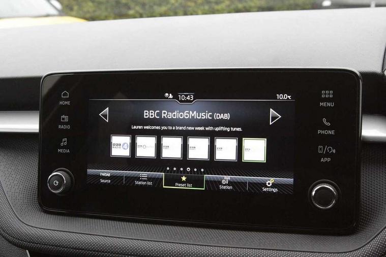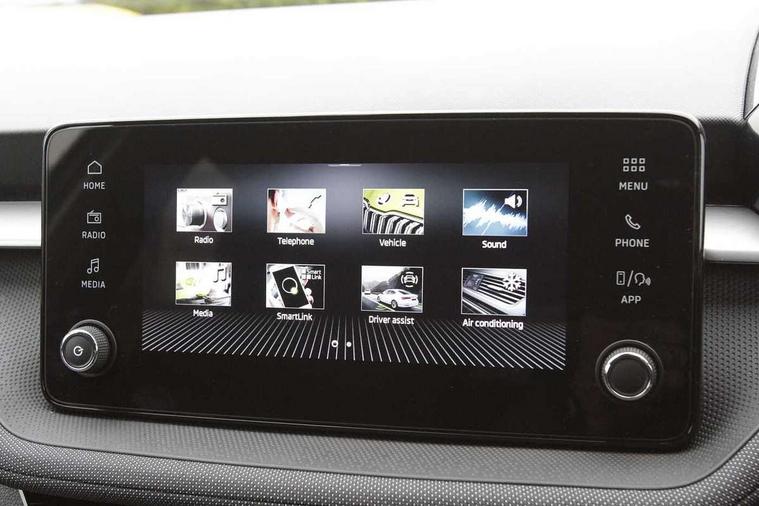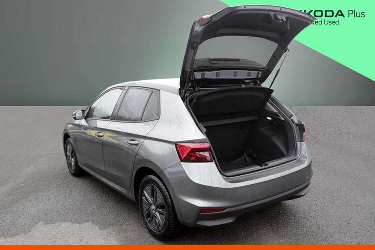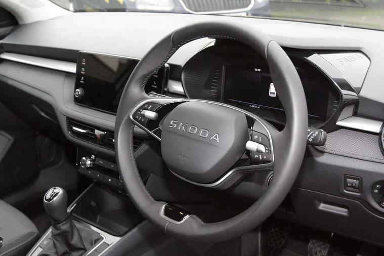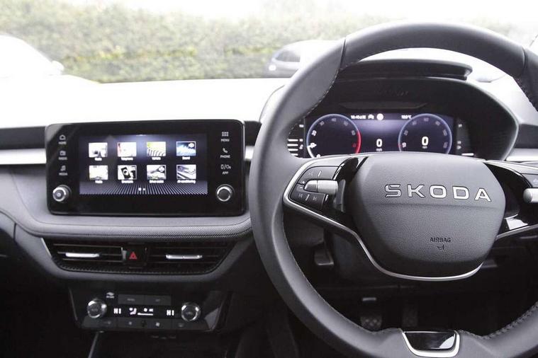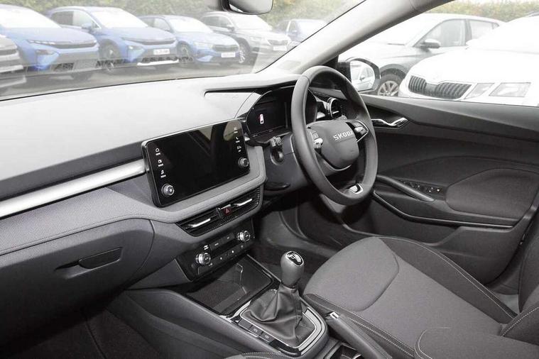 Advanced driver attention and drowsiness monitor, Bluetooth connection, Electromechanical power steering, Exterior temperature gauge, Service interval indicator, Traffic sign recognition, Virtual cockpit with 10.25" colour display, Wireless SmartLink for Apple CarPlay and Android Auto, 6 Speakers (4 in front and 2 in rear), Auxiliary socket for external MP3 player, DAB digital radio reception, Auto dimming rear view mirror, Body coloured bumpers, Door mirror integrated indicators, Front and rear electric windows, Front window wiper intermittent control, Headlight range control - Automatic, Ice scraper in fuel cap, LED 3rd brake light, LED daytime running lights with coming and leaving home feature, LED rear lights, Privacy glass, Rear LED fog light, Rear side wing doors, Rear window wiper with washing nozzles, Roof mounted spoiler, SKODA tailgate lettering in chrome, Unique dark chrome design logo on alloy wheels, 2 reading lights in front and 2 reading lights in rear, 3 rear headrests, Backrest split and folding, Central console with removable cup holder and storage box, Chrome handbrake release button, Dual zone air conditioning with climatronic electronic control, Fabric upholstery, Front centre armrest, Gearshift knob/handle in leather, Grain satin black interior door handles, Hand brake lever handle in leather, Height adjustable front headrests, Height adjustable front seats, Height adjustable steering wheel, ISOFIX and TopTether anchorage points to the outer rear seats, ISOFIX and TopTether on the front passenger seat, Luggage compartment lighting, Manually adjustable lumbar support in front seats, Pollen filter, Rear seat bench unsplit, Single front passenger seat, Skoda lettering on steering wheel, Storm grey headlining, Sun visors with mirror and airbag label on passenger side, Textile floor mats, Ticket holder, Umbrella in drivers door, 3-point height adjustable front seats belts with pretensioner and force limiter, Automatic warning lights in case of crash, Driver and passengers airbag with switch off function, e-Call+, ESC including ABS, MSR, ASR, EDS, HBA and XDS, Front and rear seat belt warning, FRONT ASSIST (AEB City and AEB Inter Urban), Front side airbags, Head airbags, One tone horn, Pedestrian protection, Three rear 3-points safety seat belts with pretensioner and force limiter including stop function for outer rear seat belts, Tyre pressure monitoring system, Anti-theft alarm system including immobiliser, interior monitoring, backup horn, and towing protection, Central locking with radio remote control, interior controls, SAFE function and 2 foldable keys, Black painted air vents, Grain satin black central console cover, Metallic grey upper decorative trim, Satin black door and side trim panel in front, Textile Kota grey lower decorative inserts, Anti-theft wheel bolts protection, Super-low rolling resistance tyres,