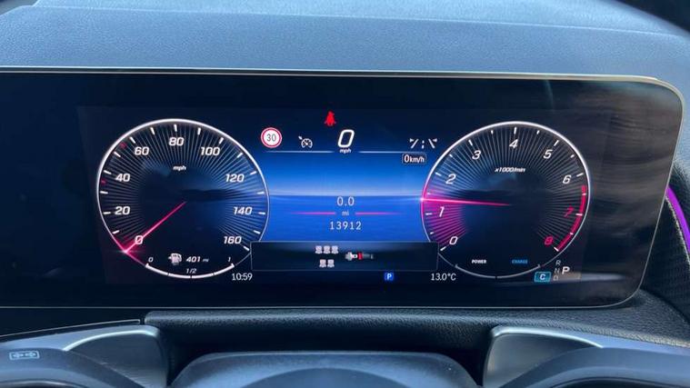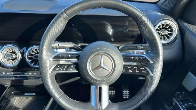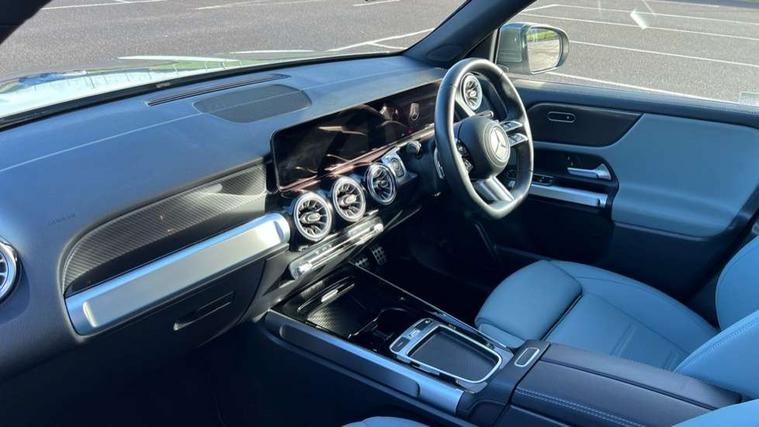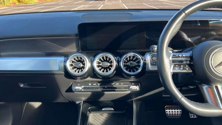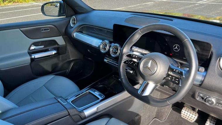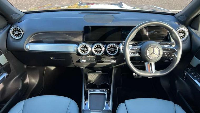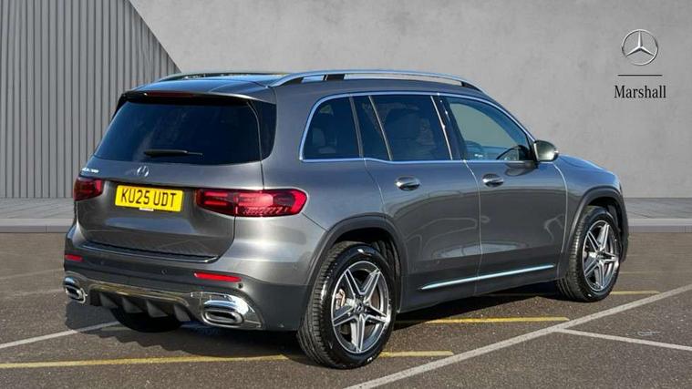 10.25 inch touchscreen central media display, 10.25" Digital instrument cluster display screen, Attention assist - Monitors steering behaviour and long journey fatigue, Blind spot assist, Bluetooth connection, Brake pad wear indicator warning light, Car wash mode, Direct steering, DYNAMIC SELECT with a choice of driving modes (ECO, Comfort, Sport and Individual), ECO start/stop function, Exit warning function, Fingerprint scanner, Fluid level warning indicator for fuel, oil, coolant and washer fluid, Hard disk navigation, Hey Mercedes Voice activation, Lamp failure indicator, Lane keep assist, MBUX navigation premium, Mercedes me connect including emergency call system, accident recovery, breakdown and maintenance management, Mercedes me remote services, Outside temperature gauge, Owners manual and service booklet in English, Pre-installation of private car share, Preinstallation for parking damage notification, Radio aerial integrated into front and rear windshields, Service indicator (ASSYST), Smartphone integration with Apple CarPlay and Android auto, Speed limit assist, Tailgate, Trip computer in multifunction display with current consumption indicator, Wireless charging, Comfort suspension with ride height lowering, Rear axle multi-link, DAB digital radio tuner, MBUX multimedia system, Mercedes Benz sound system (100 W) with 6 speakers, Pre installation for Mercedes Benz Link, Adaptive brake lights, Adaptive high beam assist, AMG front apron with front splitter in the colour of the vehicle with chrome trim element, AMG rear apron with visible tailpipe trim and chrome trim element, AMG specific/dual flow exhaust pipes in chrome (non-functional), Beltline trim and window line trim strip in high gloss aluminium, Black grained side sill trim with chrome inlay, Body coloured door handles, Electric adjustable and heated door mirrors with integrated LED side indicators, Front and rear electric windows, Headlamp assist automatic headlamp activation, Heat insulating dark tinted glass for rear side windows and rear window, Heated glass rear windscreen + timer control, High level LED third brake light, Interior mirror with black reading lamps and frameless, LED high performance headlamps with integrated LED daytime running lights, LED tail lamp, Polished aluminium roof rails, Radiator grille as a diamond grille with chrome pins and central Mercedes star, Rain sensor windscreen wipers with two sensitivity stages, Rear fog lamp, Rear side wing doors, Rear wiper, Single louvre in matt grey with chrome inserts and black highlights, Two visible tailpipe trim elements exhaust, Wheel arch liners in the colour of the vehicle, 3 seat bench in 2nd row, 3 twin spoke flattened multifunction steering wheel in nappa leather - horizontal twin spoke in high gloss black, vertical twin spoke in silver chrome, 4 way adjustable lumbar support, 40:20:40 split folding rear seats, Air vents with silver chrome surrounds, AMG floor mats, AMG sports pedals with brushed stainless steel surfaces and black rubber studs, Artico man-made leather/Microcut microfibre upholstery, Automatic child seat recognition sensor, Black roof lining, Fluorescent jacket, Front and rear headrests, Front centre armrest with stowage, Galvanised steering wheel gearshift paddles in silver chrome, Heated front seats, Height adjustable head restraints, Height/reach adjustable steering column, Interior lighting - 64 colour Ambient lighting, Luggage net on driver/front passenger seat backrest, Single front passenger seat, Sports seats, Stowage compartment in centre console with retractable cover and double cupholder and 12 V socket, Sun visors with illuminated vanity mirrors, THERMATIC automatic climate control, Third row of seats for two people on rear seat, Twin front cup holders, Two outer rear seat isofix and top tether child seat fixing points, Easy pack tailgate, Interior lighting with light and sight pack - GLB, KEYLESS-GO Comfort package - GLB, Mirror package - GLB, Parking Package with reversing camera - GLB, Seat comfort package - GLB, USB package plus - GLB, 3 rear 3 point seatbelts, Active bonnet pedestrain safety measure which detects an impact and raises bonnet by 65mm, Active brake assist includes forward collision warning system with autonomous braking, Adaptive brake assist with hold function and hill start assist, Airbags - kneebag for driver, Anti-lock braking system (ABS) with brake assist, Black seatbelts, Bonnet with power domes, Childproof locks manually operated for rear doors and electrically operated for rear power windows, Crash responsive emergency lighting, Curve dynamic assist, Driver and front passenger head and sidebags, Driver and front passenger windowbags, Dual stage driver and front passenger airbags, Electric parking brake, Electronic stability programme with acceleration skid control, Front and rear seatbelt reminder, Front brake callipers with Mercedes Benz lettering, Front passenger seat occupancy sensor, Perforated front brake discs, Tyre pressure monitoring system, Warning triangle and first aid kit, Guard 360 degree vehicle protection - Anti theft alarm system, tow away protection with visual, acoustic warning and alarm, Interior monitoring system, KEYLESS-GO starting function, Remote central locking and crash sensor with emergency opening function, Thatcham category 1 alarm system with immobiliser and interior protection, Carbon structure trim, 19" AMG 5 twin spoke light alloy wheels aerodynamically optimised, painted in high-gloss black and with a high-sheen finish RTG, Summer tyres, Tirefit tyre sealant kit,