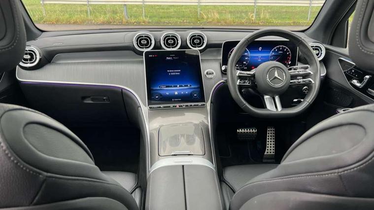 11.9" high resolution multimedia colour display, 12.3" Digital individually configurable instrument display, Acoustic presence indicator, Active lane keeping assist, Attention assist, Blind spot assist, Bluetooth interface for hands free telephone, Collision prevention assist plus, Cruise control with speedtronic variable speed limiter, Dashcam - front camera for video recording, Direct steer speed sensitive steering, DYNAMIC SELECT with a choice of driving modes (ECO, Comfort, Sport, Sport+ and Individual), eCall emergency call system, ECO start/stop function, Fingerprint scanner, Fluorescent jacket for driver, Hard disc navigation, Instrument display in miles with English lettering, MBUX augmented reality for navigation, MBUX navigation premium, MBUX voice control activated by keywords "Hey Mercedes", Mercedes me connect, Outside temperature display, Remote boot release, Remote services, Road sign recognition system, Service indicator (ASSYST), Smartphone integration, Status display for rear seat belts in instrument cluster, Traffic sign assist, Trip computer, Wireless charging, 48V Mild hybrid technology, 4MATIC permanent four wheel drive, 62 litre fuel tank, 9G TRONIC plus automatic transmission, Petrol Particulate Filter (PPF), Sport suspension, DAB digital radio tuner, MBUX extended functions, Mercedes benz sound system, Pre installation for Mercedes Benz Link, Adaptive brake lights, Adaptive high beam assist plus, Aluminium look running boards with rubber studs, Aluminium roof rails, AMG bodystyling front apron, rear apron and side skirts, AMG Line exterior, Auto headlights, Body colour bumpers, Body colour door mirrors, Digital light LED headlights, Electrically adjustable door mirrors, Front and rear electric windows, Headlight washers, Heat insulating dark tinted glass, Heated rear window, High level LED brake light, Integrated LED daytime running lights, LED indicator lights, LED rear fog lights, LED tail lamp, Motor way mode function and locator lighting, Noise acoustic glass, Radiator grille with Mercedes Benz pattern and integreated Mercedes star and louvre in dark grey matt with chrome inlay and black frame, Rain sensor windscreen wipers, Range adjustable headlights, Rear side wing doors, Rear wiper, Transparent Bonnet, Two chrome plated tailpipe trim elements, Variable front intermittent wipers, Welcome and follow-me home light functionality, Wider wheel arch for AMG wheels, 3 seat bench in 2nd row, 40:20:40 split folding rear seats, Ambient lighting premium, AMG line interior, Artico man-made leather upholstery, Audio and onboard settings control on multifunction steering wheel, Automatic child seat recognition sensor, Black fabric roof lining, Black floor mats with AMG lettering, Double cup holder in centre console, Easy-pack removable load compartment cover, Electrically height/reach adjustable steering column, Front centre armrest with stowage compartment, Front head restraints, Galvanised steering wheel gearshift paddles, Heated front seats, Illuminated door sill panels with Mercedes Benz lettering, Illuminated glove compartment, Instrument panel and beltlines in ARTICO manmade leather in nappa look, Multifunction sports steering wheel in nappa leather, Rear centre headrest, Rear head restraints, Rear top tether child seat ISOFIX attachment, Single front passenger seat, Sports pedals with stainless steel surfaces and rubber studs, Sports seats, Sun visors, THERMATIC 2 zone automatic climate control, Anti theft protection package - GLC, Boot comfort package - GLC, Exterior chrome package - GLC, Interior chrome package - GLC, Interior lighting pack - GLC, Keyless-Go comfort package - GLC, Memory pack - GLC, Mirror pack - GLC, Parking package with 360 degree camera - GLC, Seat comfort package - GLC, Stowage space package - GLC, USB Plus Pack - GLC, 3 rear 3 point seatbelts, Active braking assist, Anti-lock braking system (ABS), ASR traction control, Automatic front passenger airbag deactivation, Black seat belts, Brake calipers with Mercedes-Benz lettering + perforated brake discs, Braking system with larger brake discs on the front axle, Child proof door locks, Dual-stage airbags - driver and front passenger, driver knee bag and window bags for driver, front passenger and rear passengers, Electronic parking brake, Electronic stability programme (ESP) with curve dynamic assist and cross wind assist, Front and rear seatbelt reminder, Front passenger seat occupancy sensor, Front seatbelt pretensioners, Hill start assist, Tyre pressure monitoring system, Warning triangle and first aid kit, Automatic door locking, Guard 360 degree vehicle protection plus, Interior protection/immobiliser, Remote central locking, Centre console in metal structure finish, Metal structure trim, 20" AMG 5 spoke aerodynamically optimised light alloy wheels in painted black with high sheen finish, Summer tyres, TIREFIT with tyre inflation compressor,