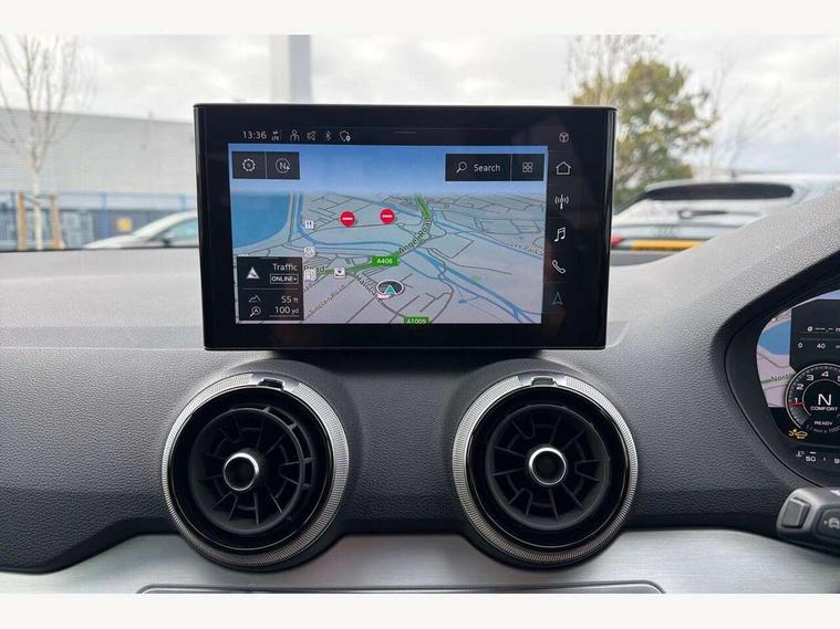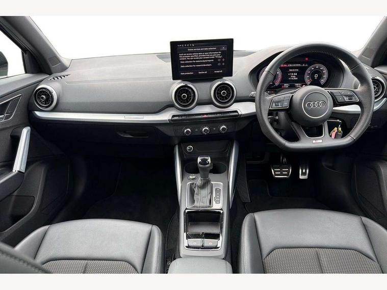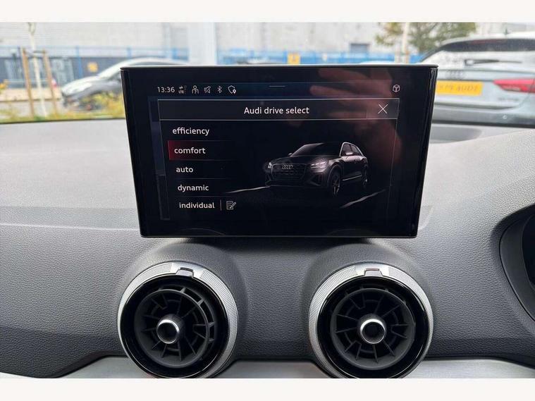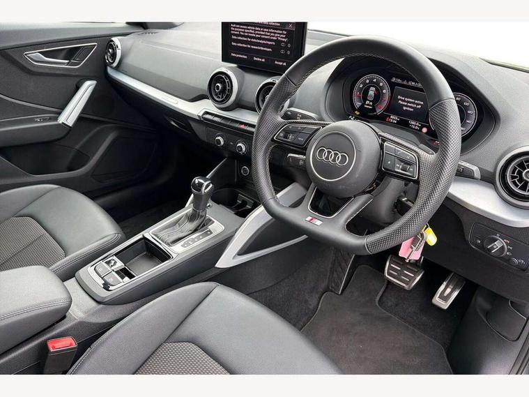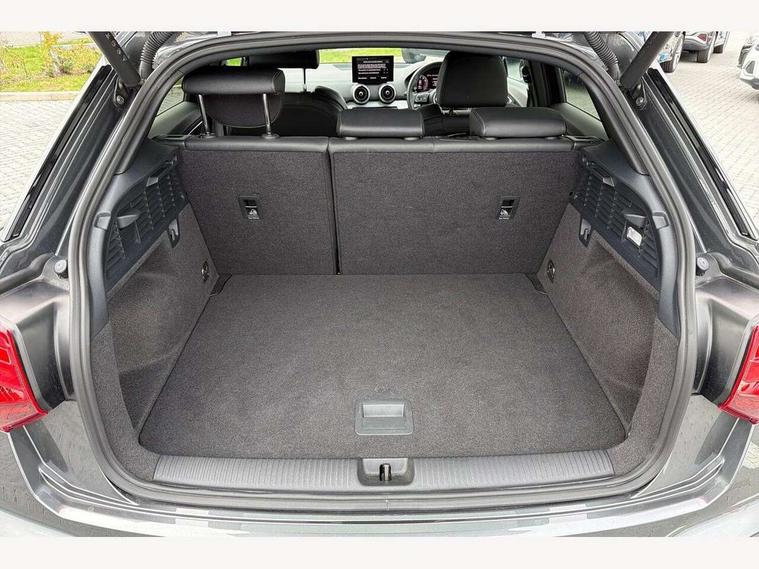 3D map display, Audi connect navigation and infotainment includes innovative services, Audi connect remote and control connects your vehicle to your smartphone, Audi drive select: S tronic - power steering assistance + engine + gearshift (modes: comfort, auto, dynamic, efficiency, individual), Audi smartphone interface - Apple carplay/Android Auto, USB connect, 2xSDXC card readers, voice control for navi, telephone, music and 3rd party apps, Audi virtual cockpit, Automatic start/stop system with recuperation, Bluetooth interface includes bluetooth audio streaming, Camera based traffic sign recognition, Cruise control, Distraction and Fatigue warning, E-call, Jukebox hard drive memory for music (10GB), Lane departure warning, MMI navigation plus with 8.8" touchscreen, Natural voice recognition, Power operated tailgate, Progressive steering, Rear parking sensors, Sport suspension, 6 passive loudspeakers, DAB Digital radio, USB type C port, Audi beam, Auto dimming rear view mirror, Black window trims, Bumper in full body colour paint finish, Electrically adjustable, folding, auto dimming and heated door mirrors with integrated LED side indicators, Front windscreen with grey tinted sunband, LED daytime running lights, LED headlights with dipped beam, high beam, position lights, indicators, LED rear lights, LED third brake light, Privacy glass - dark tinted rear and rear side windows from B-pillar backwards, Rear side wing doors, Rear wiper, Variable front intermittent wipers, Wheel arch trims in manhattan grey, 12v socket in front, 3 seat bench in 2nd row, 3 spoke flat bottomed multi-function leather sport steering wheel with gear shift paddles, 4-way electric lumbar support for front seats including manual seat height adjustment for both front seats, 60/40 split folding rear seat bench, Black carpets, Black cloth headlining, Front and rear head restraints, Front centre armrest, Front sport seats, Front/rear floor mats, Height/reach adjust steering wheel, Illuminated door sill trims with S logo, ISOFIX child seat mounting in front passenger and rear outer seats, Manual air conditioning, Single front passenger seat, Stainless steel pedals, Black styling pack - Q2, 3x3 point rear seatbelts, 6 airbags - Front, curtain and front side airbags, Electromechanical parking brake, Electronic stabilisation control including ABS, ASR and EDL, Front passenger airbag deactivation, Hill hold assist, Pre-sense front with pedestrian recognition, Seatbelt monitoring, Tyre pressure warning light with visual and acoustic warning, Warning triangle and first aid kit, Anti theft alarm, Anti theft wheel bolts, Electronically operated child locks, Remote central door locking, Aluminium interior element, Black dashboard, Gloss black centre console, Matt brushed aluminium trim inlays, Tool kit,