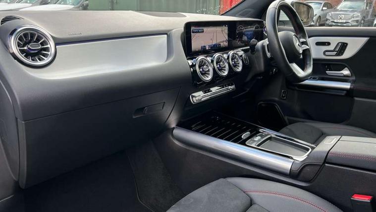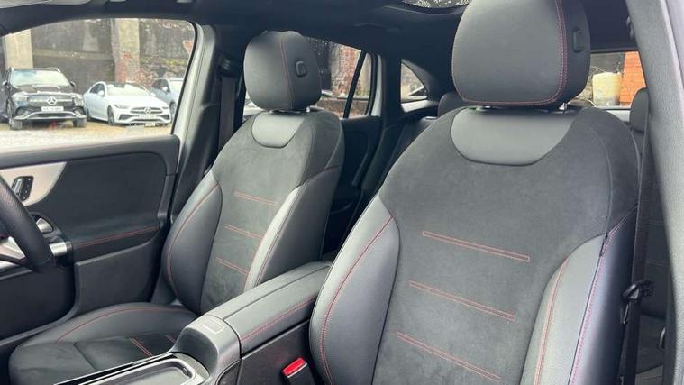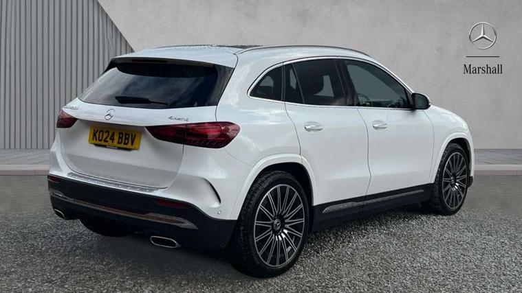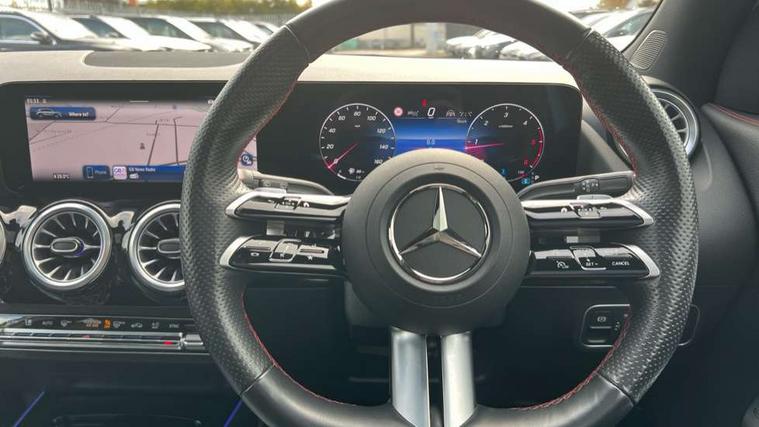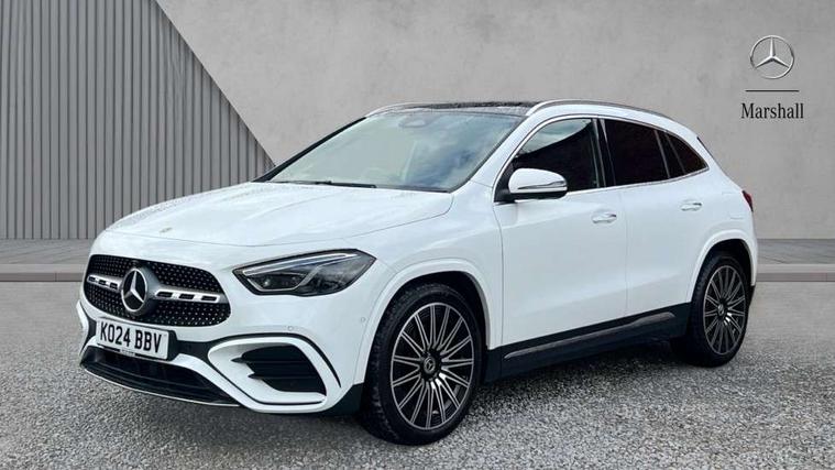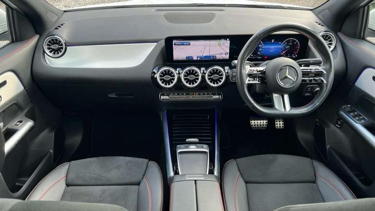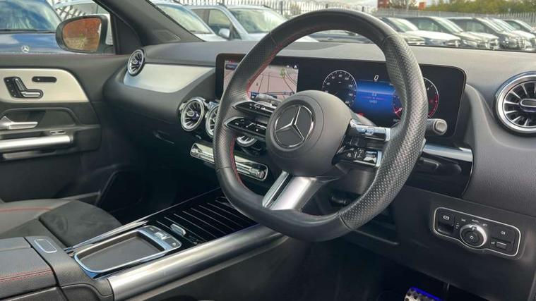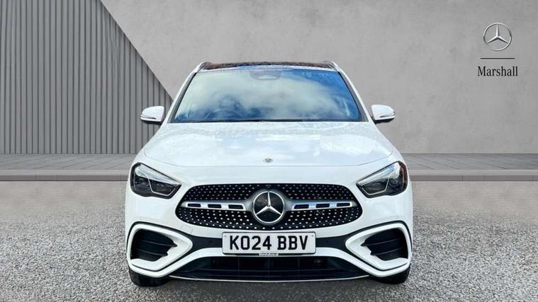 10.25 inch touchscreen central media display, 10.25" Digital instrument cluster display screen, Attention assist, Direct steering, DYNAMIC SELECT with a choice of driving modes (ECO, Comfort, Sport and Individual), Easy-pack tailgate, ECO start/stop function, Fingerprint scanner, Fluid level warning indicator for fuel, oil, coolant and washer fluid, Full color head up display, Hard-disk navigation, Hey Mercedes Voice activation, Lamp failure indicator, Lane keeping assist (LKA), Mercedes me connect including emergency call system, accident recovery, breakdown and maintenance management, Mercedes me remote services, Multi function trip computer, Outside temperature gauge, Owners manual and service booklet in English, Pre-installation of private car share, Radio aerial integrated into front and rear windshields, Service indicator (ASSYST), Smartphone integration with Apple CarPlay and Android auto, Traffic sign assist, Wireless charging, Lowered comfort suspension, Rear axle multi-link, Suspension with adaptive damping system, Bluetooth connectivity including audio streaming, DAB Digital radio, MBUX multimedia system, Mercedes-Benz (225w) sound system with 10 speakers, Adaptive brake lights, Adaptive full LED rear lights with automatic adjustment of light intensity to the surroundings, Aluminium roof rails, AMG front apron with front splitter in the colour of the vehicle with chrome trim element, AMG rear apron with visible tailpipe trim and chrome trim element, AMG specific/dual flow exhaust pipes in chrome (non-functional), Automatic headlamp activation, Beltline trim and window line trim strip in high gloss black, Black grained side sill trim with chrome inlay, Body coloured door handles with chrome insert for keyless entry, Car wash function, Cornering light function with activated high beam, Dark privacy glass from B-pillar backwards, Electric front windows, Electric rear windows, Electrically adjustable and heated door mirrors with integrated LED indicators, Exhaust system with 2 Visible tailpipe trim elements and rear apron with trim in chrome, Heat insulating dark tinted glass, Heated glass rear windscreen + timer control, Illuminated door sill panels with Mercedes-Benz lettering, Interior mirror with black reading lamps and frameless, LED daytime running lights, LED third brake light, Multibeam LED headlamps with adaptive highbeam assist plus, Panoramic sunroof, Rain sensor windscreen wipers, Rear fog lights, Rear side wing doors, Rear wiper, Wheel arch liners in the colour of the vehicle, 3 seat bench in 2nd row, 3 spoke flat bottom multifunction nappa leather steering wheel, 40:20:40 split folding rear seat backrests, Adjustable head restraints, Air conditioning - air vents with silver chrome surround, Air conditioning - Two zone thermotronic luxury automatic climate control with display, AMG floor mats, Auto Mercedes-Benz child seat recognition sensor, Black roof lining, Courtesy light in boot, Electrically adjustable front memory seats with four way lumbar support, Fluorescent jacket, Front centre armrest with stowage, Galvanished gear shift paddles on steering wheel in silver chrome, Heated front seats, Illuminated glovebox, Interior lighting - 64 colour Ambient lighting, Luggage net on driver/front passenger seat backrest, Manually height and reach adjustable steering column, Single front passenger seat, Sports pedals in brushed stainless steel with black rubber studs, Sports seats, Sports steering wheel, Stowage compartment in centre console, Stowage compartment with retractable cover, Sunvisors with illuminated vanity mirrors, Twin front cup holders, Two outer rear seat isofix and top tether child seat fixing points, Comfort seat pack - GLA Class, Driving assistance package - GLA, Interior lighting with light and sight pack - GLA, Keyless go comfort package - GLA, Mirror pack - GLA Class, Night package - GLA, Off road engineering pack - GLA, Parking package with 360-degree camera - GLA, USB package plus - GLA, 3 rear 3 point seatbelts, ABS with Brake Assist, Active bonnet pedestrain safety measure which detects an impact and raises bonnet by 65mm, Active brake assist includes forward collision warning system with autonomous braking, Adaptive brake assist with hold function and hill start assist, Black seatbelts, Bonnet with power domes, Brake pad wear warning indicator, Braking system with larger brake discs on the front axle, Childproof locks manually operated for rear doors and electrically operated for rear power windows, Crash responsive emergency lighting, Driver and passenger head and side airbags, Drivers knee airbag, Dual stage driver/passenger airbags, Electronic parking brake, ESP curve dynamic assist, ESP with ASR, Exit warning, Front and rear seatbelt reminder, Front brake callipers with Mercedes Benz logo lettering on front, Front brake discs internally ventilated and perforated, Front passenger seat occupancy sensor, Sports braking system, Tyre pressure monitoring system, Warning triangle and first aid kit, Window airbags, Alarm system with immobiliser and interior protection -Thatcham category 1, Guard 360 degree vehicle protection, Keyless Go starting function, Remote central locking and crash sensor with emergency opening function, Light longitudinal grain aluminium trim, 20" AMG multi spoke light alloy wheels aerodynamically optimised and painted in black with a high-sheen rim flangle RVT, Summer tyres, Tirefit tyre sealant kit,